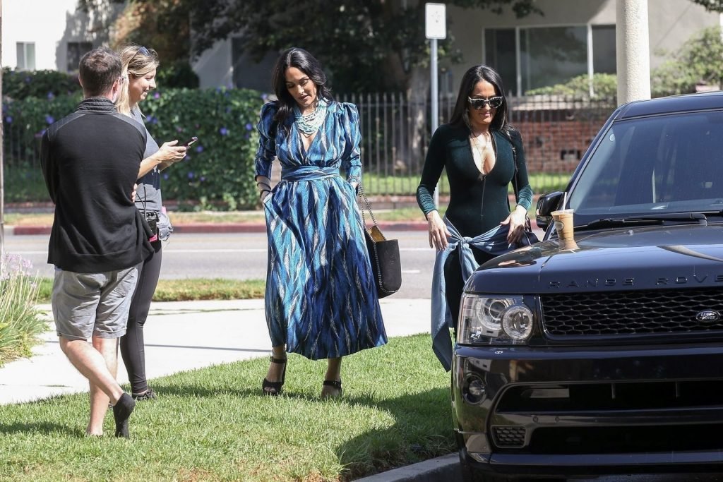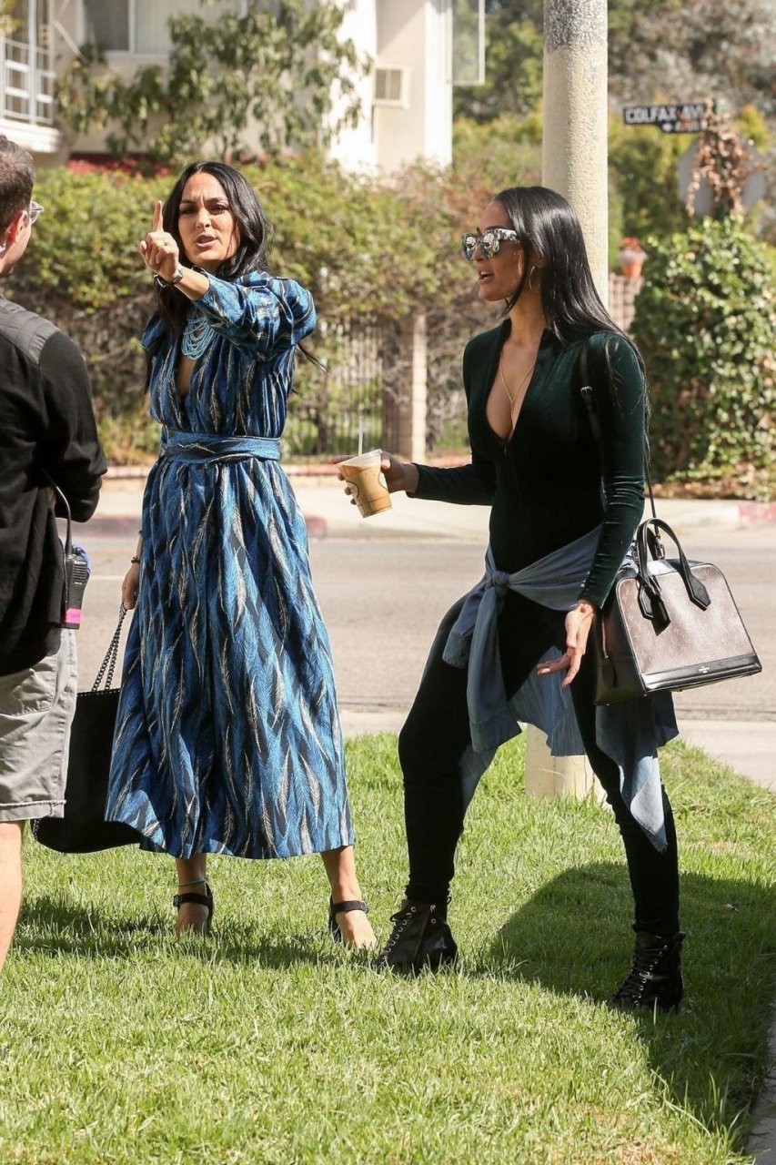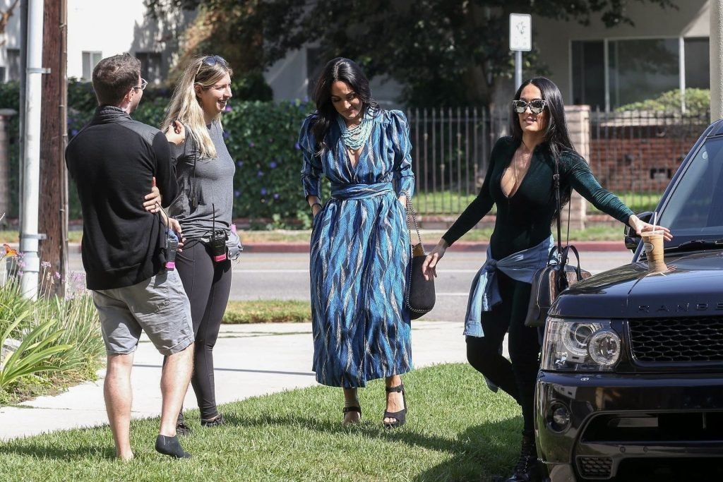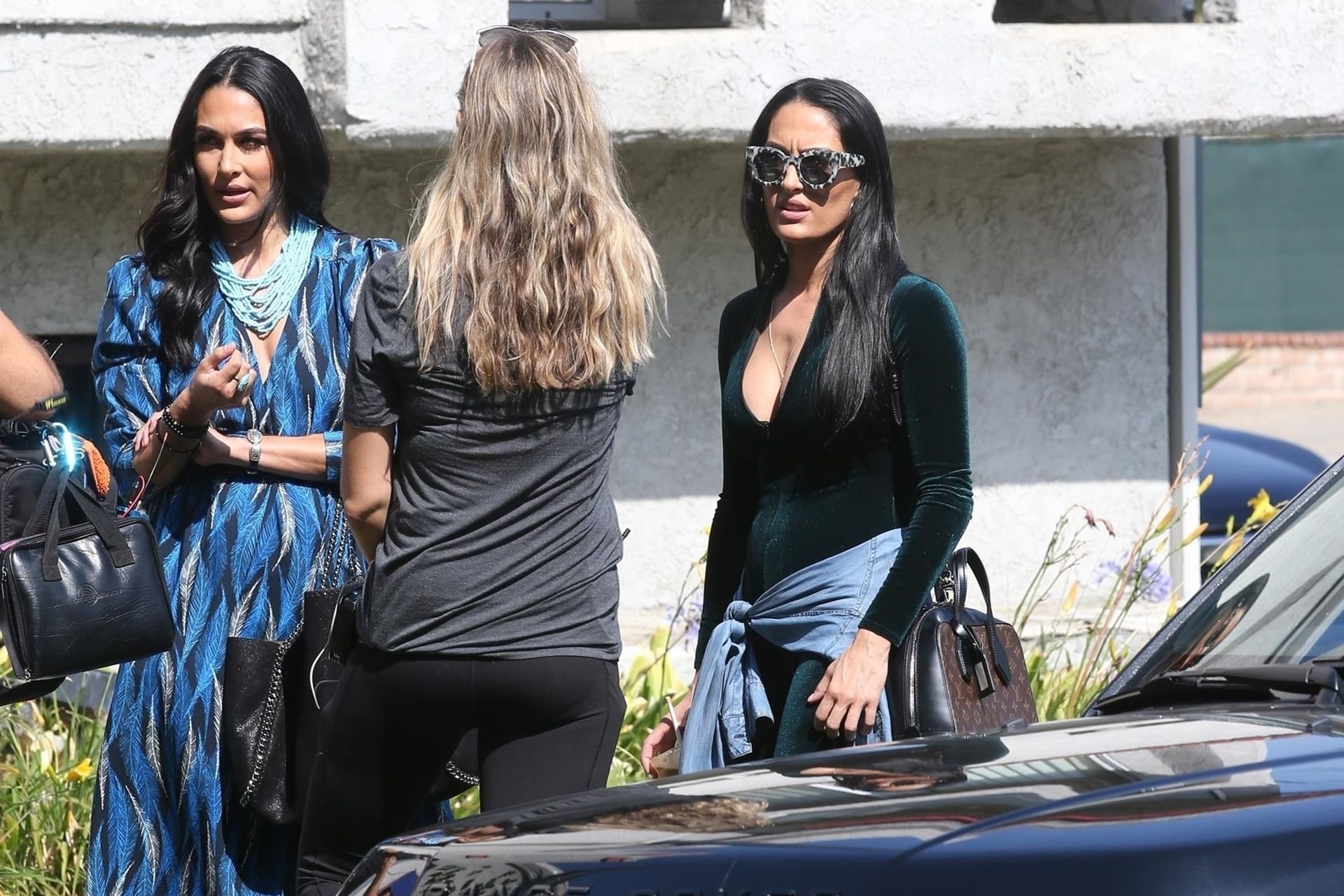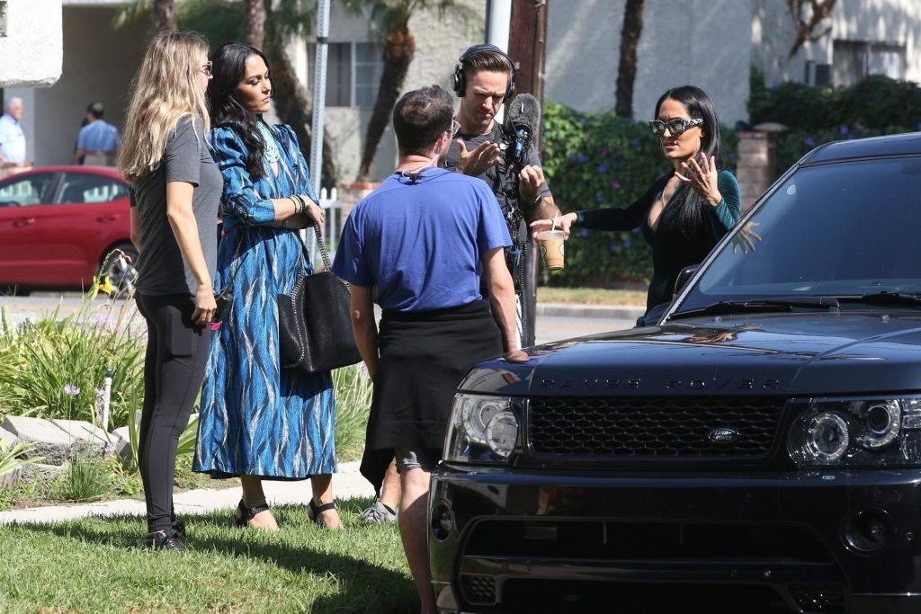 Профессиональные рестлерши сестры Никки и Бри Белла привлекают внимание, снимаясь для своего реалити-шоу «Total Bellas» в Лос-Анджелесе, 14.10.2019.