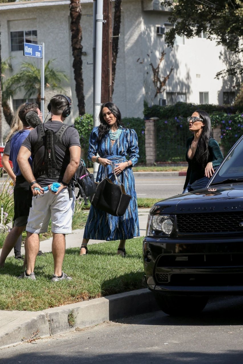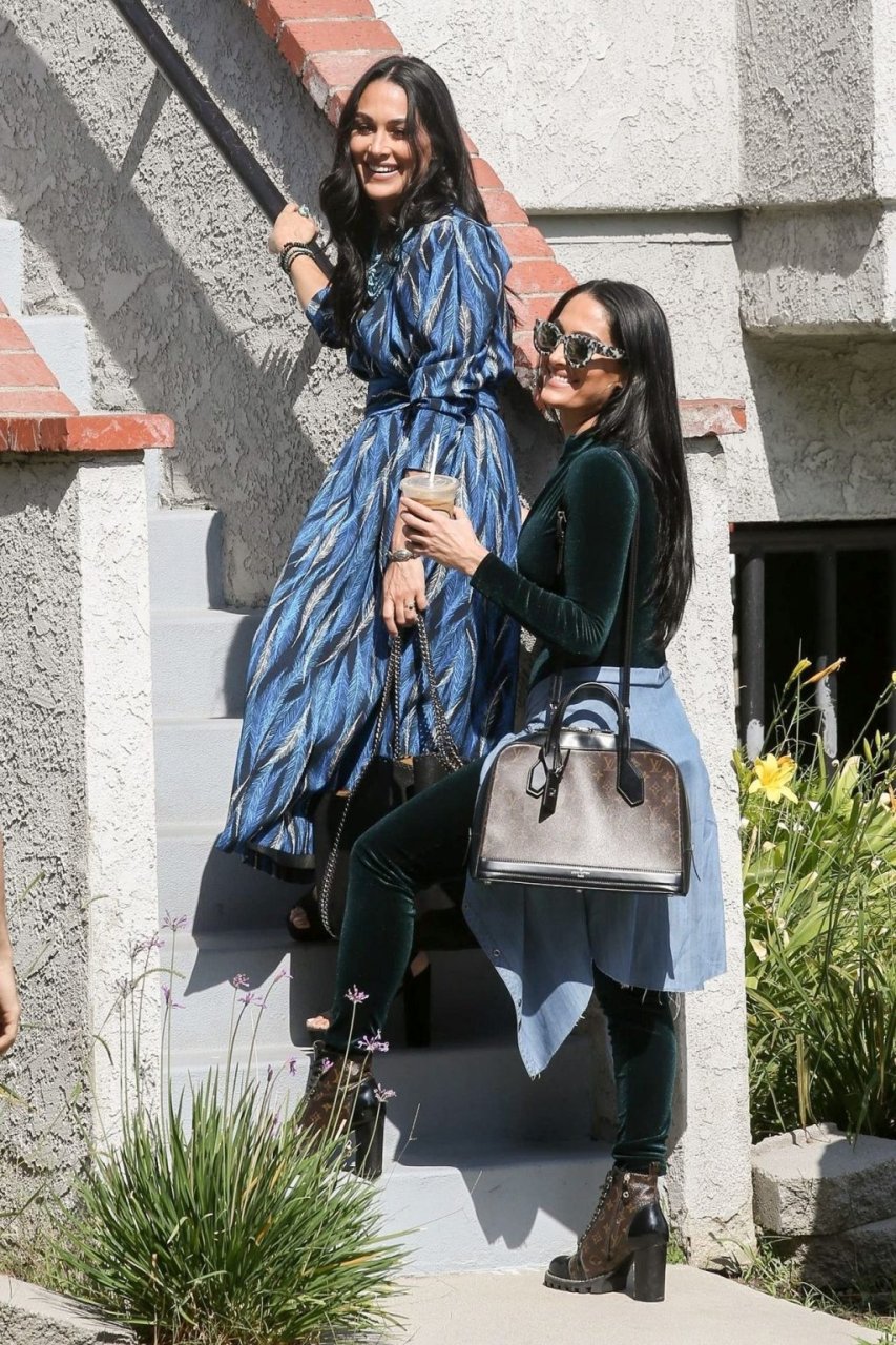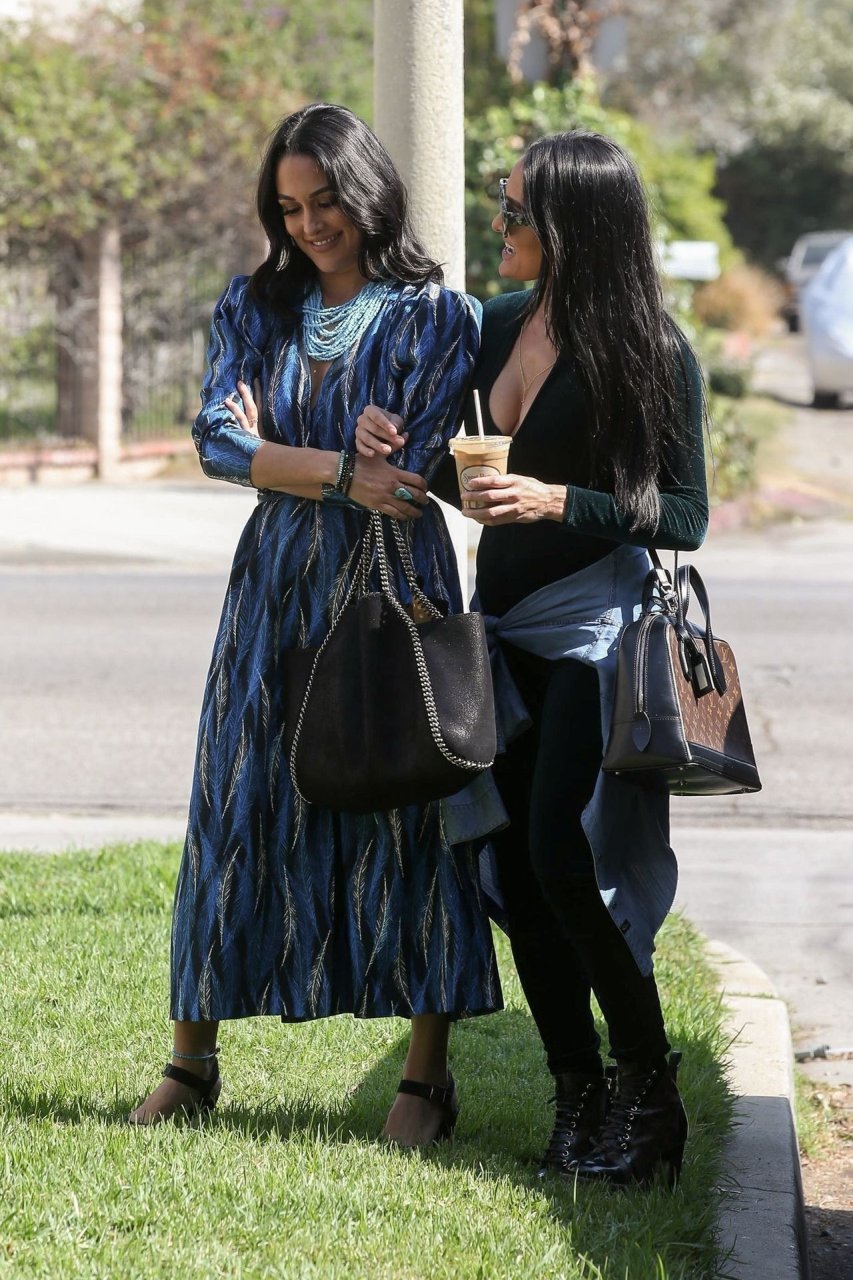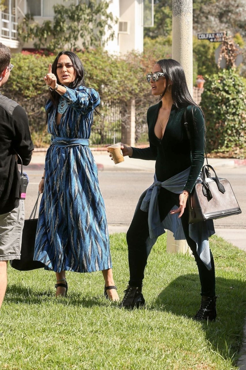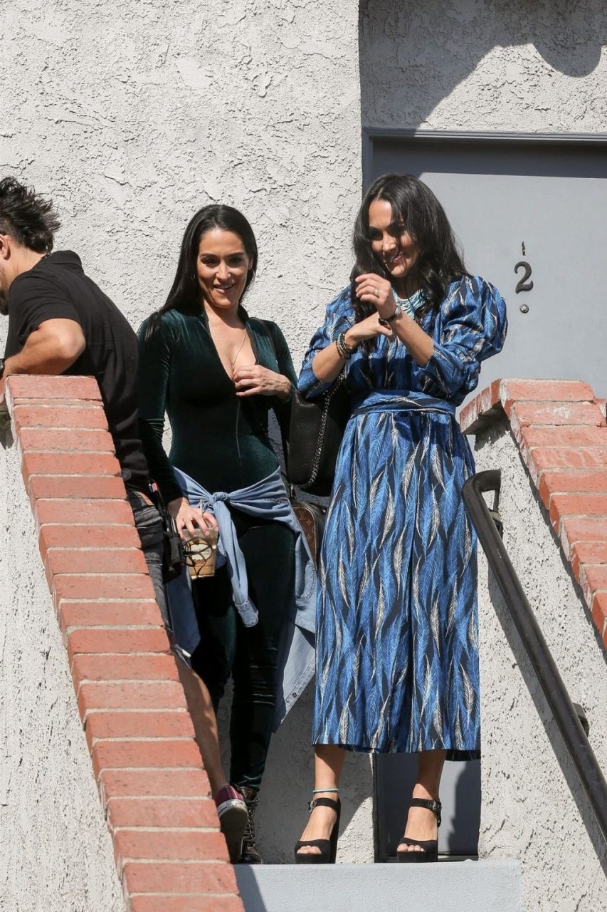 Профессиональные рестлерши сестры Никки и Бри Белла привлекают внимание, снимаясь для своего реалити-шоу «Total Bellas» в Лос-Анджелесе, 14.10.2019.
