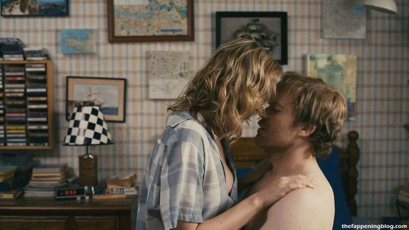 Бри Ларсон одета в голубой кроп-топ и обтягивающие красные шорты, когда она берёт мужчину за руку и пытается поднять её под свою рубашку, затем наклоняется, притираясь к нему во время танца, берёт его руку, тянет её через плечо и кладёт на свою правую грудь, в то время как её отец работает с электрическим щитком, а другой мужчина светит фонариком в лицо отцу, пытаясь отвлечь его, пока отец не понимает, что происходит, и не говорит Бри уйти, давая нам небольшой взгляд на её ягодицы в шортах, когда она уходит.