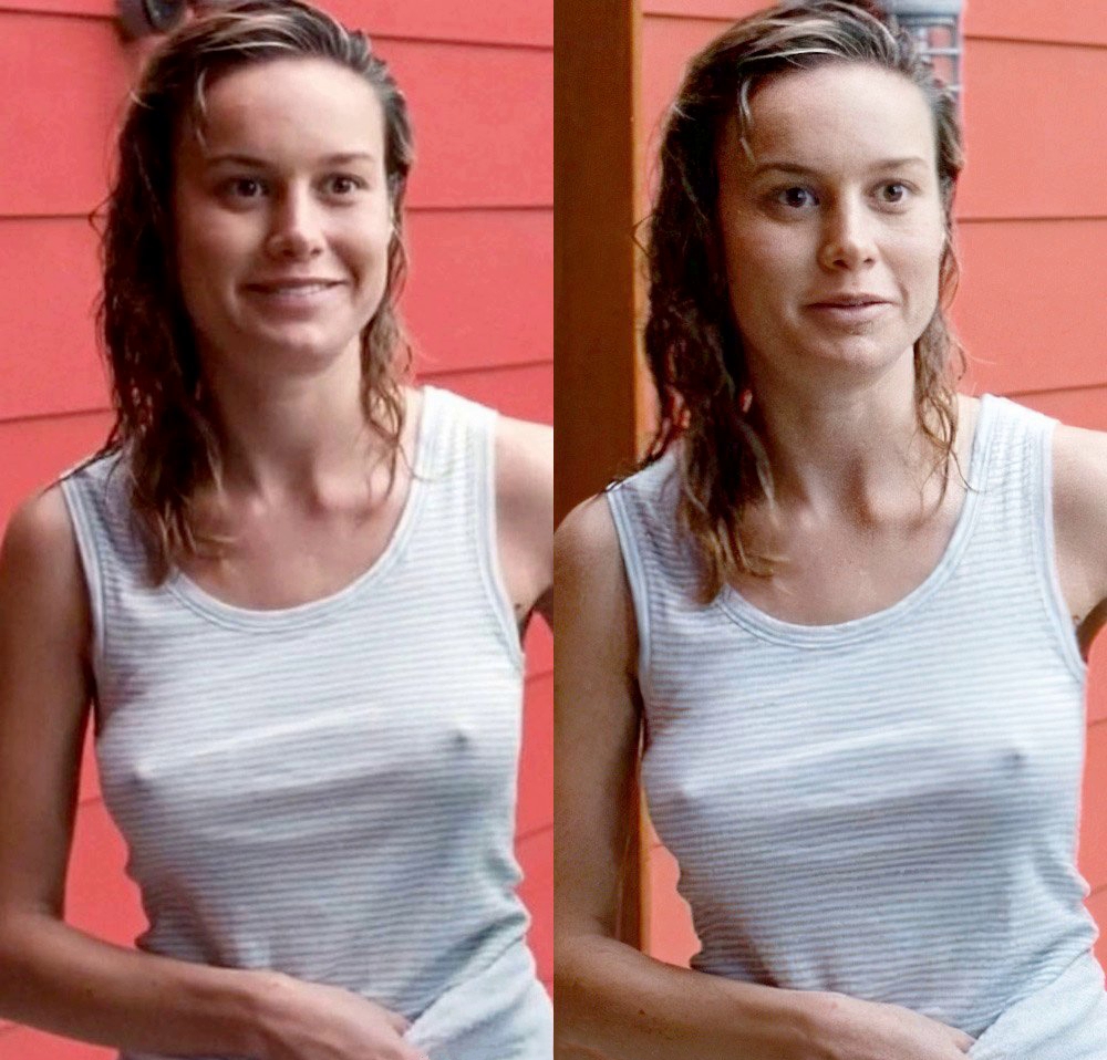 Актриса Бри Ларсон, похоже, гордо демонстрирует свои недавно проколотые соски на фейковых голых фотографиях ниже.