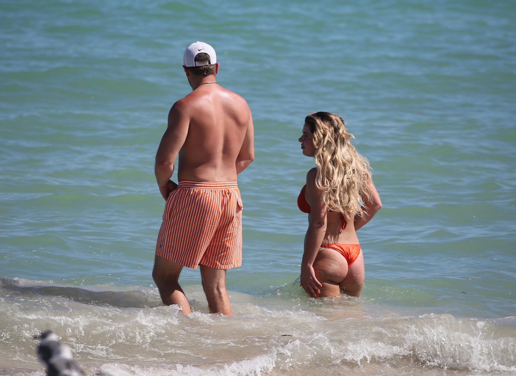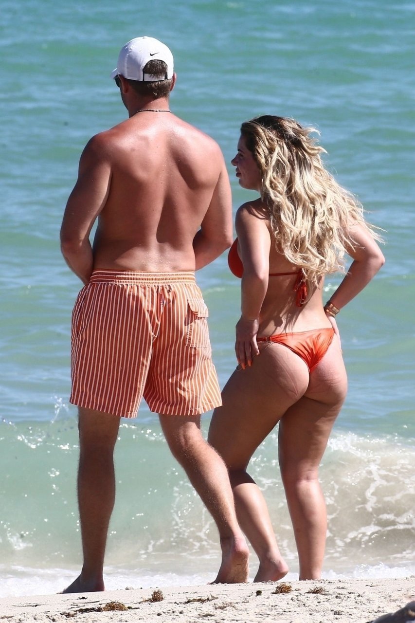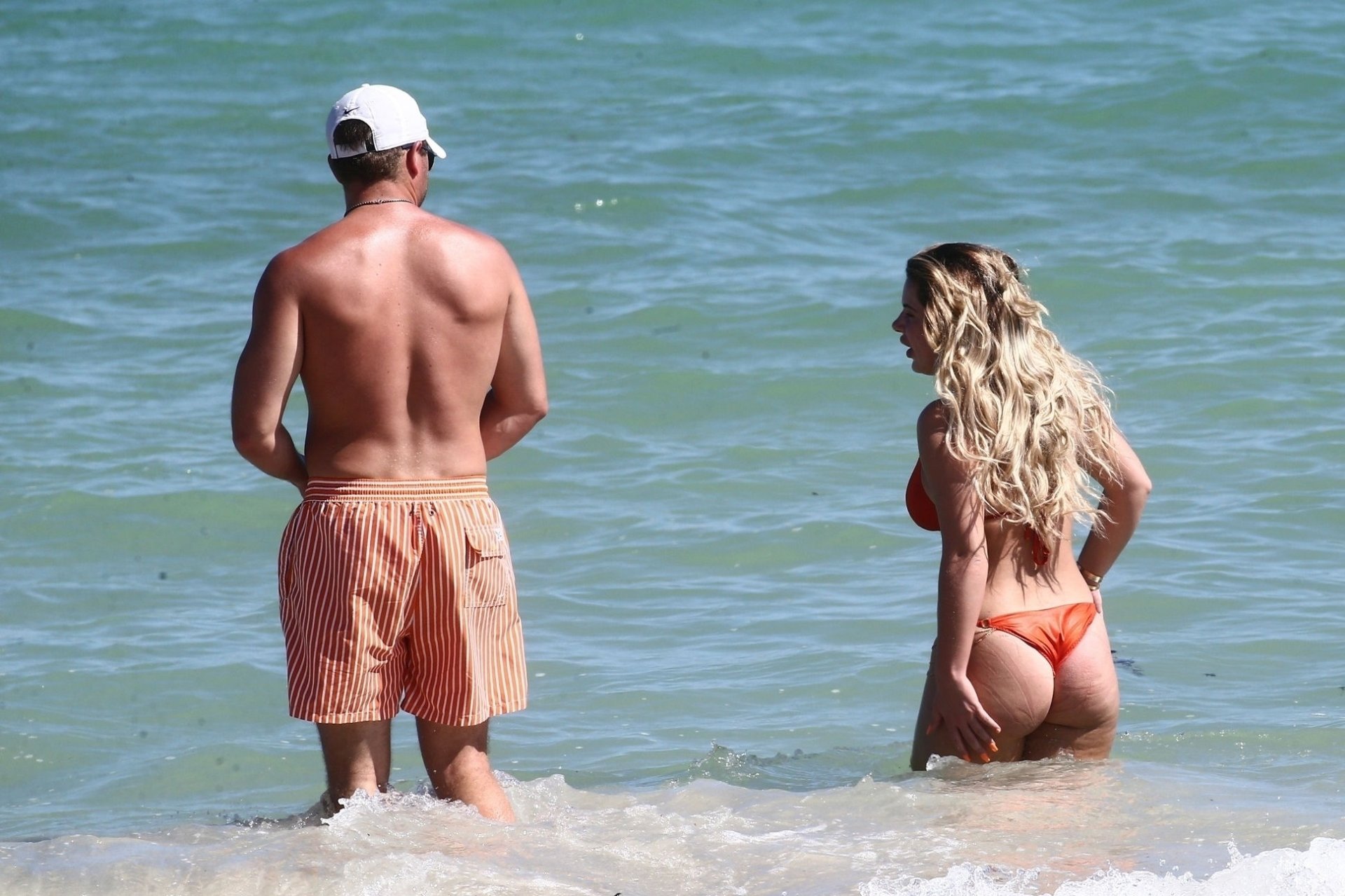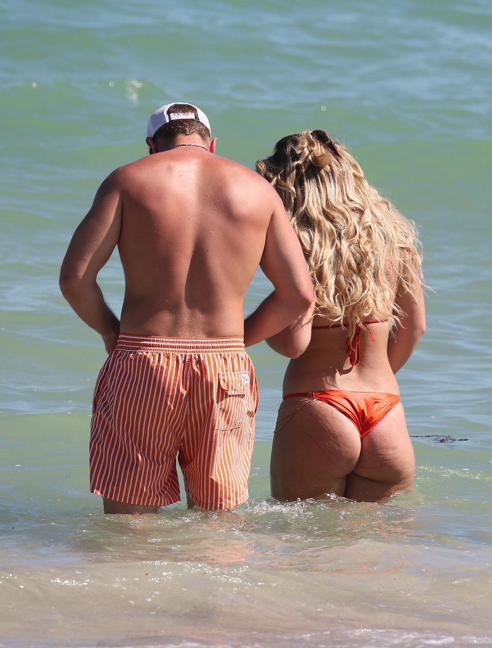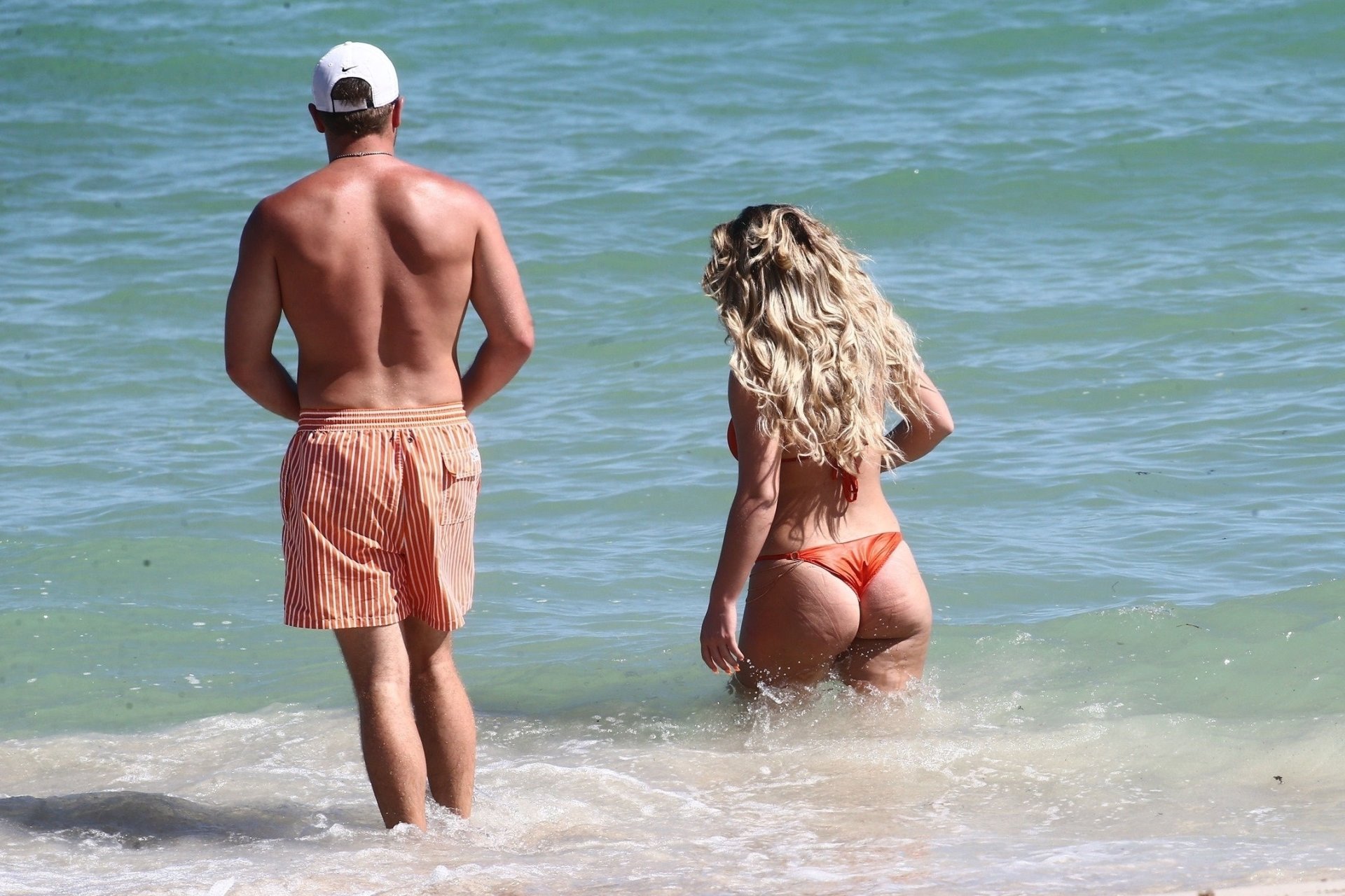Звезда реалити-шоу Бриэль Бирманн (21) носит откровенный оранжевый купальник, демонстрируя много публичных проявлений чувств с бойфрендом Слейдом Осборном на пляже в Майами-Бич, Флорида, 20.10.2018.