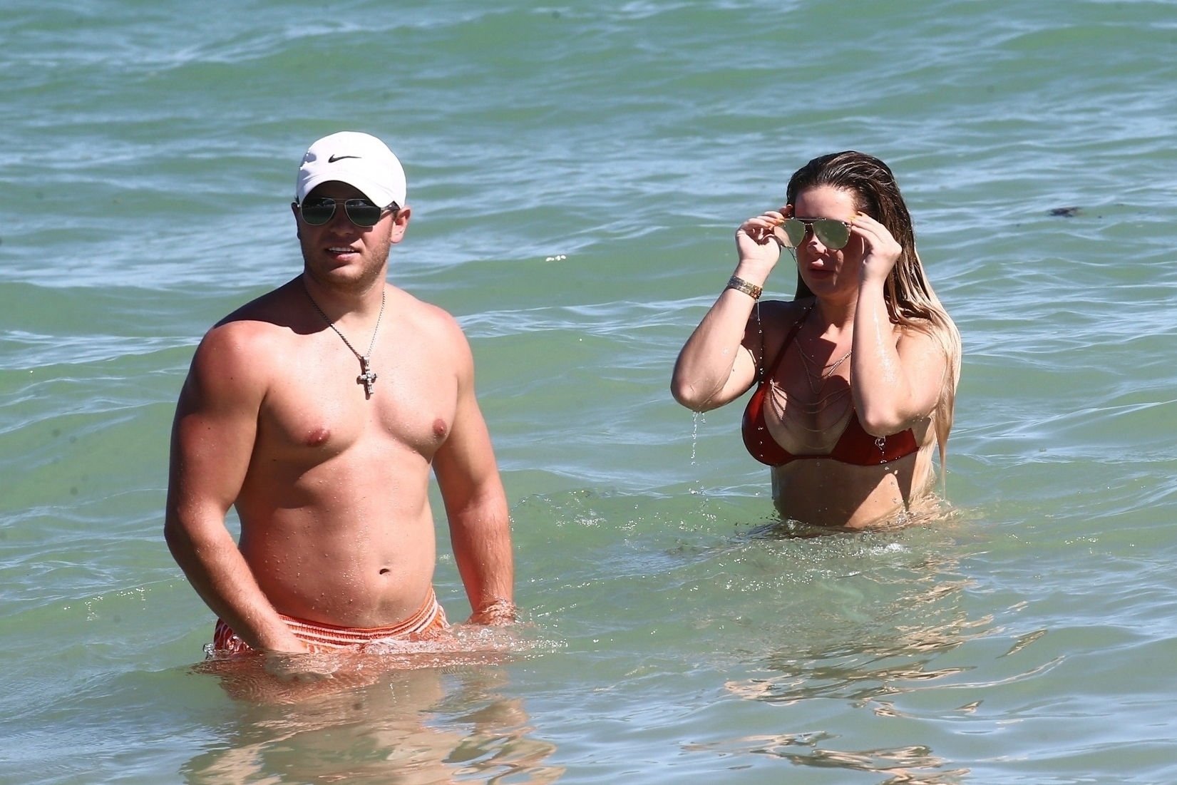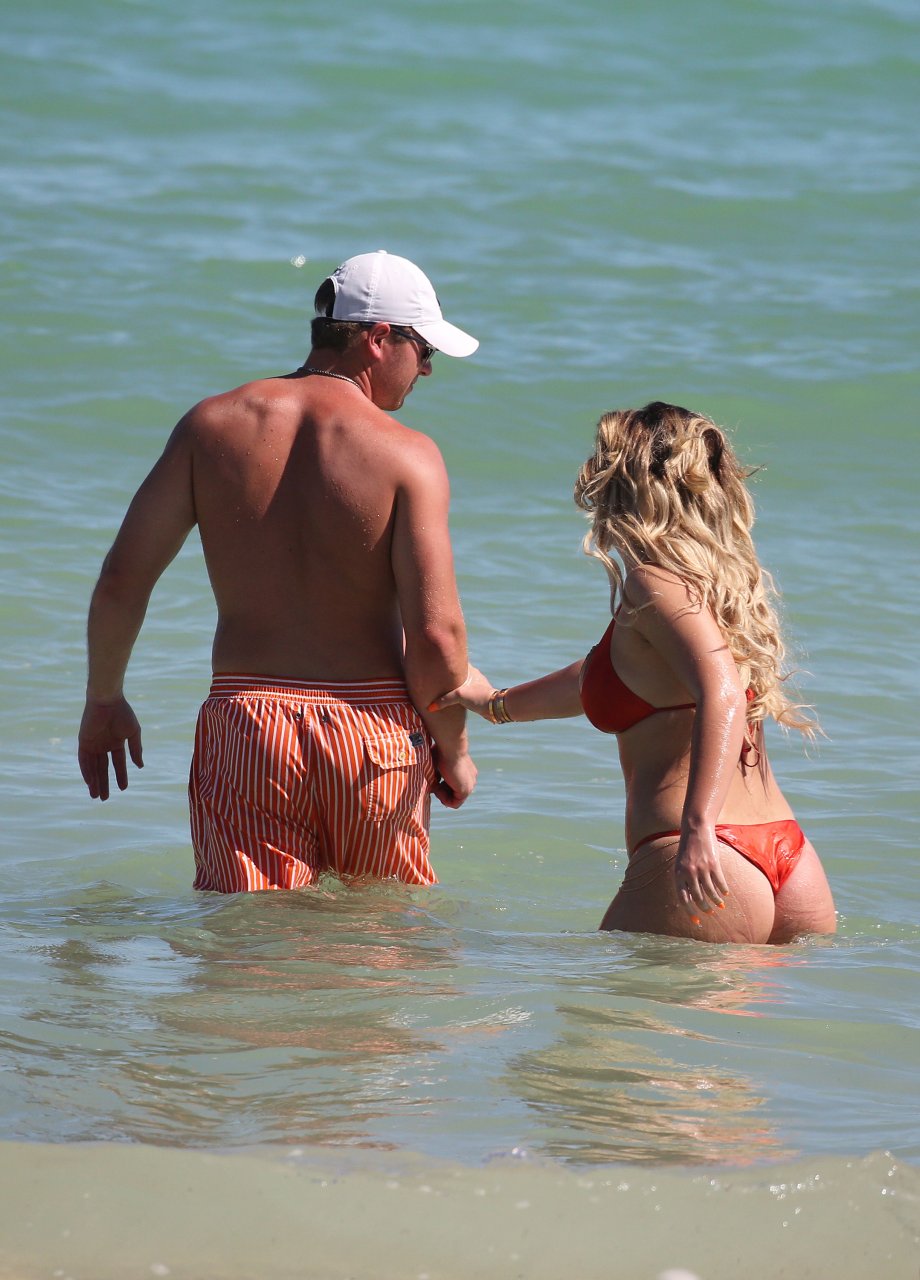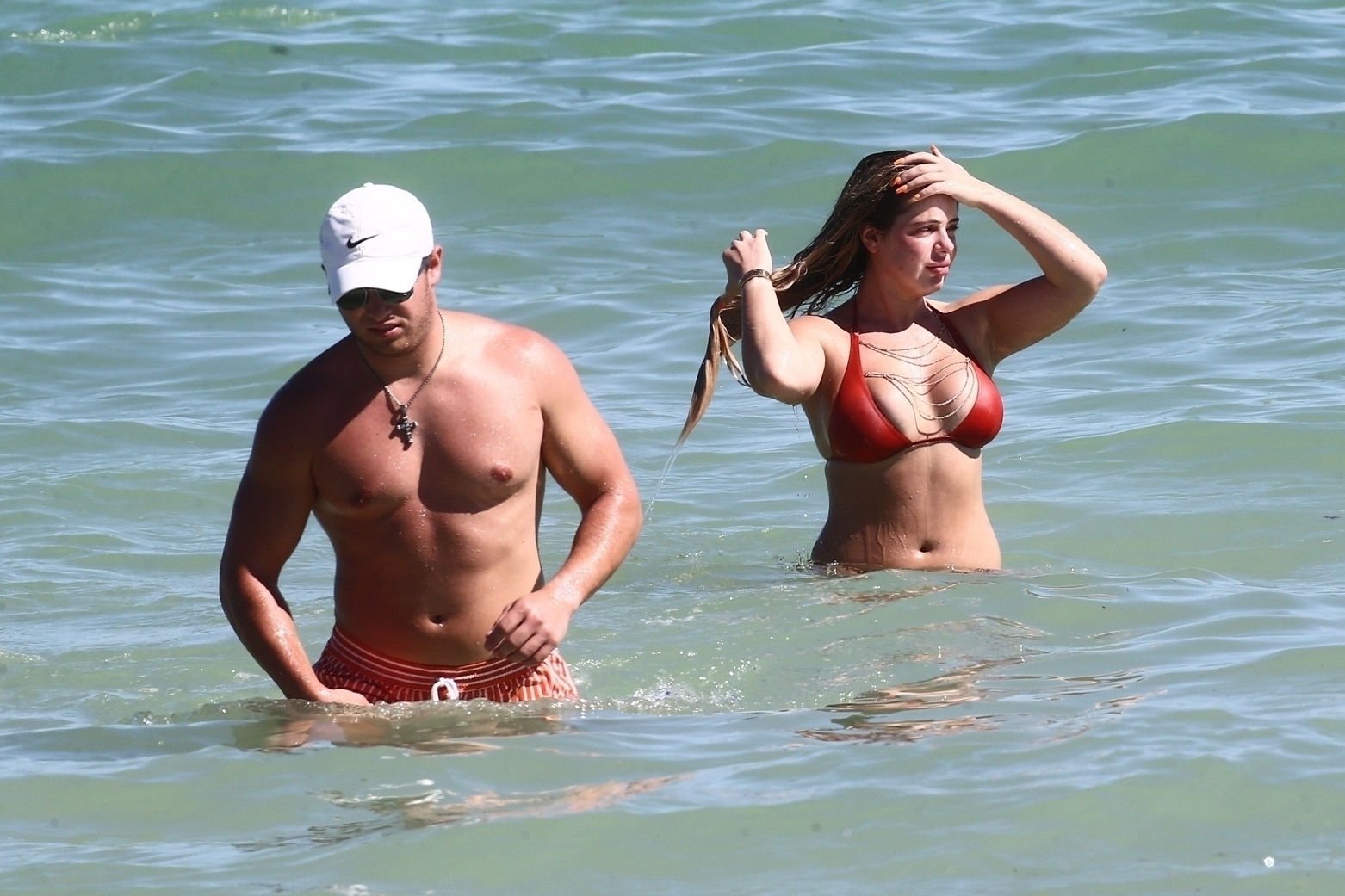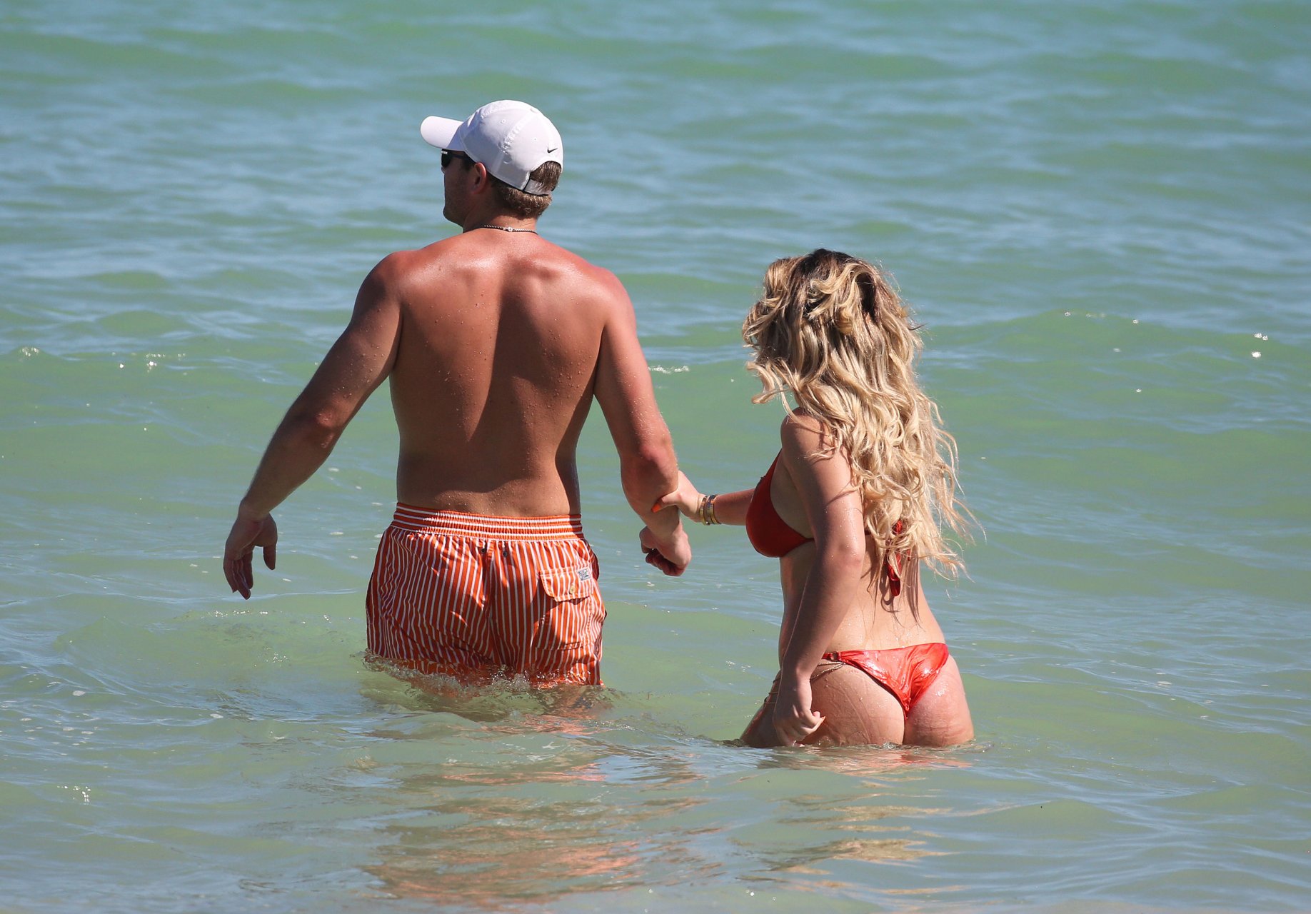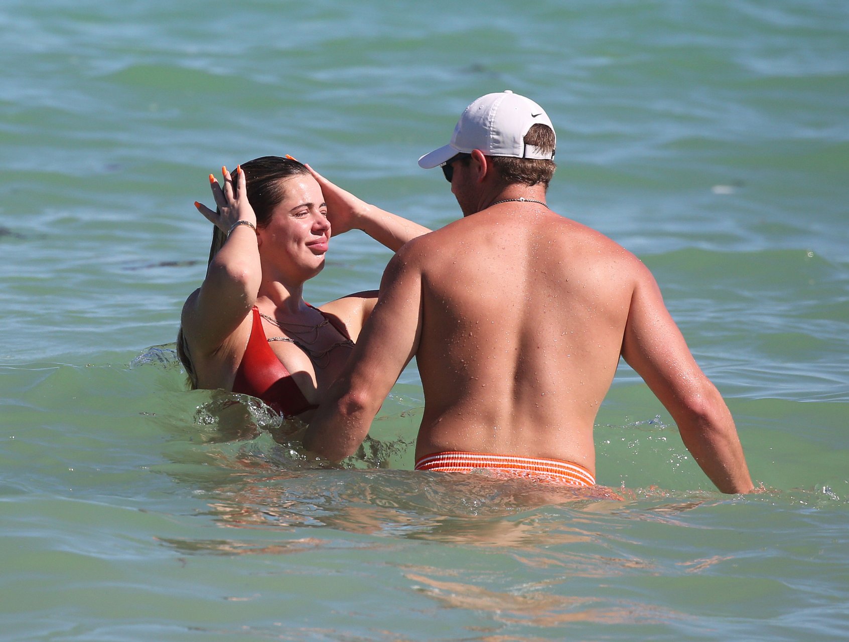 Звезда реалити-шоу Бриэль Бирманн (21) носит откровенный оранжевый купальник, демонстрируя много публичных проявлений чувств с бойфрендом Слейдом Осборном на пляже в Майами-Бич, Флорида, 20.10.2018.