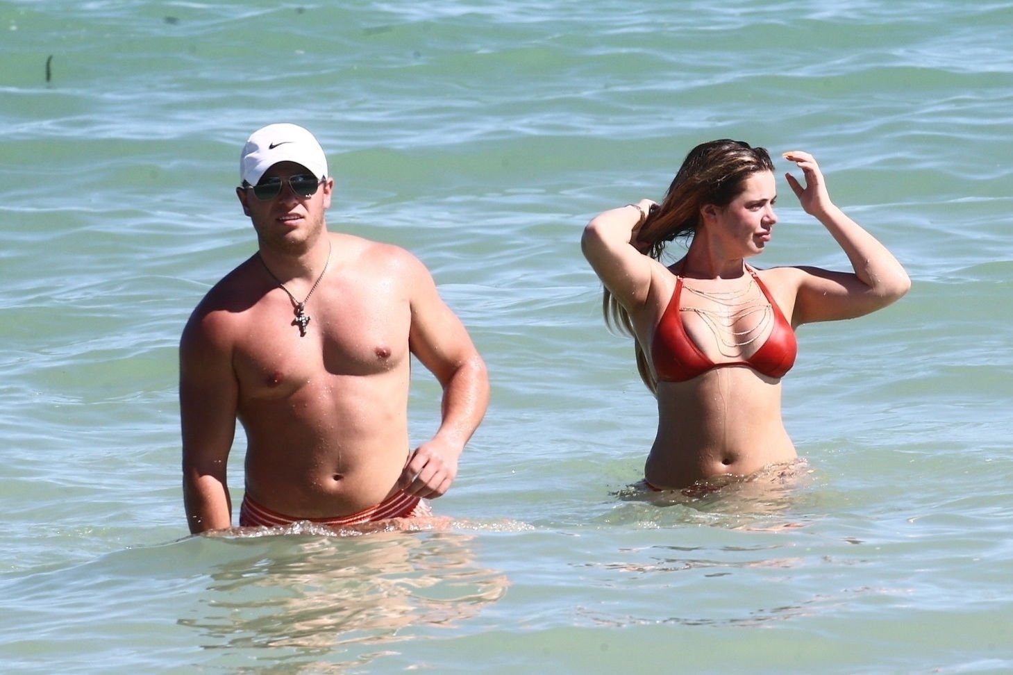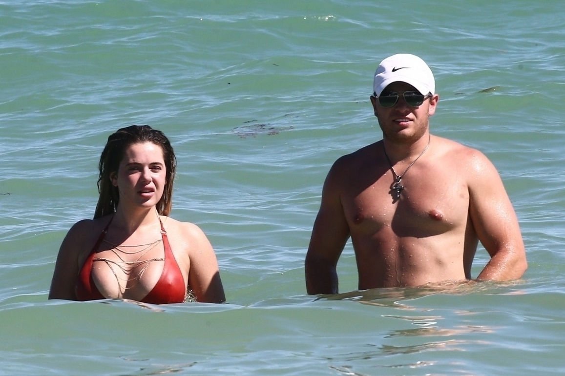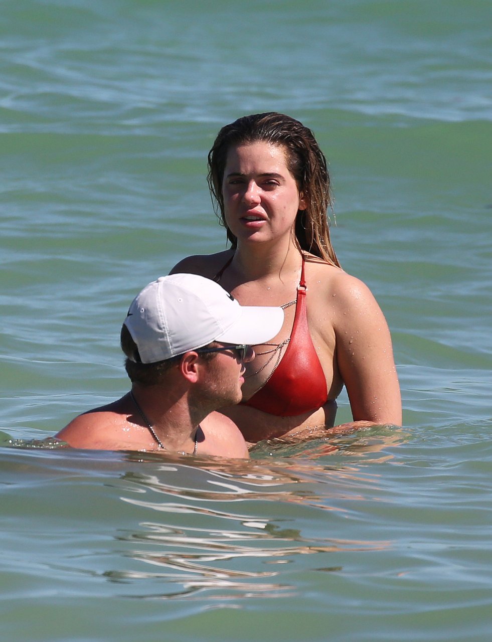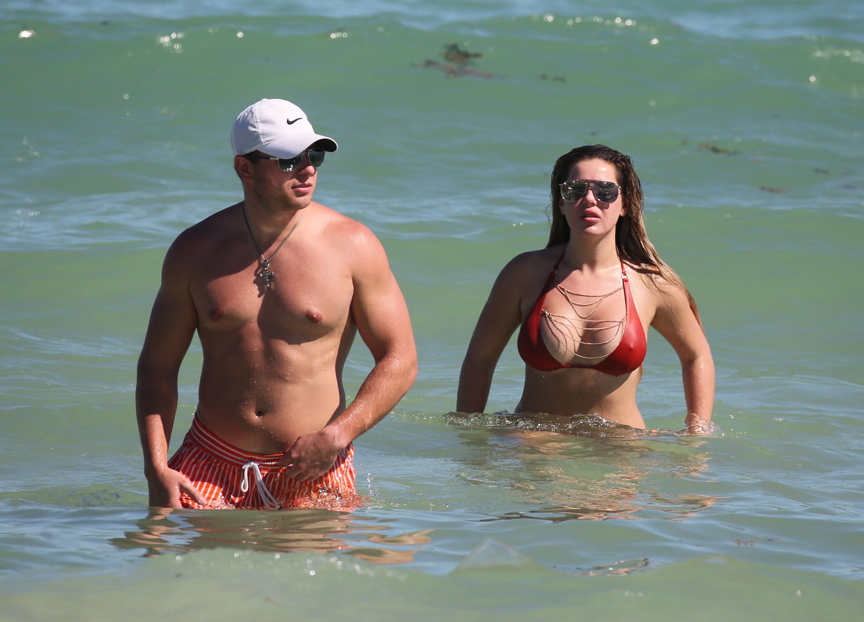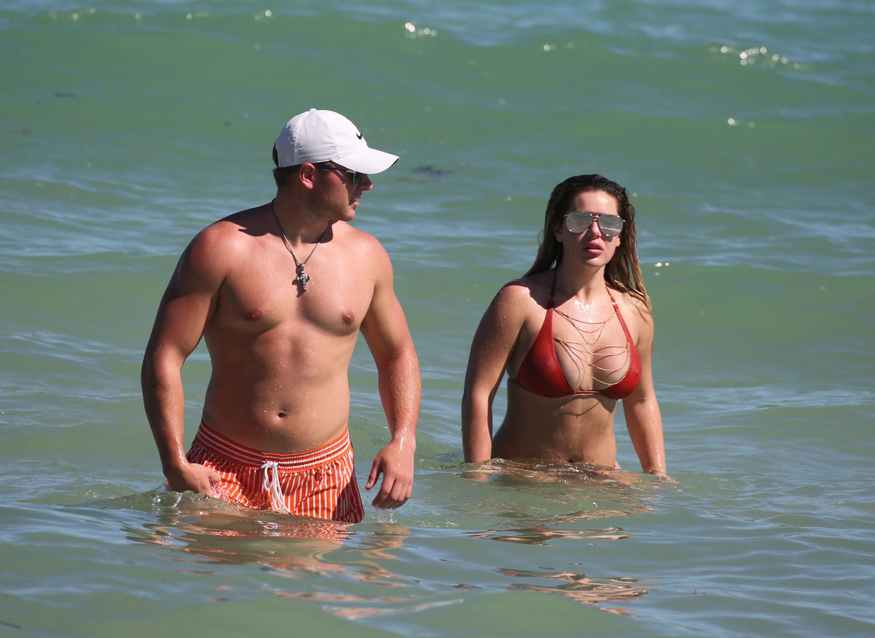 Звезда реалити-шоу Бриэль Бирманн (21) носит откровенный оранжевый купальник, демонстрируя много публичных проявлений чувств с бойфрендом Слейдом Осборном на пляже в Майами-Бич, Флорида, 20.10.2018.