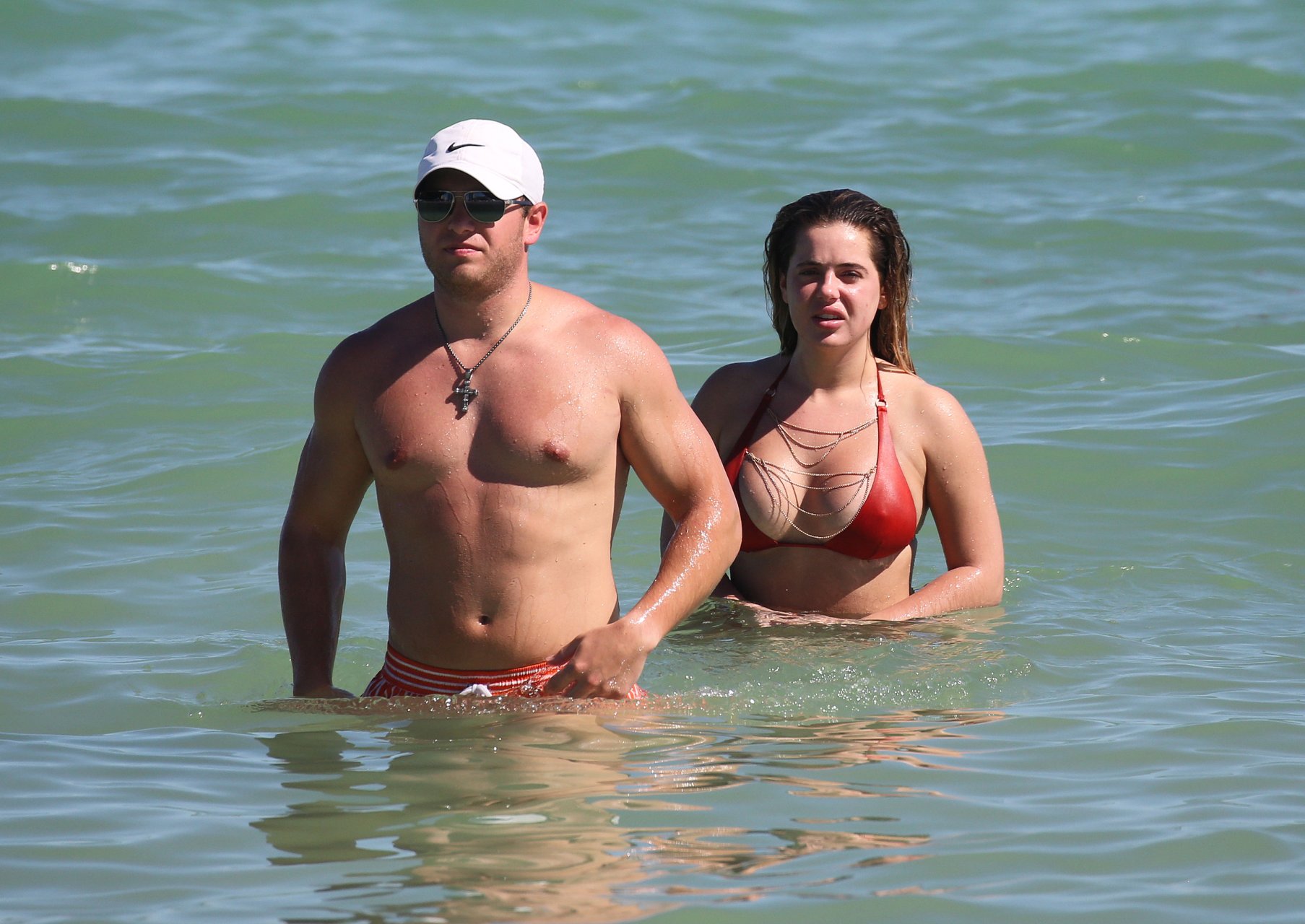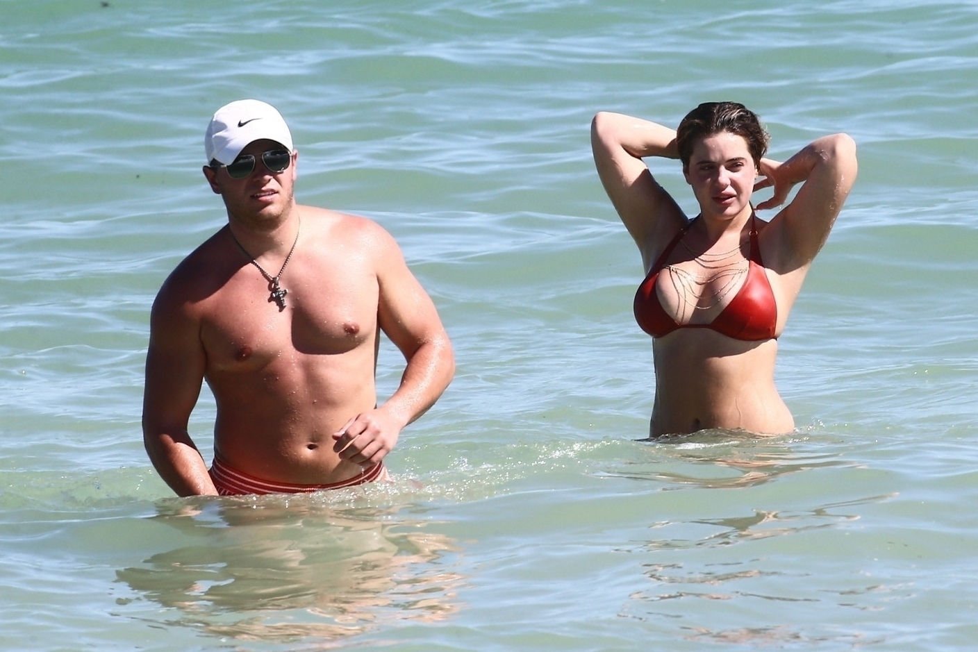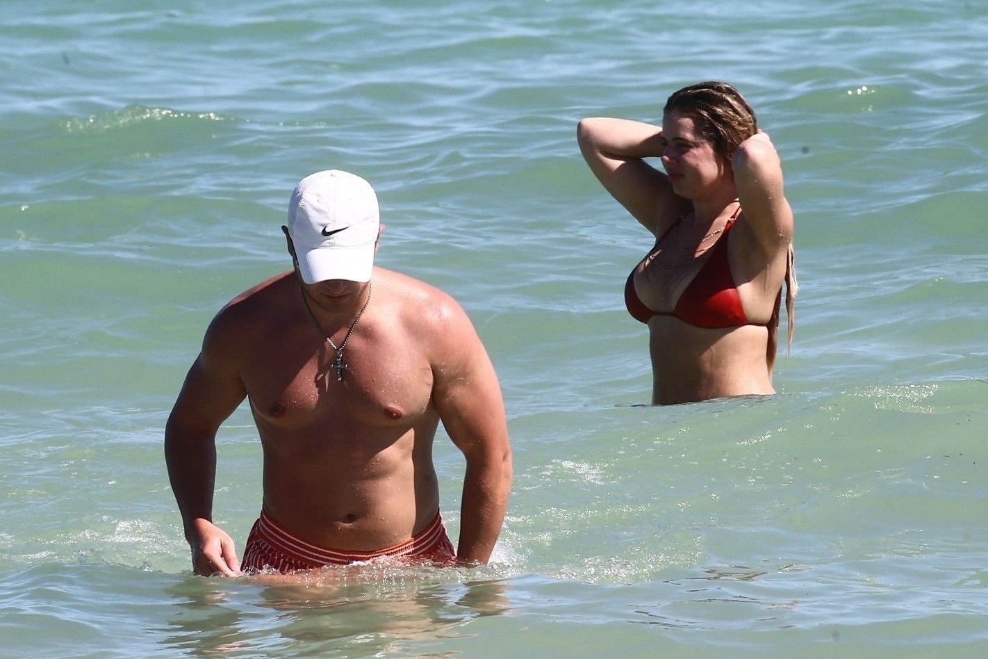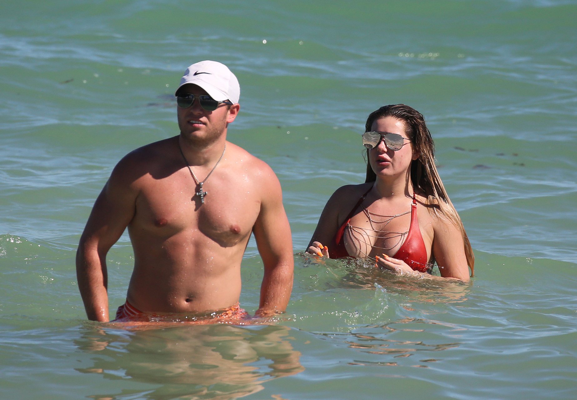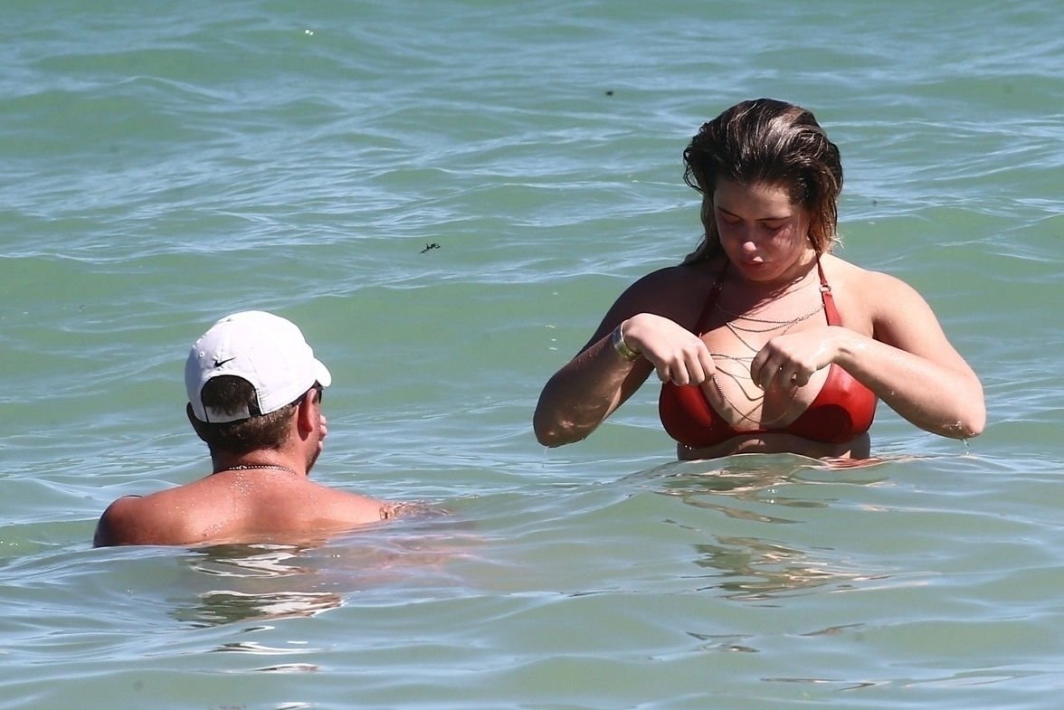 Звезда реалити-шоу Бриэль Бирманн (21) носит откровенный оранжевый купальник, демонстрируя много публичных проявлений чувств с бойфрендом Слейдом Осборном на пляже в Майами-Бич, Флорида, 20.10.2018.