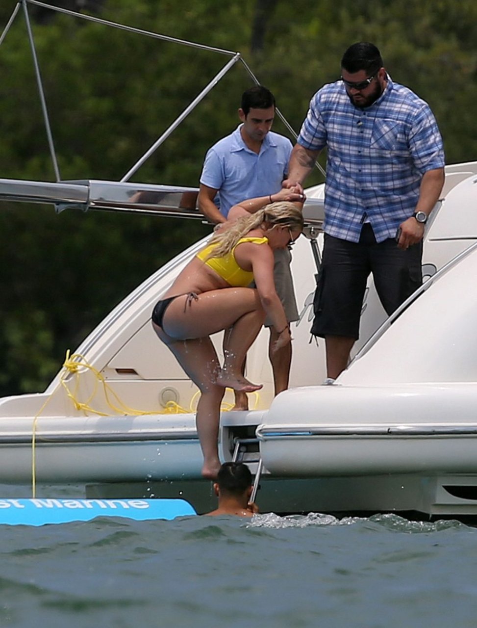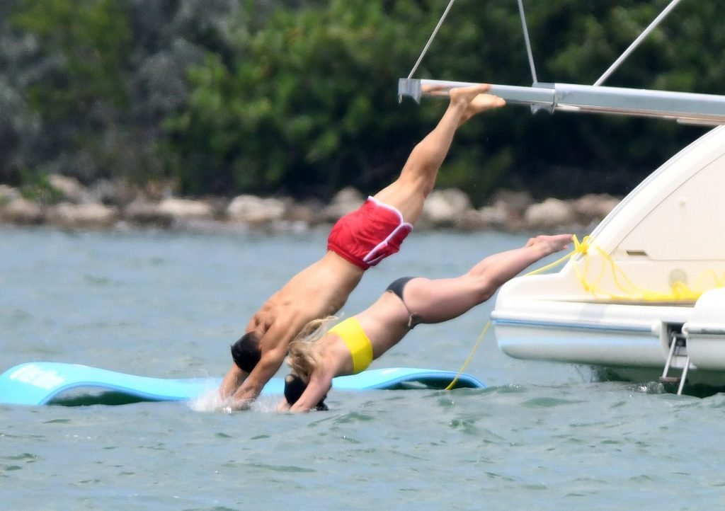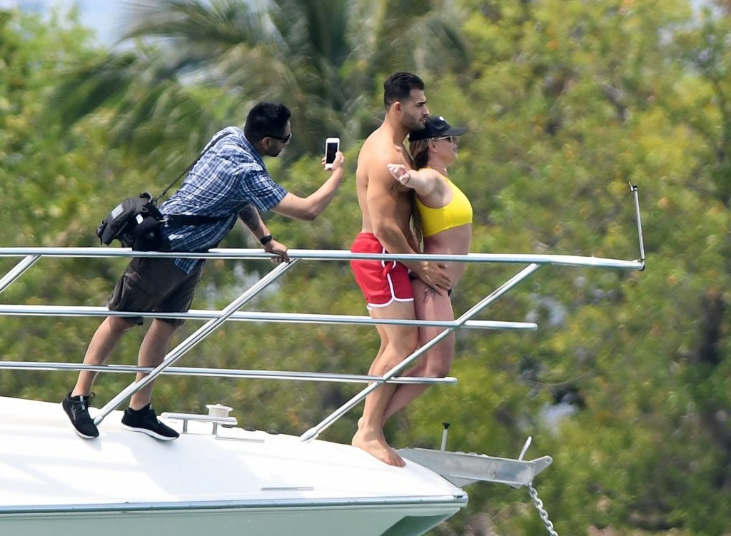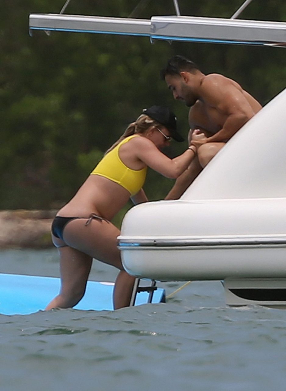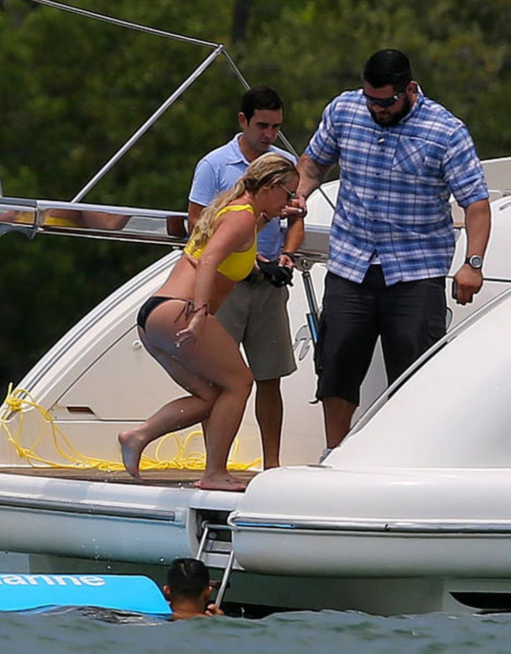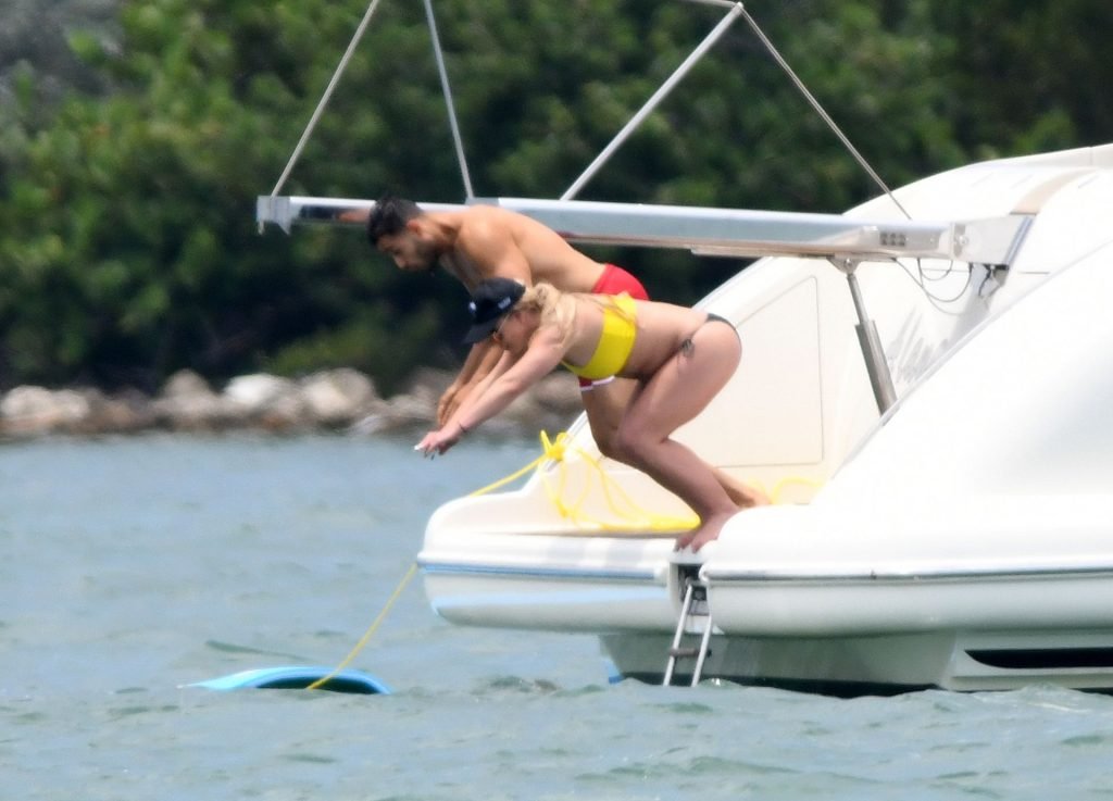 Пара демонстрировала свою форму, ныряя с кормы лодки, а позже воссоздала сцену из “Титаника”, отдыхая на носу. Хотя спортивная пара успела заняться разными активностями, казалось, что их любимым занятием было позирование в сексуальных позах, пока телохранитель делал снимки! Певица, казалось, оставила все свои проблемы позади, так как ее видели смеющейся и улыбающейся на протяжении идеального дня на воде.