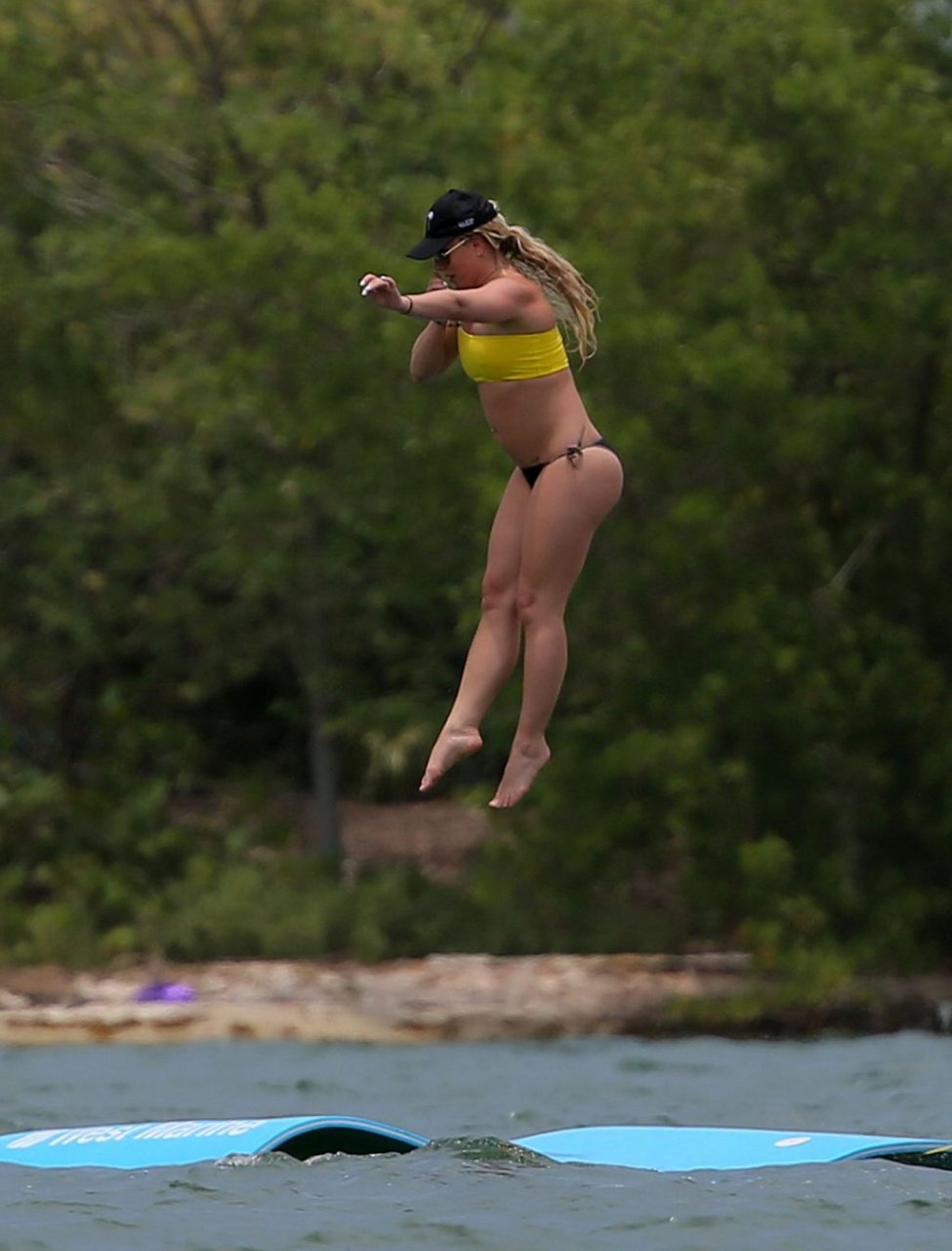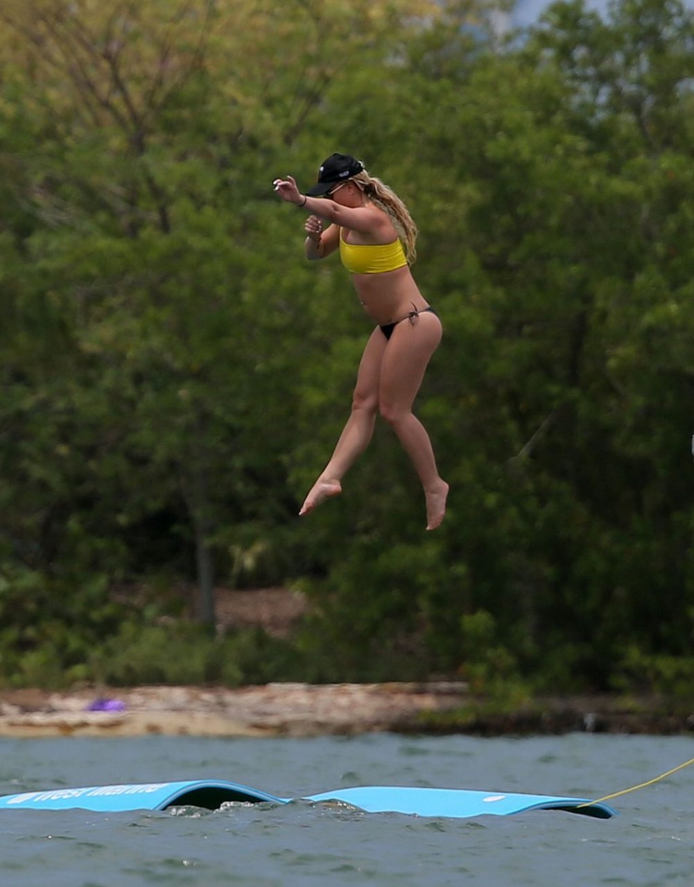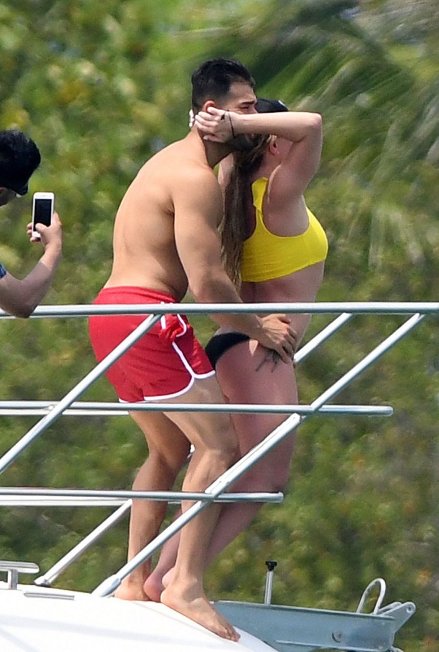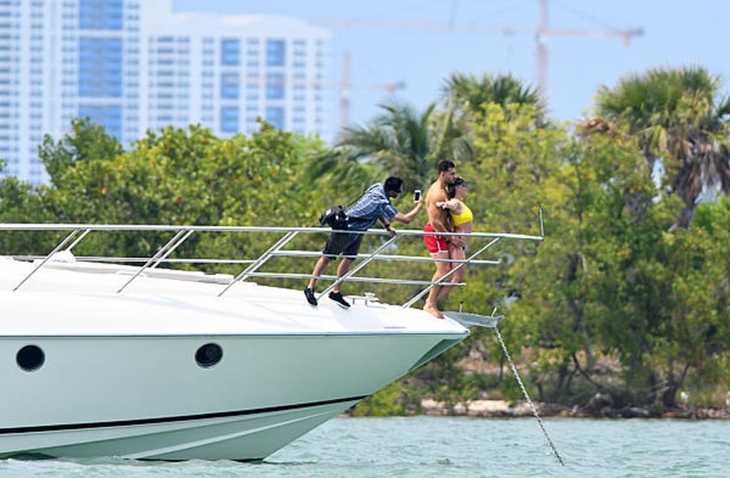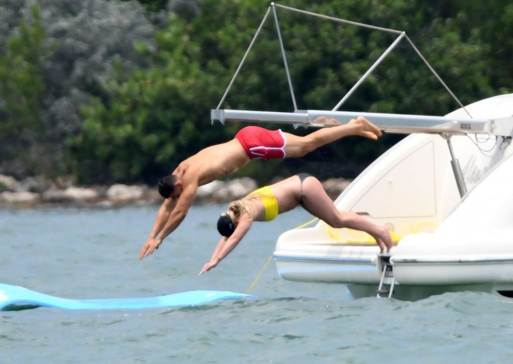 Пара демонстрировала свою форму, ныряя с кормы лодки, а позже воссоздала сцену из “Титаника”, отдыхая на носу. Хотя спортивная пара успела заняться разными активностями, казалось, что их любимым занятием было позирование в сексуальных позах, пока телохранитель делал снимки! Певица, казалось, оставила все свои проблемы позади, так как ее видели смеющейся и улыбающейся на протяжении идеального дня на воде.