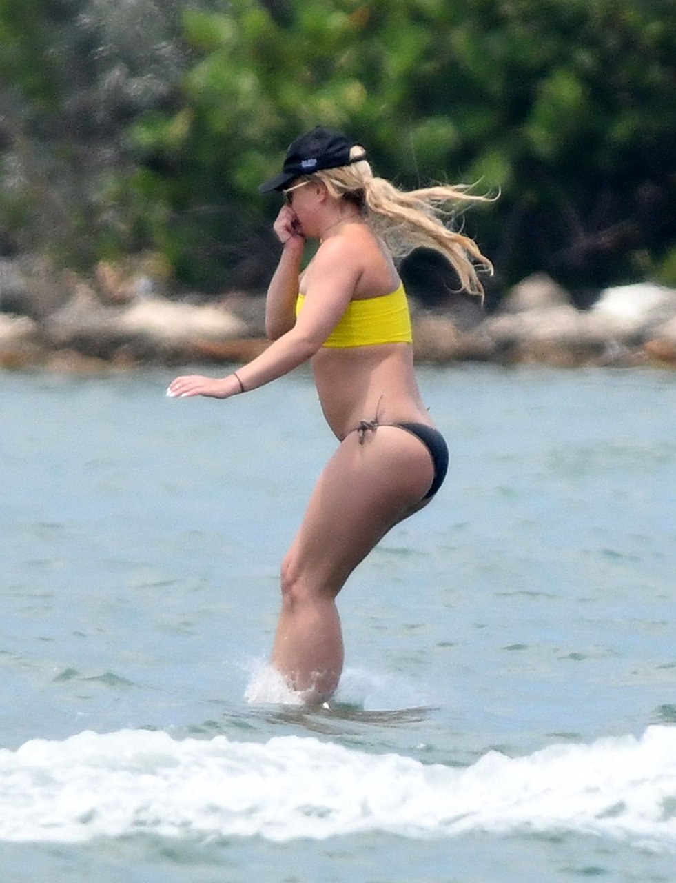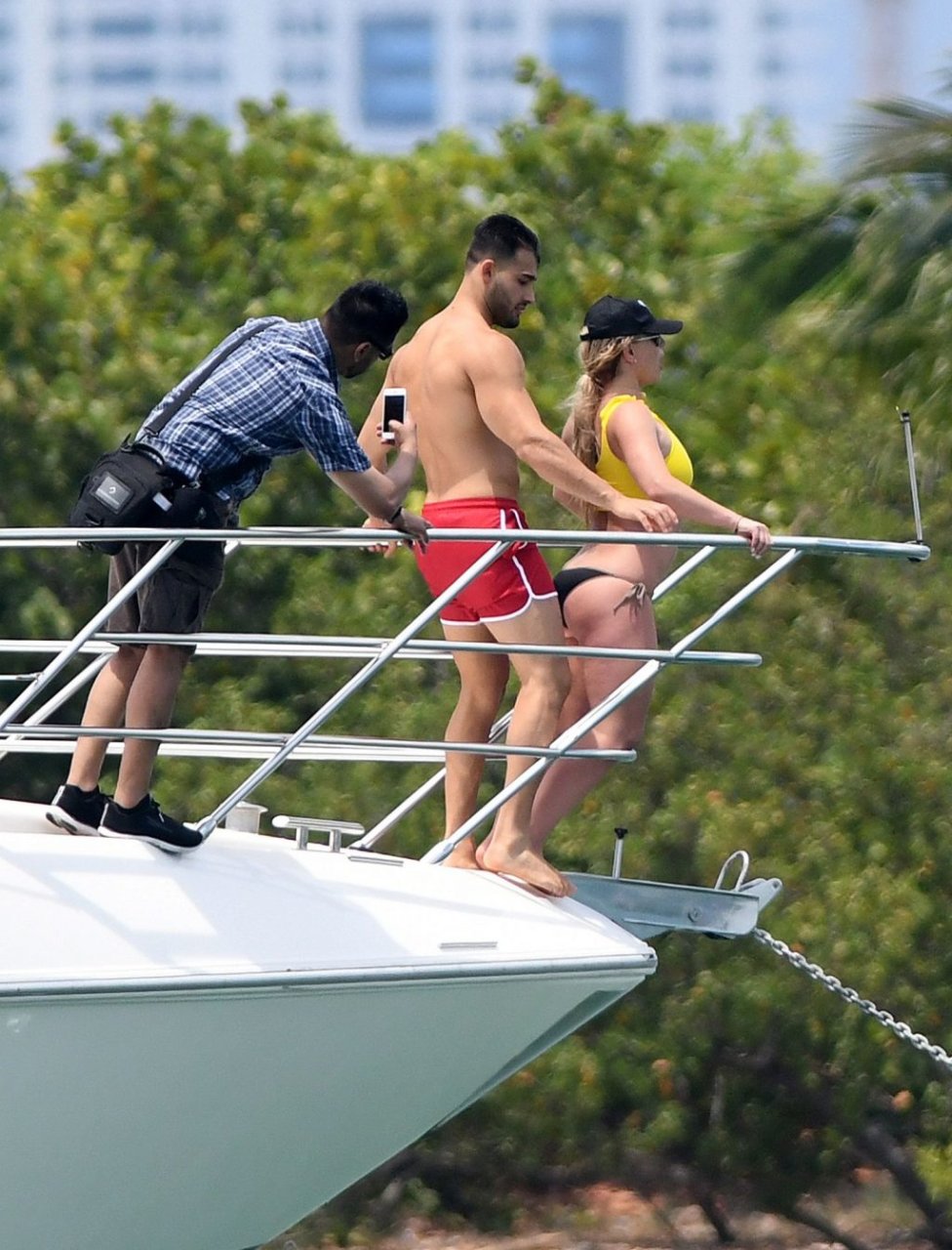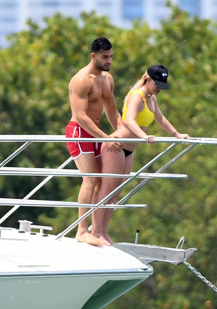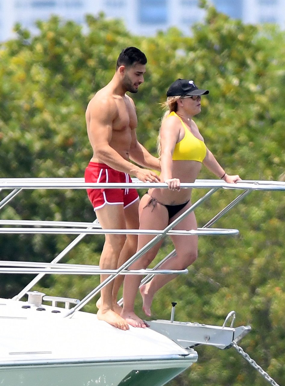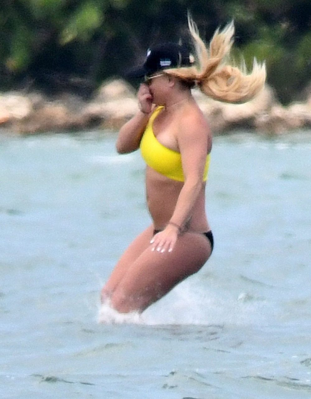 Britney Spears носит желтый бикини, проводя насыщенный событиями день на яхте с бойфрендом Сэмом Асгари в Майами, 06/08/2019.