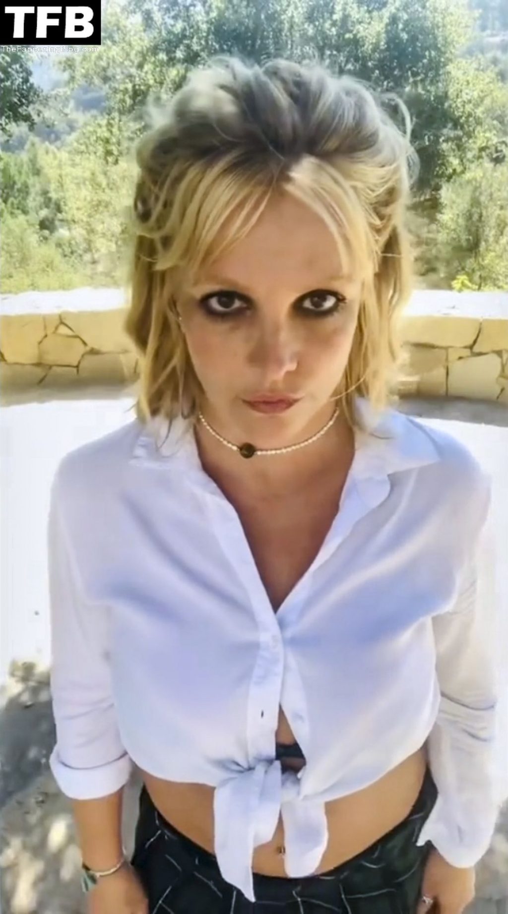 Britney Spears демонстрирует свои сексуальные груди в наряде из “Baby One More Time” в своем последнем посте в социальных сетях, 18.01.2022.