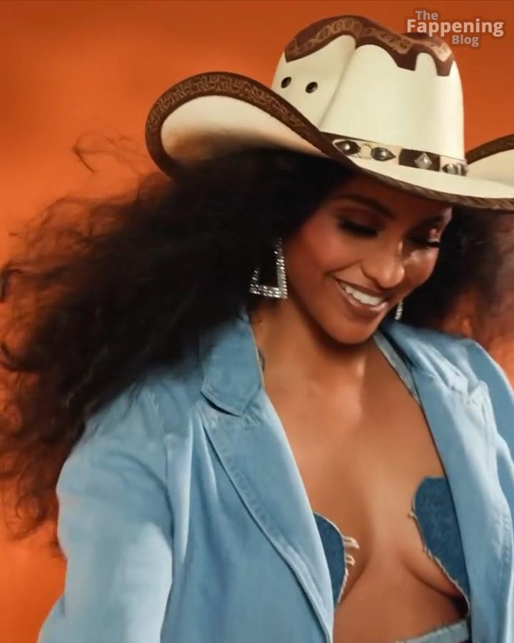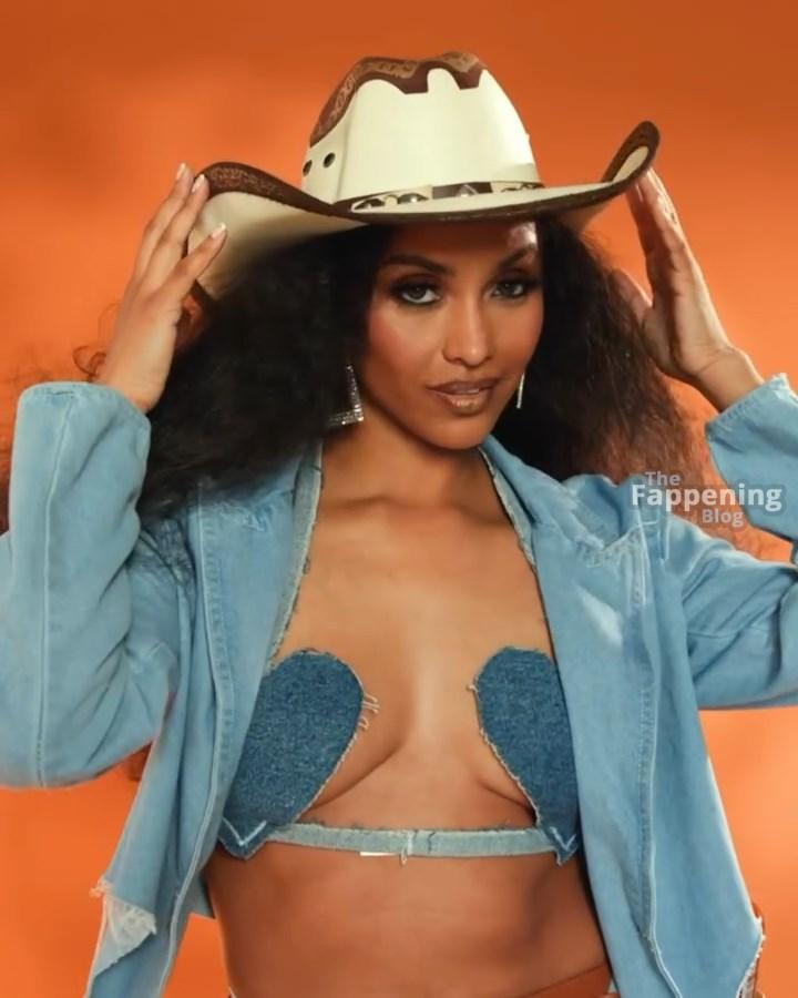 Вам обязательно нужно увидеть сексуальный образ Бриттни Элены в стиле ковбойши — это так весело и креативно! Актриса и телеведущая полностью погружается в западную тему с огромной джинсовой курткой, подходящим бюстгальтером и этими высокими до небес сапогами. Она добавляет игривые детали, такие как ковбойская шляпа и джинсовые элементы в форме сердца.
