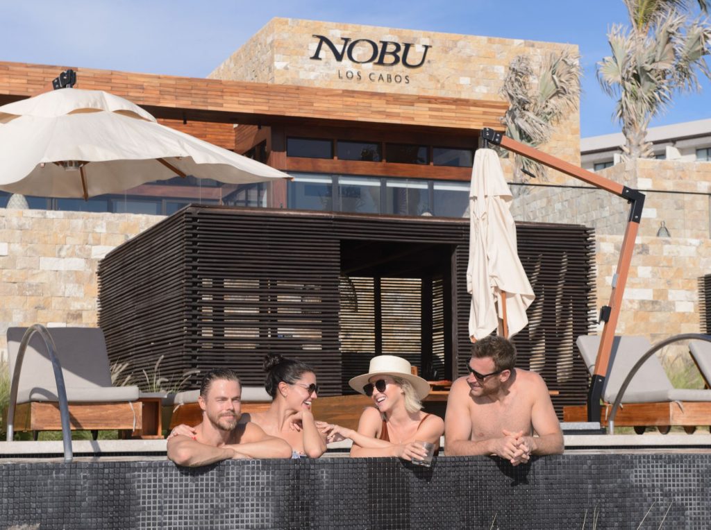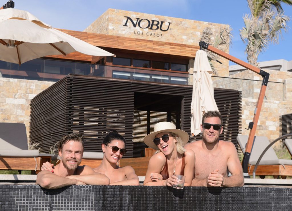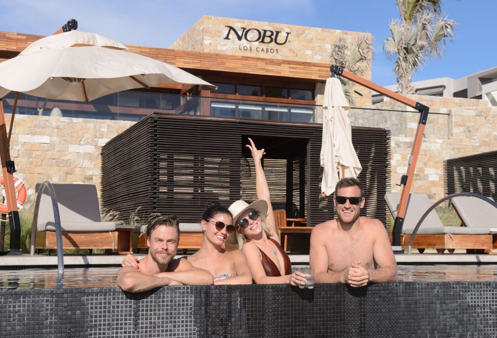 Сексуальная шестерка была замечена, как они потеют в спортзале заведения во время быстрой тренировки, прежде чем отправиться в свои частные кабаны, где наслаждались маргаритами и креветками агуачиле у бассейна. После целого дня загара и плавания в одном из трех бассейнов курорта, все отправились в спа Esencia на парные массажи и гидротерапию. Когда солнце начало садиться, группа выбрала коктейли на террасе ресторана Nobu, чтобы насладиться потрясающим закатом в Кабо-Сан-Лукас во всей его красе.