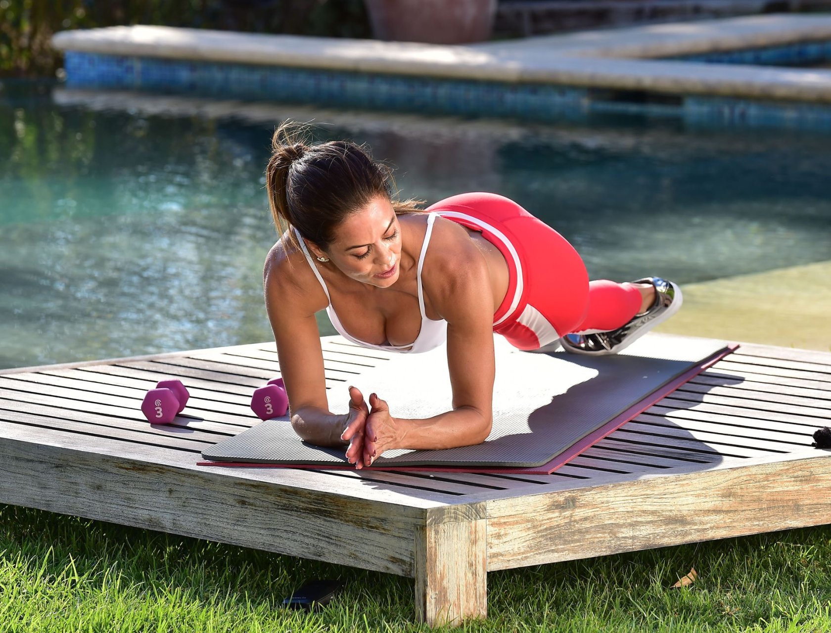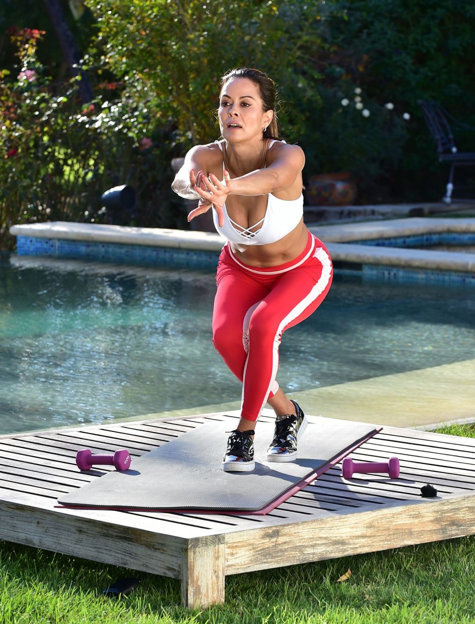 Красивая мама, актриса/модель Брук Берк-Шарве продолжает продвигать свое приложение Brooke Burke Body, позируя в своем дворе в сексуальной фотосессии, 12.02.2019.