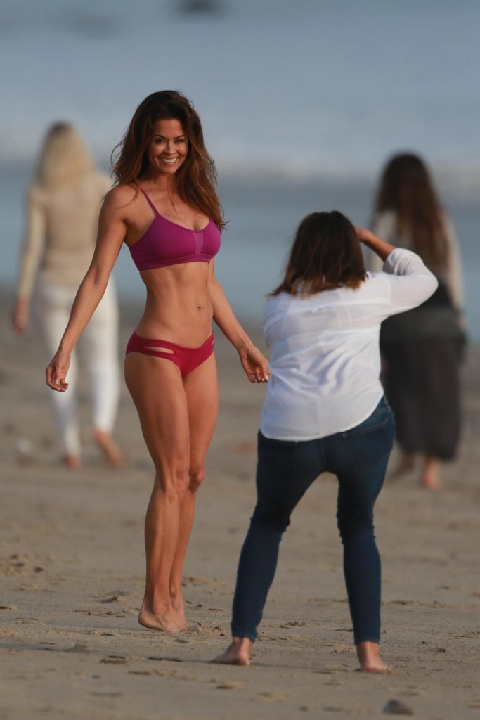 ‘Звезда шоу “Танцы со звездами” Брук Берк, 46 лет, демонстрирует свое невероятно горячее тело в бикини во время пляжной фотосессии для “Brooke Burke Body” в Малибу, 30.01.2018.