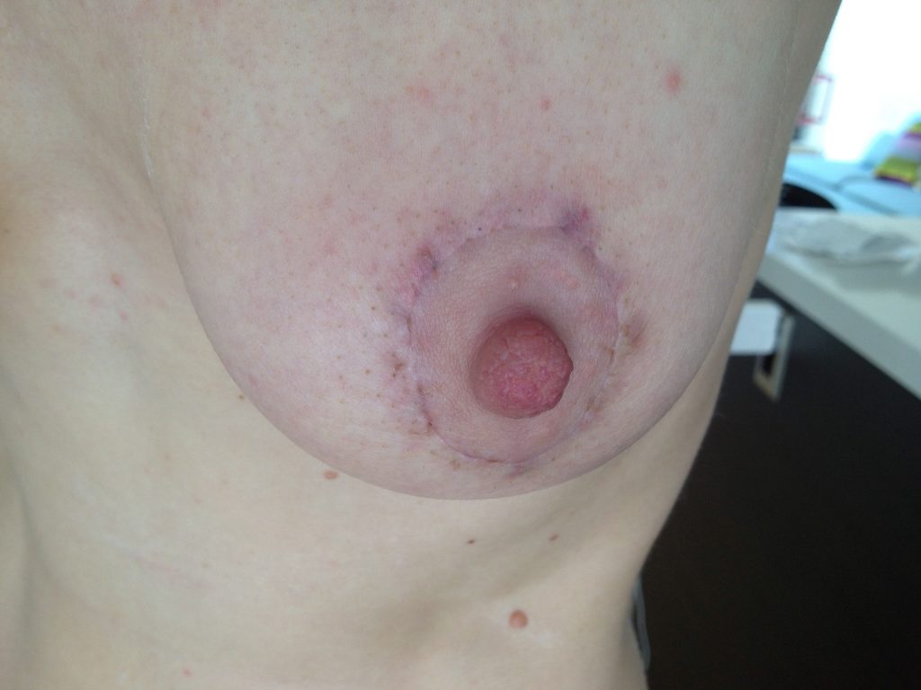 Для имплантов не удаляют весь сосок. Внизу делают полукруглый разрез. Возможно, это какой-то вид мастэктомии?