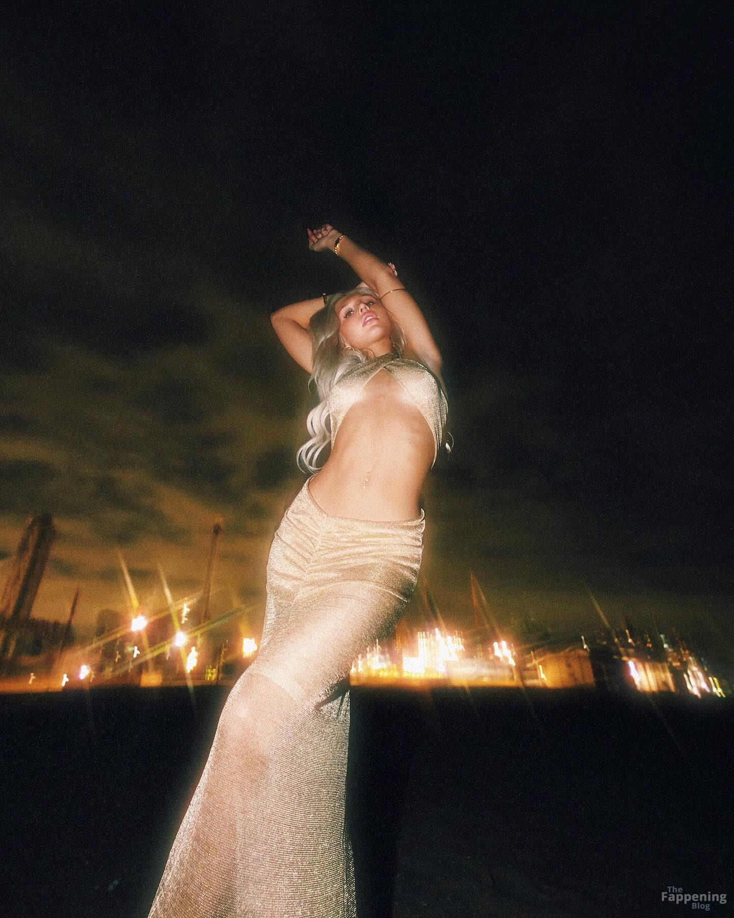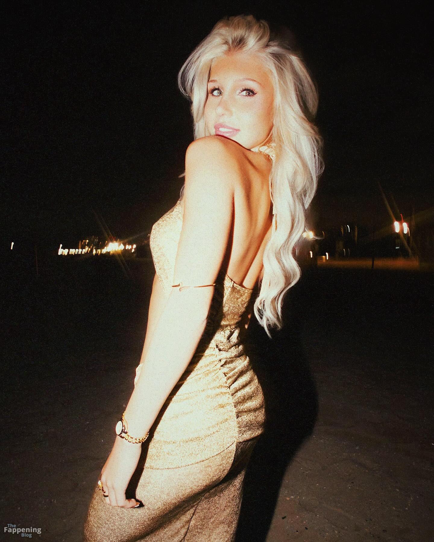 Бруклин Райли сияет в золотом платье на пляже ночью. Посмотрите её фотосессию в социальных сетях ниже.