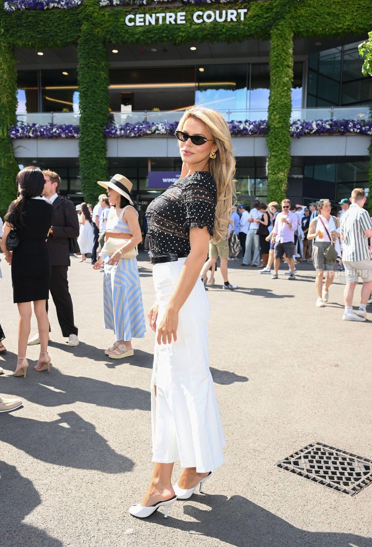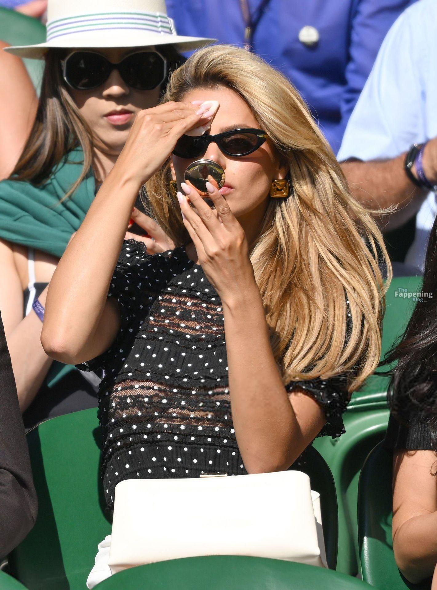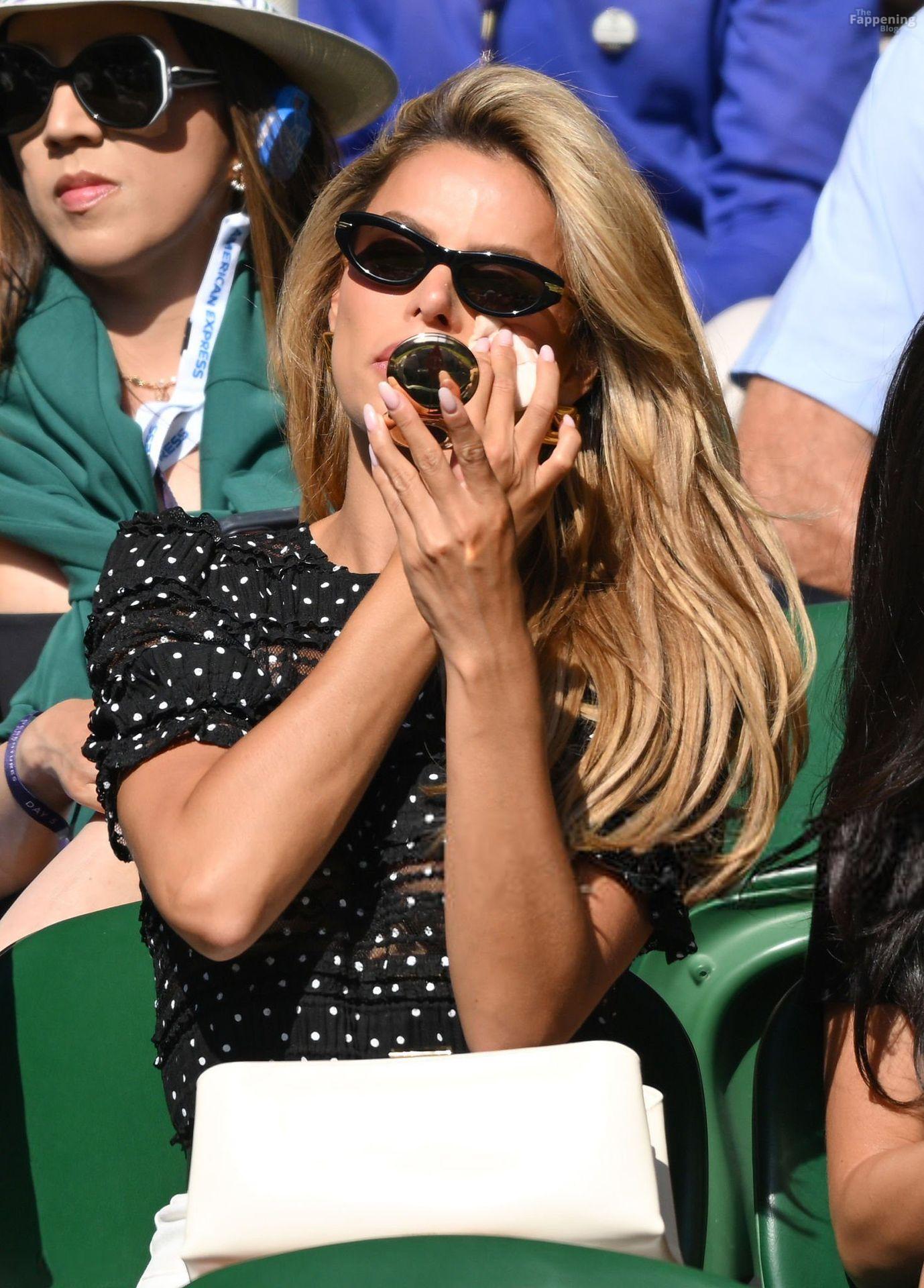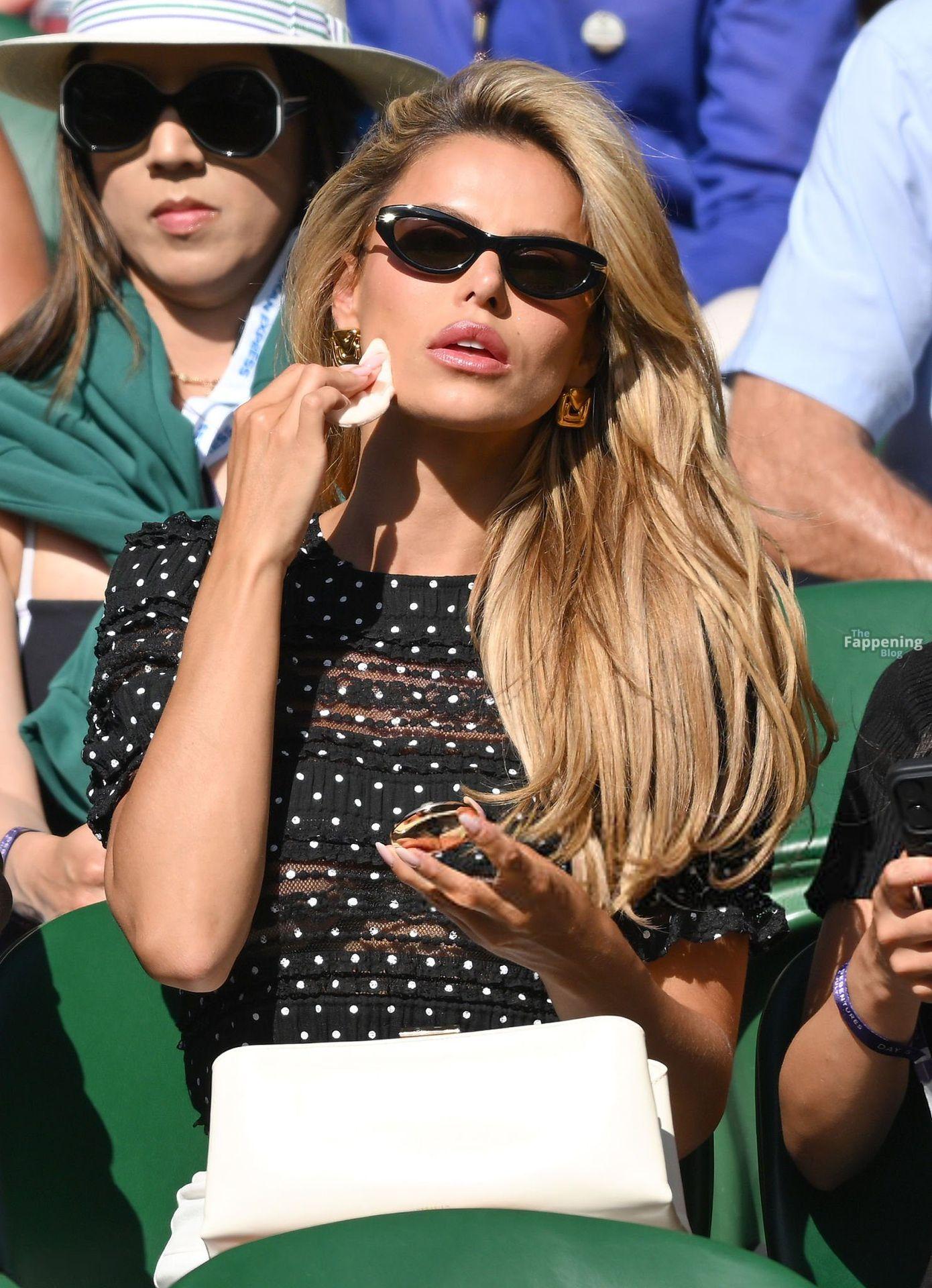 Модель Брукс Надер устроила настоящий фурор в пятый день Уимблдона, появившись в прозрачной чёрной блузке в горошек без нижнего белья.
