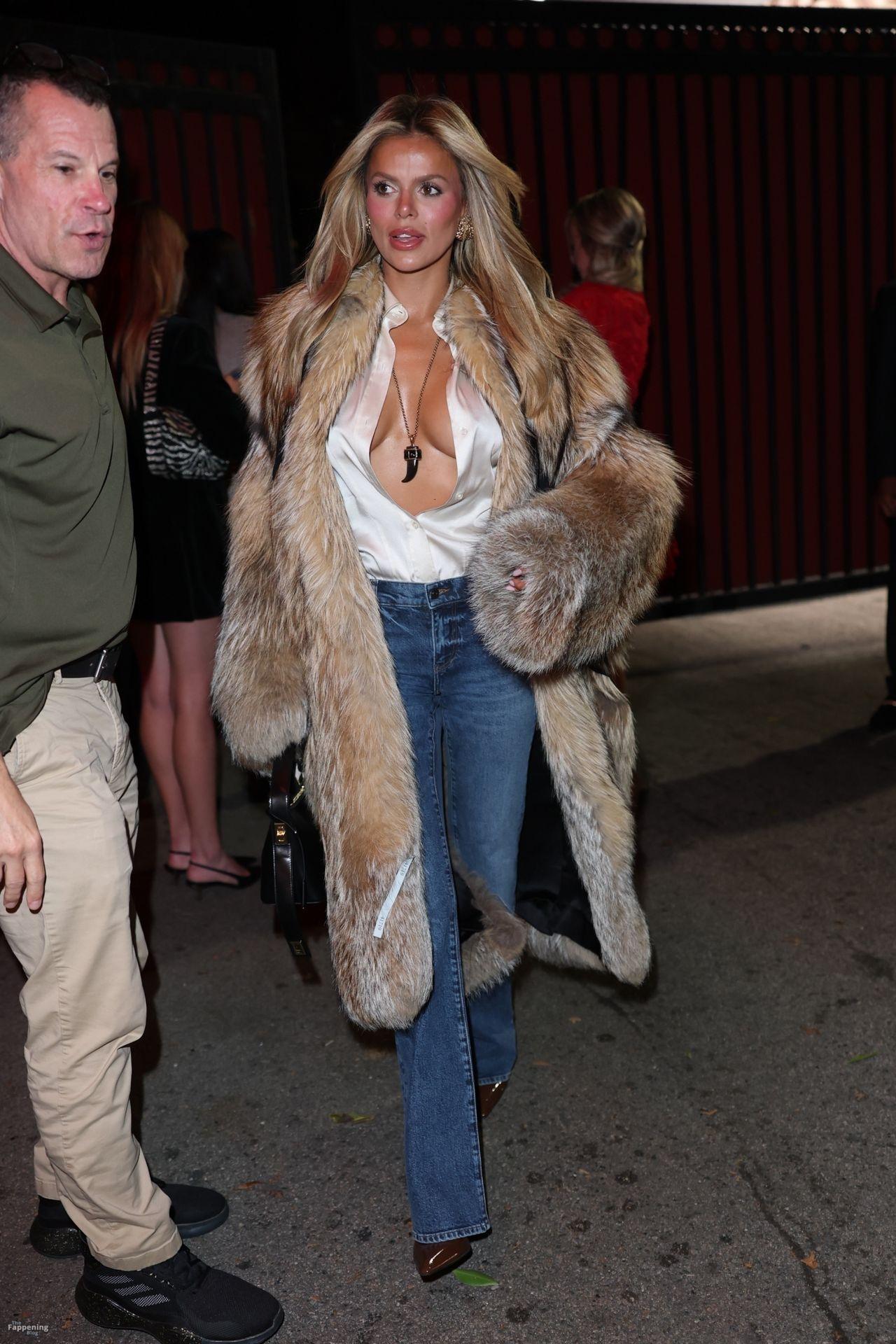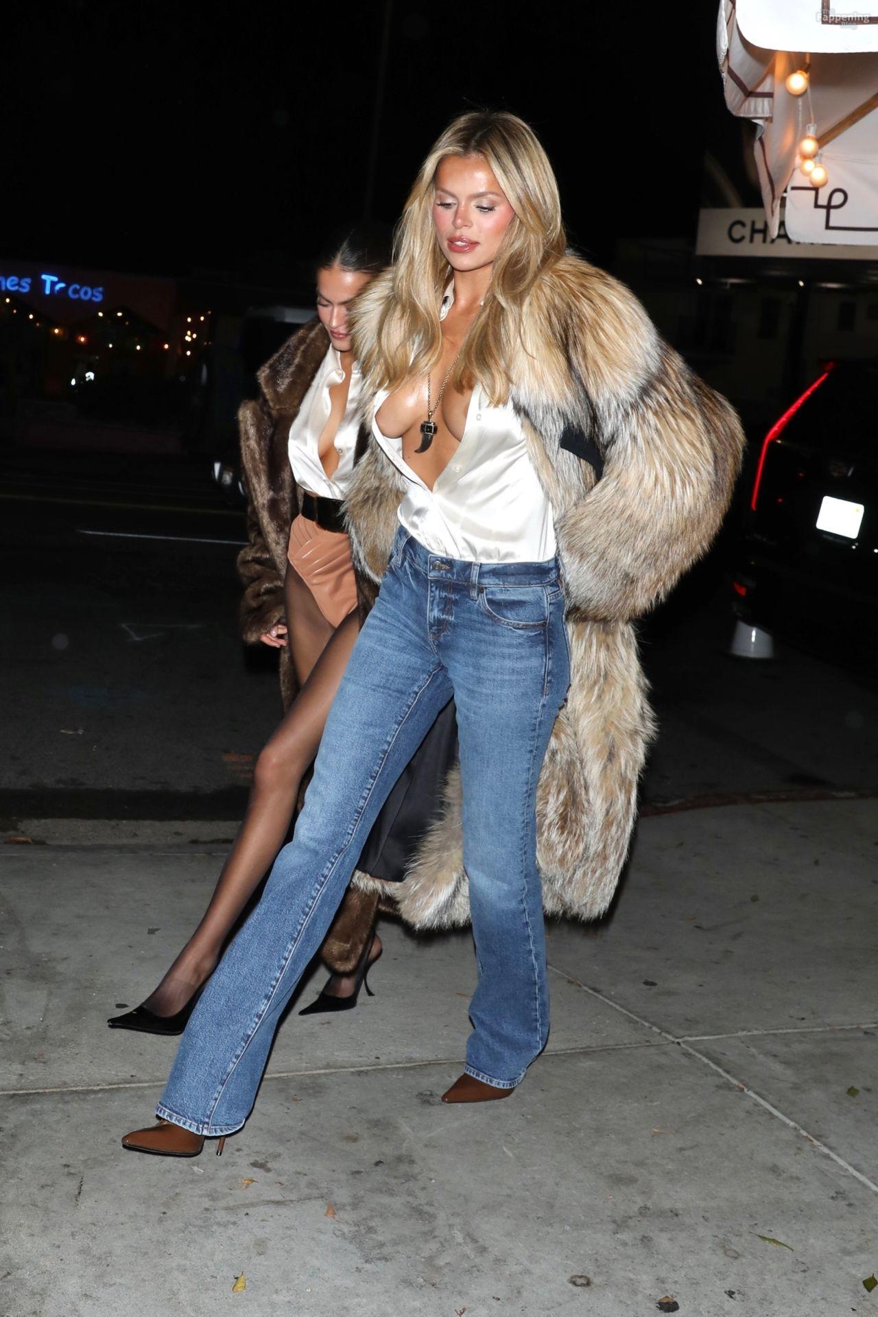Американская модель была в Голливуде, в шубе из искусственного меха, рискованной атласной блузке и джинсах с высокой талией. Она выглядела потрясающе всю ночь, но резкое движение чуть не превратило это в полный сбой гардероба.