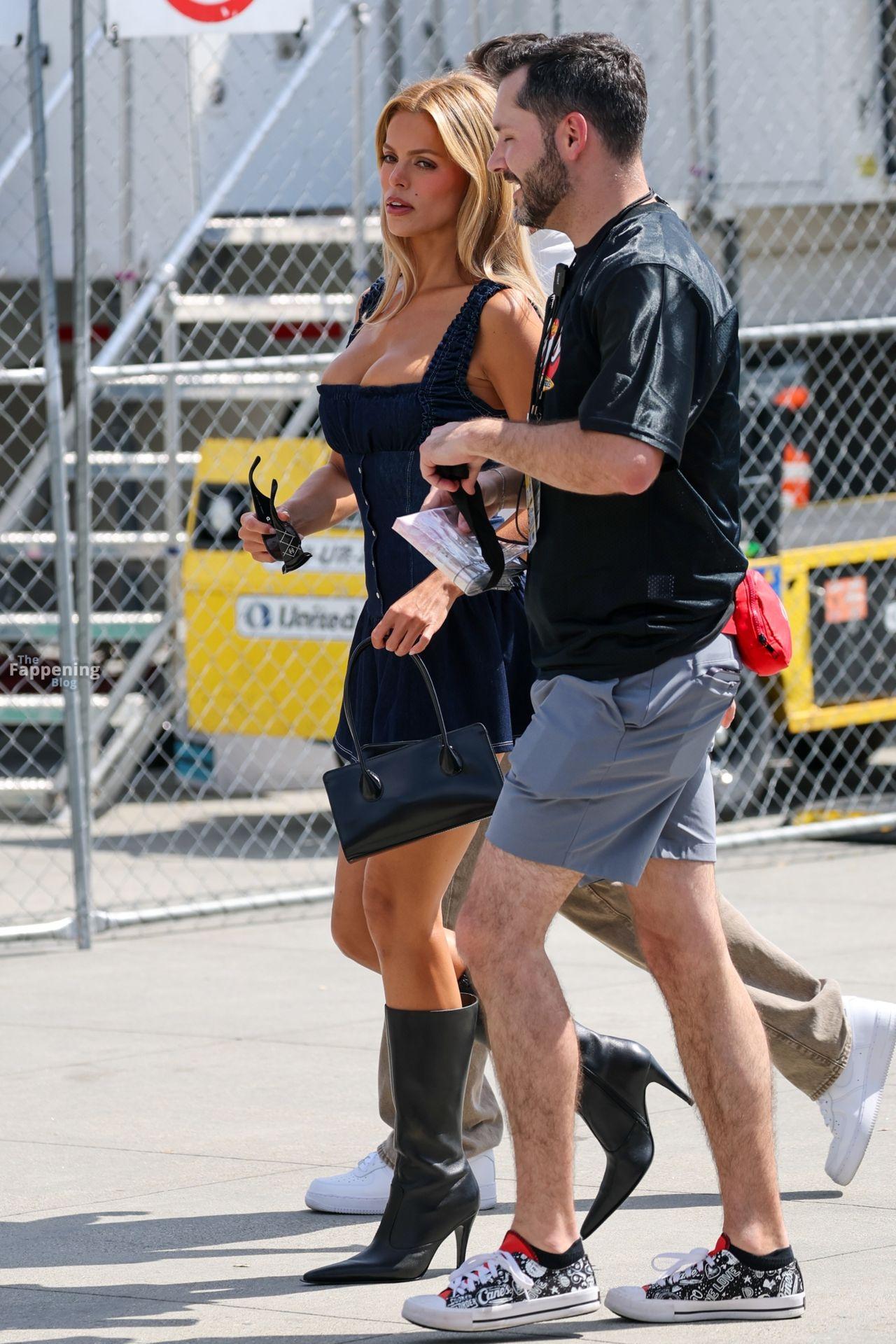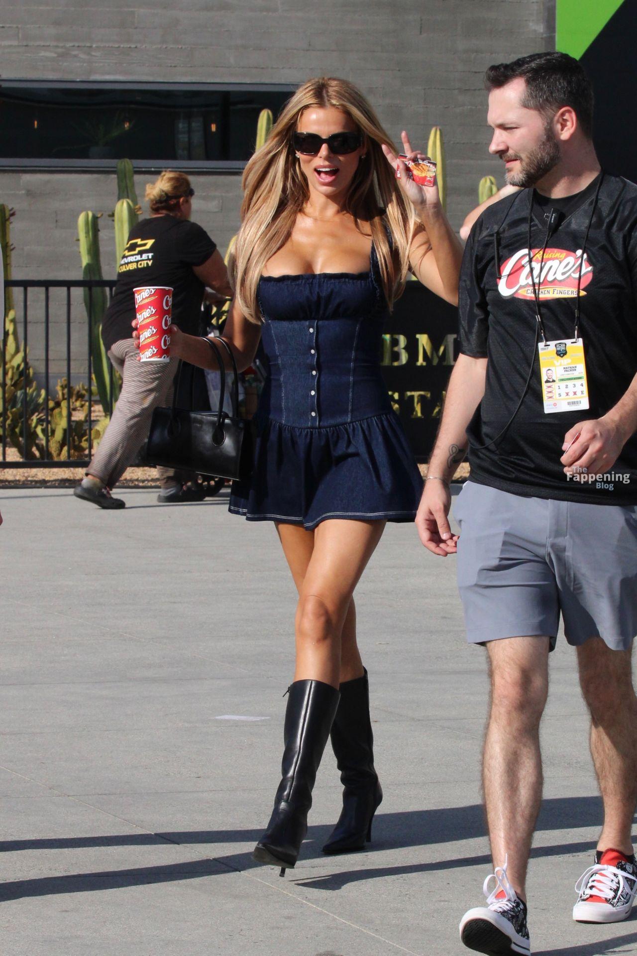 Брукс Надер замечена покидающей игру Fanatics Flag Football, выходя без трусиков в джинсовом коротком платье в сочетании с длинными черными ботинками и солнцезащитными очками, направляясь после мероприятия.