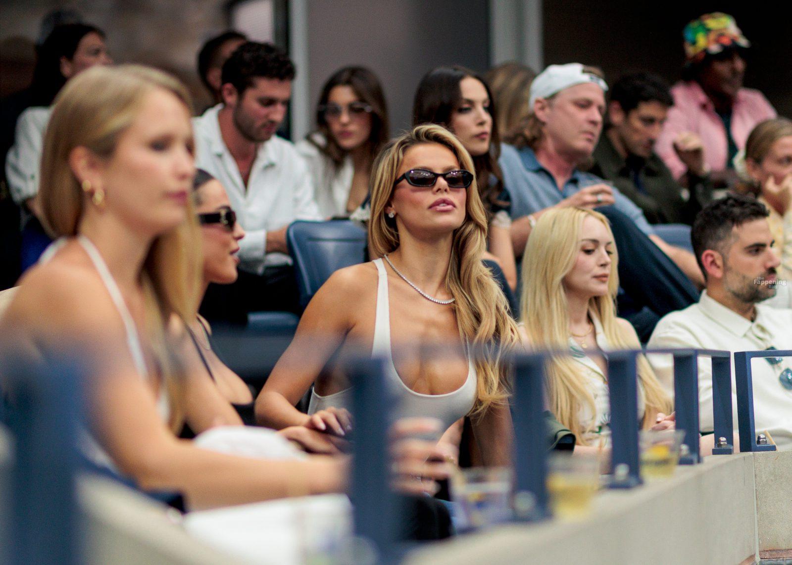 Модель и звезда реалити-шоу Брукс Нейдер появилась без бюстгальтера на Открытом чемпионате США, надев майку с глубоким вырезом, которая чуть не привела к оголению прямо у корта.