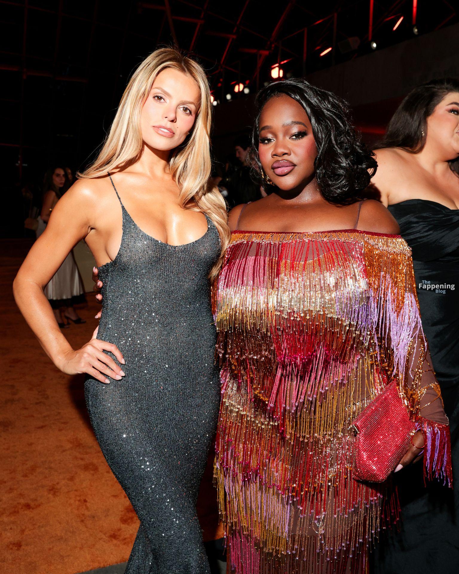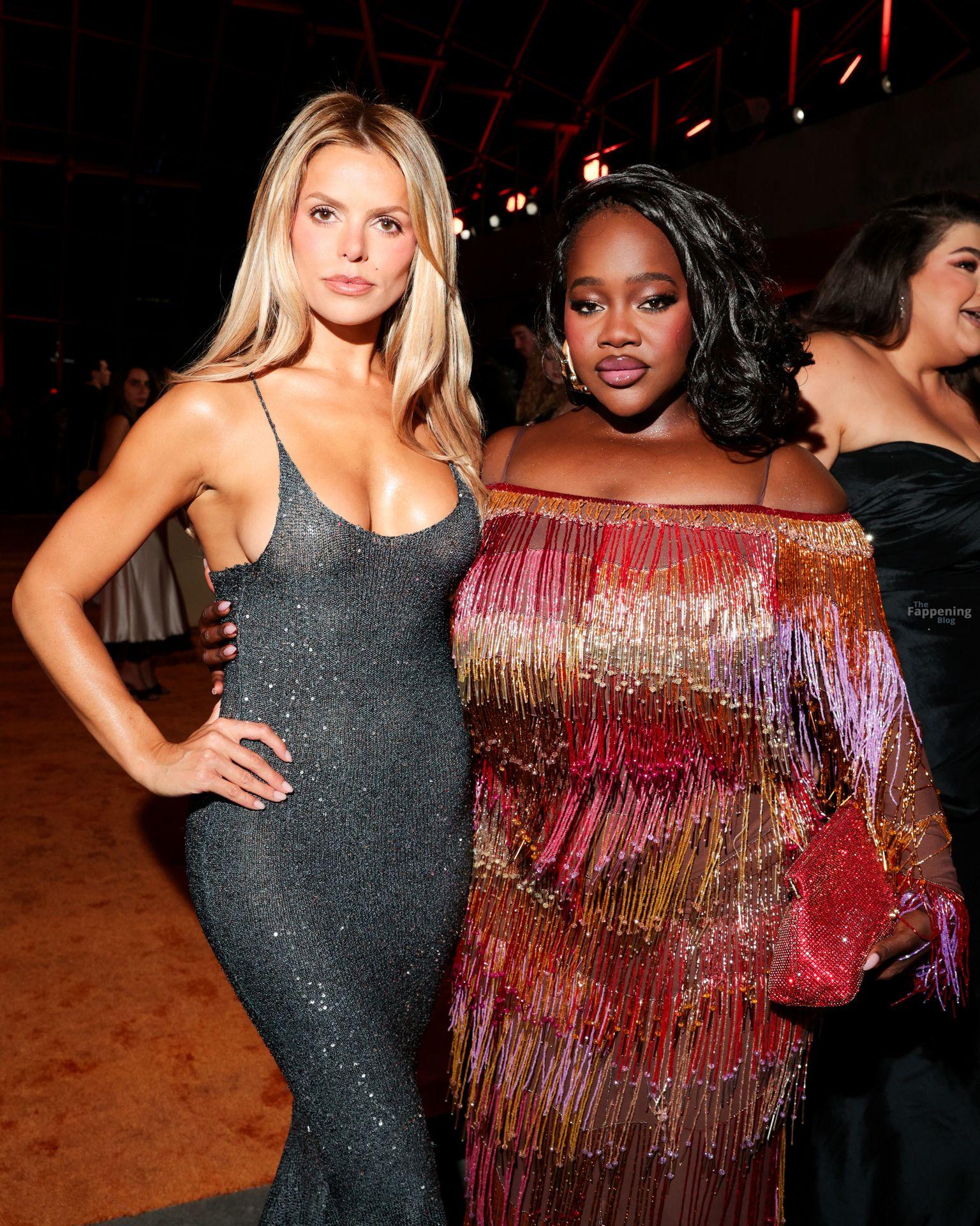 Brooks Nader идет без бюстгальтера в обтягивающем вязаном платье, посещая мероприятие Clarins Celebrates Extra-Firming Energy с The Night Of Extra на Dolby Terrace в Академическом музее кино в Лос-Анджелесе, Калифорния.