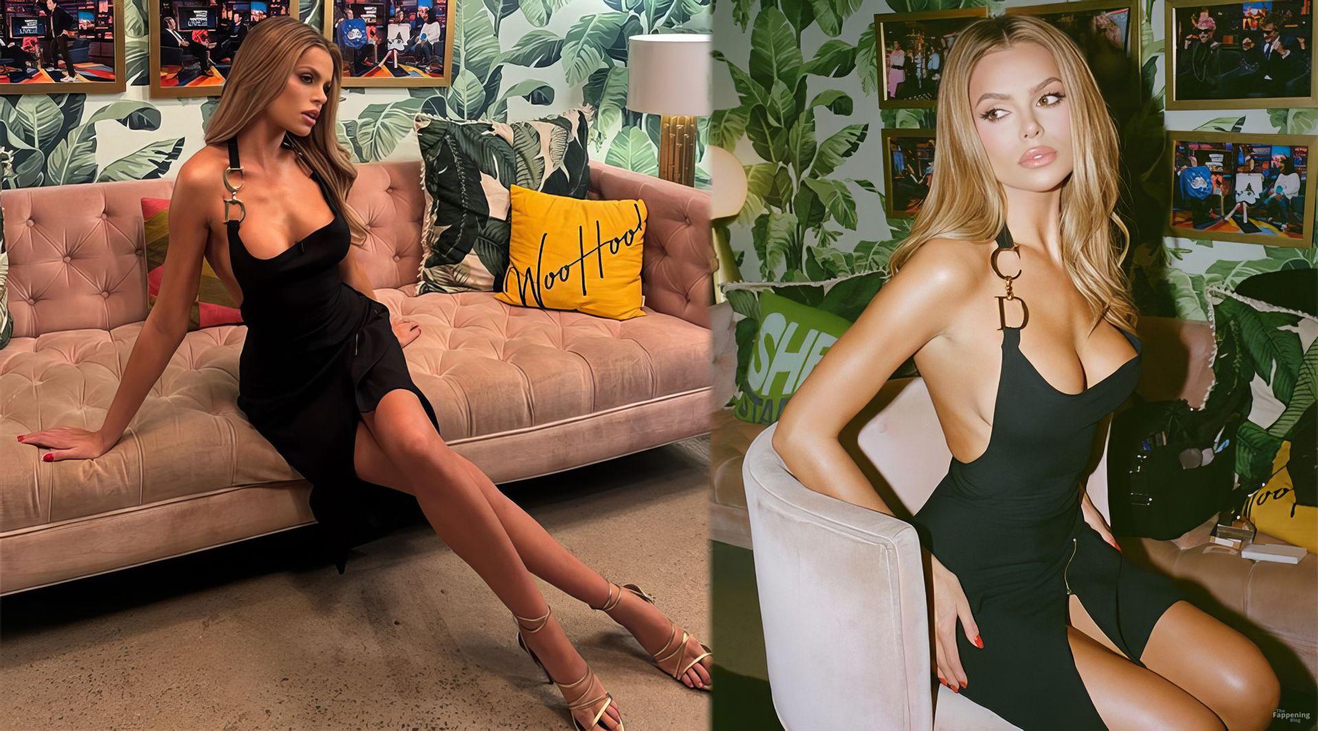 Брукс Надер позирует без бюстгальтера, в черном платье, показывая свои сексуальные груди и ноги в горячей фотосессии для социальных сетей.