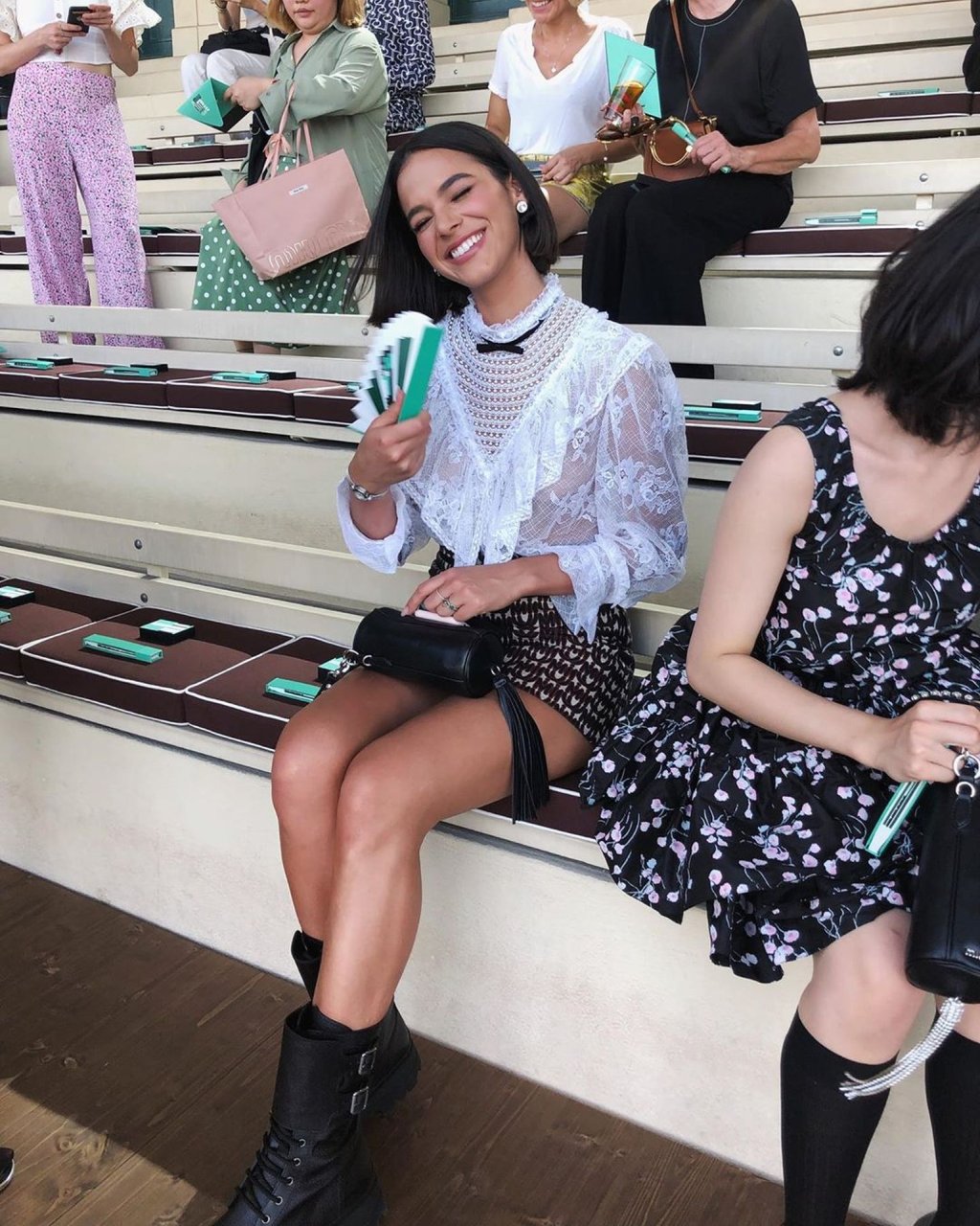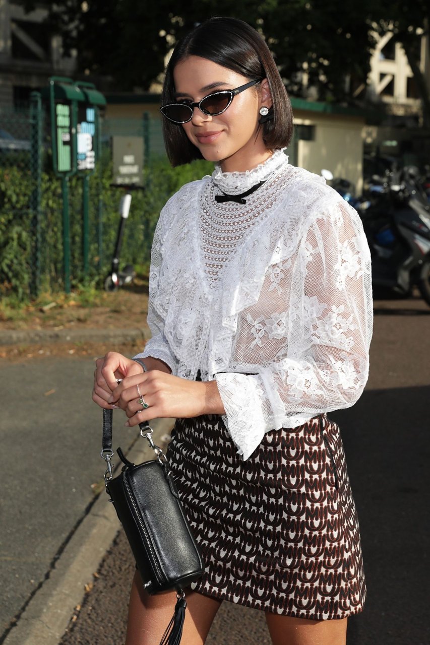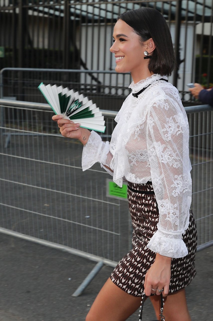 Длинноногая модель Бруна Маркезине была замечена в прозрачной белой блузке, через которую просвечивала ее сосок, покидая показ Miu Miu Resort 2020 во время Недели высокой моды в Париже, 29.06.2019.