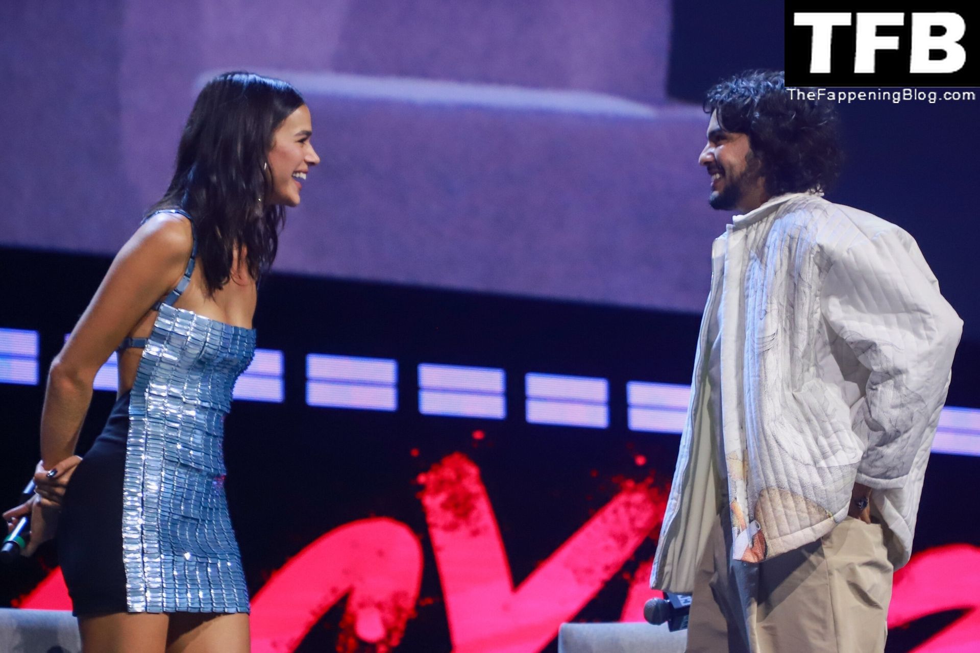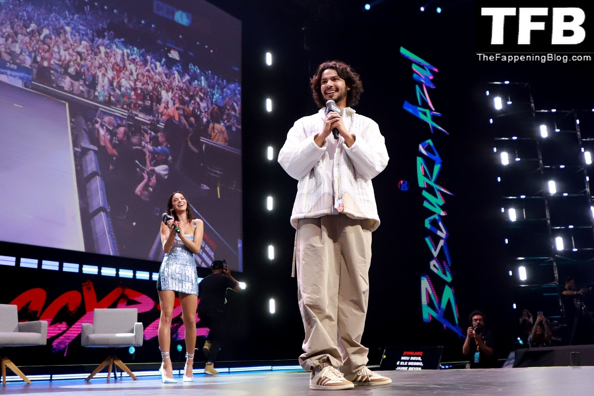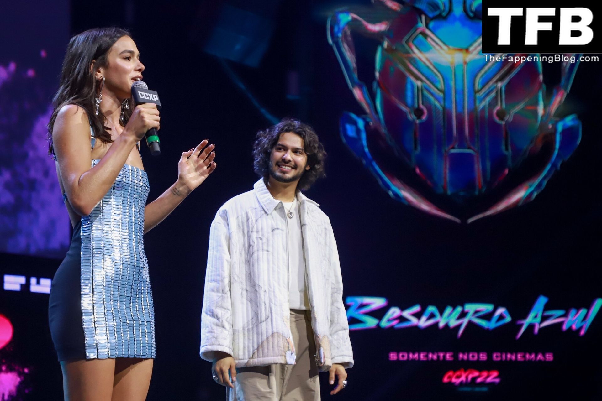 Бразильская актриса Бруна Маркезине и американский актер Ксоло Маридуэна неожиданно появились на CCXP22, чтобы продвигать «Голубого Жука» на сцене Thunder Stage CCXP 22, одном из крупнейших гиковских мероприятий в мире, которое возвращается после двух виртуальных изданий из-за пандемии Covid-19, 03.12.2022. Ярмарка проходит до 4 декабря в Sao Paulo Expo.