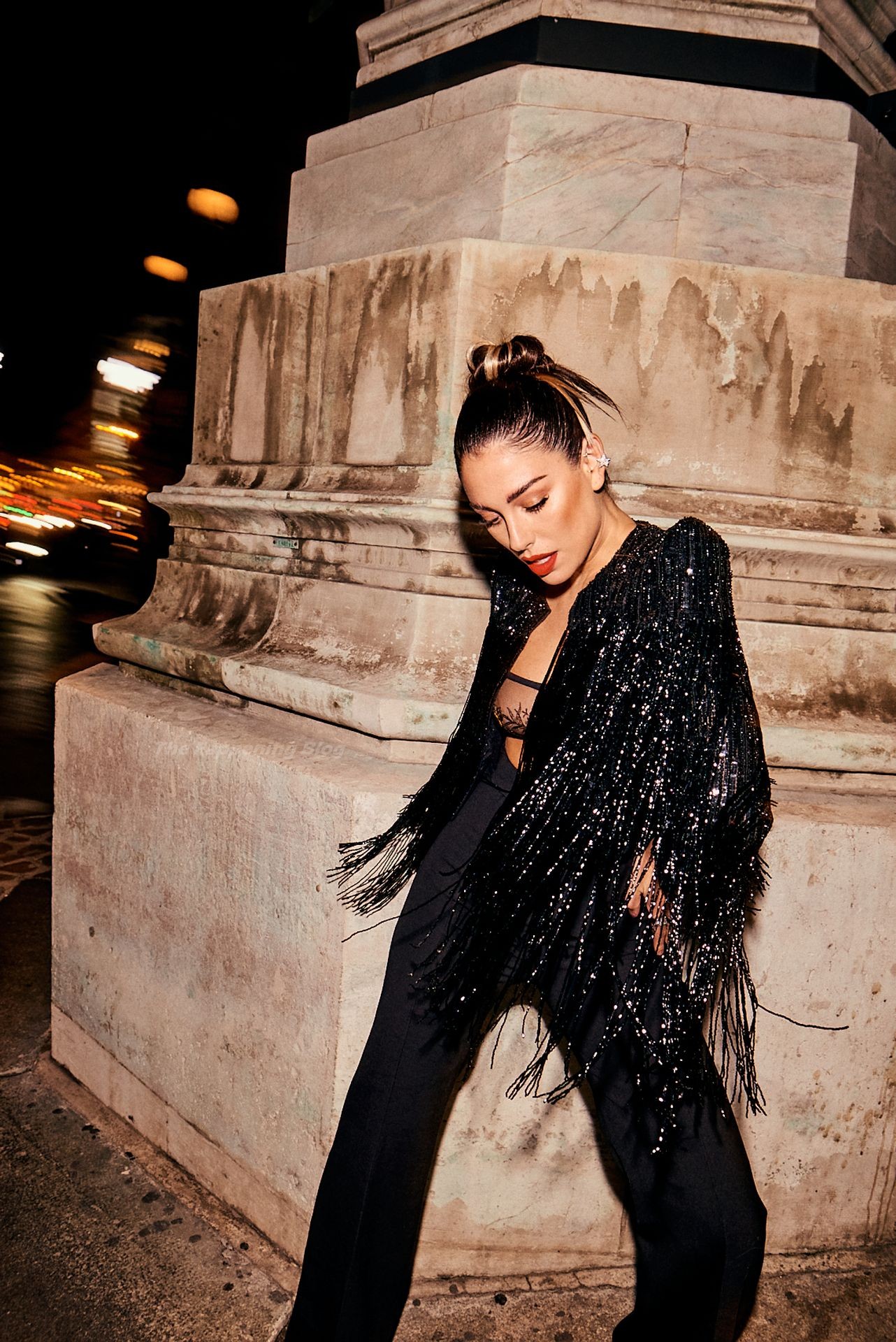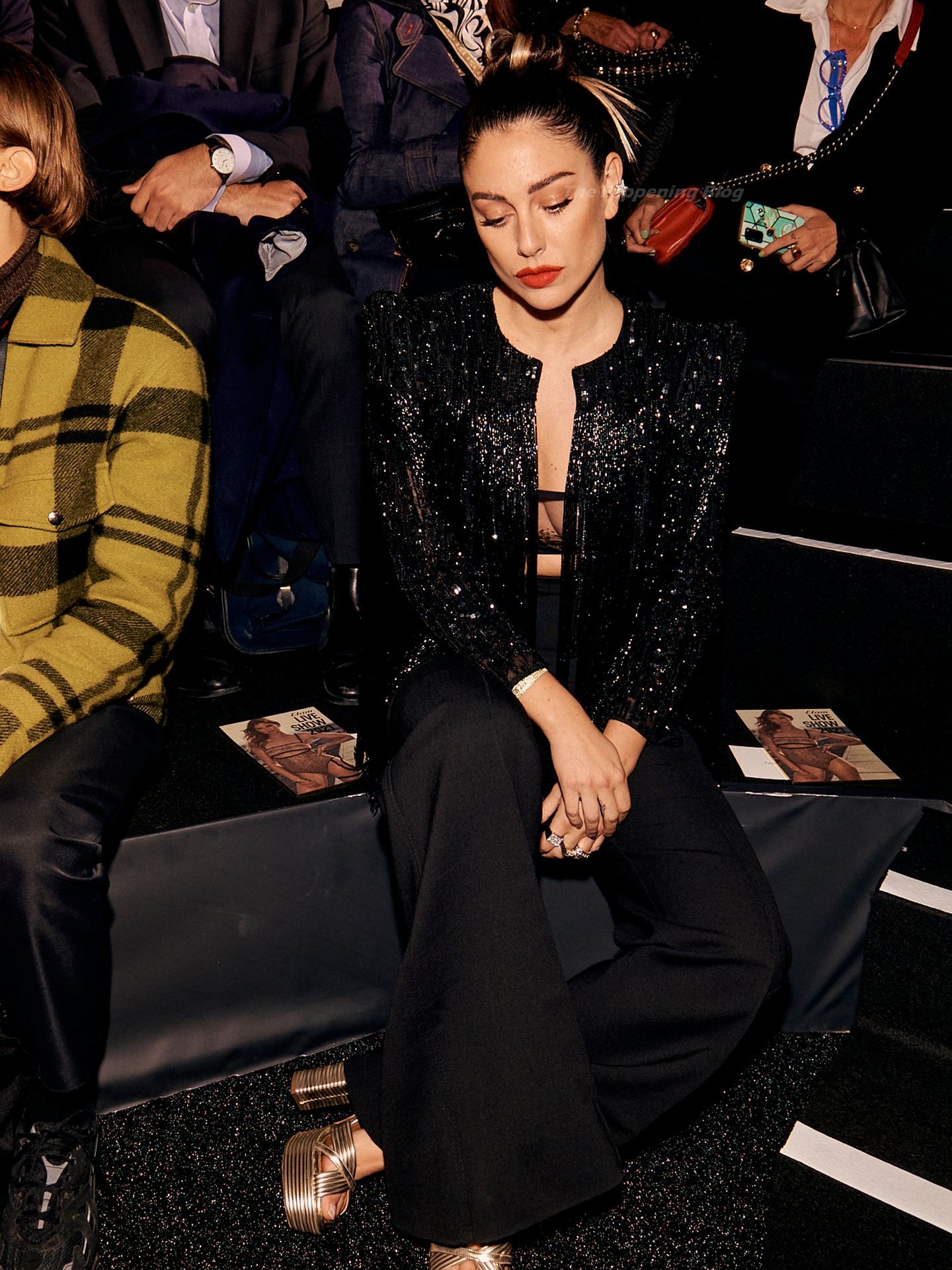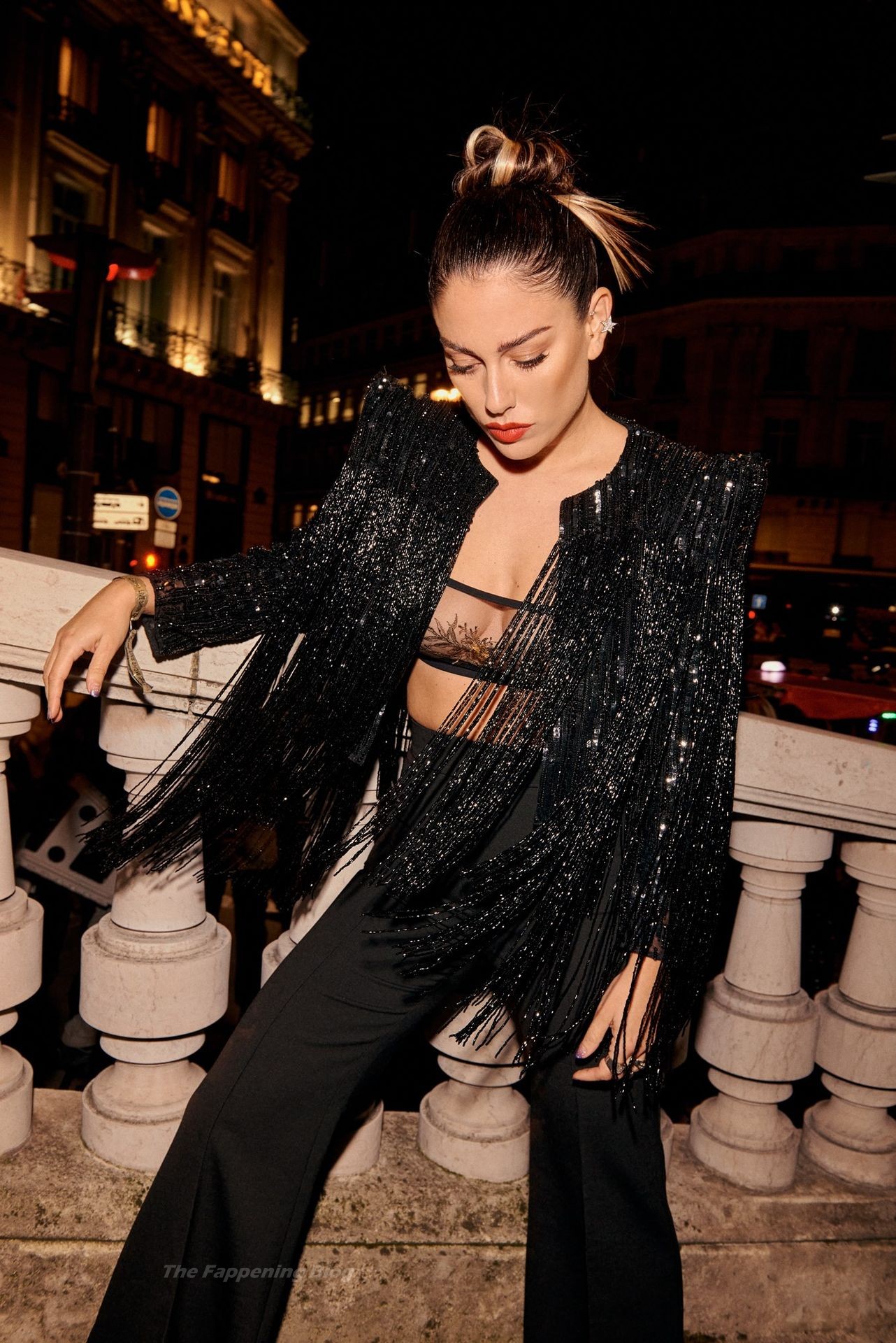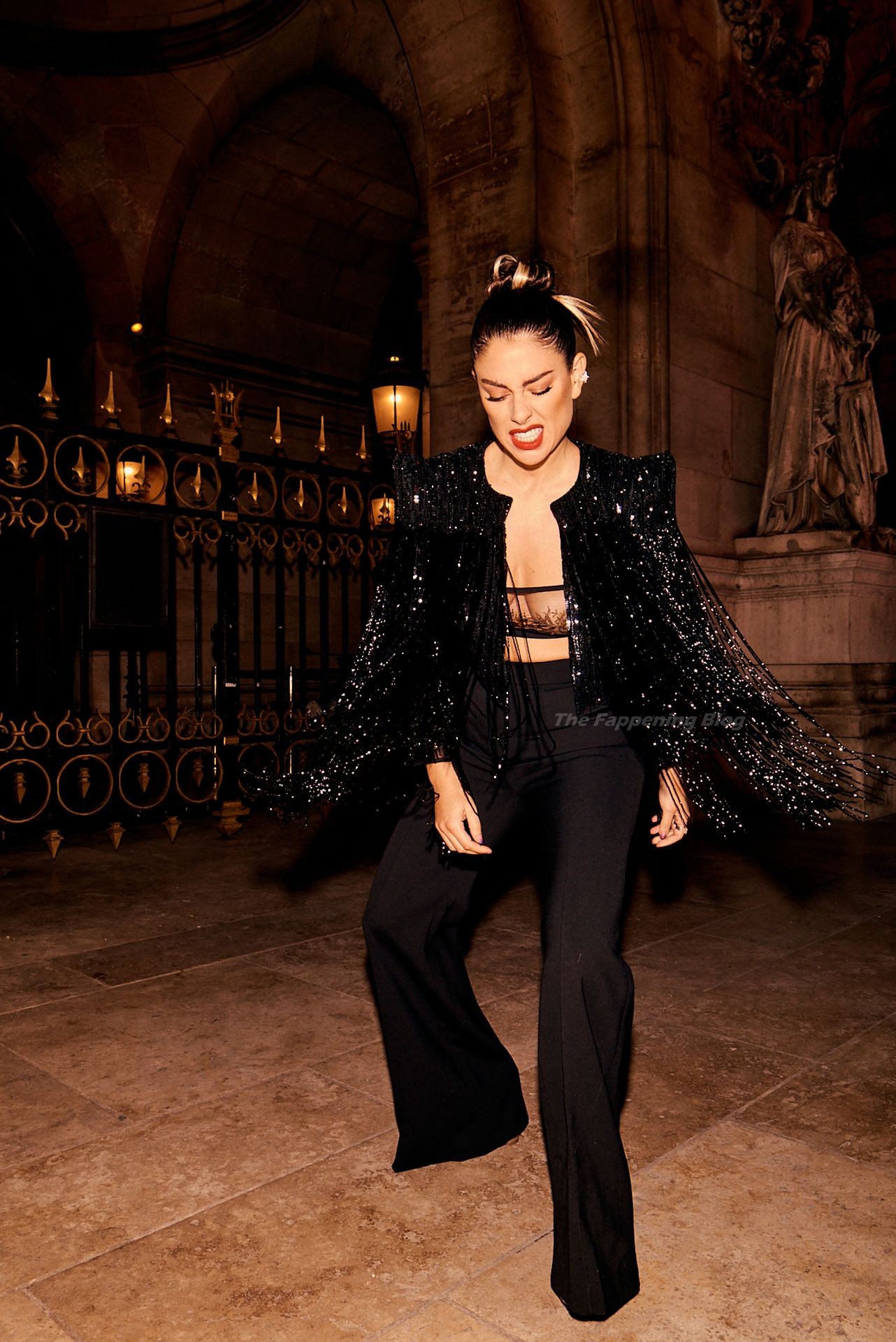 Испанская актриса Бланка Суарес позирует на модном показе бренда нижнего белья Etam в Париже, демонстрируя свои обнажённые груди, 10/06/2021.