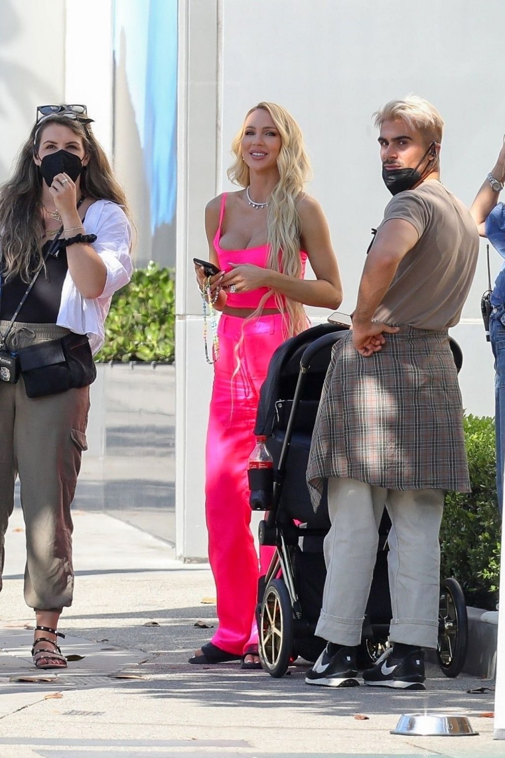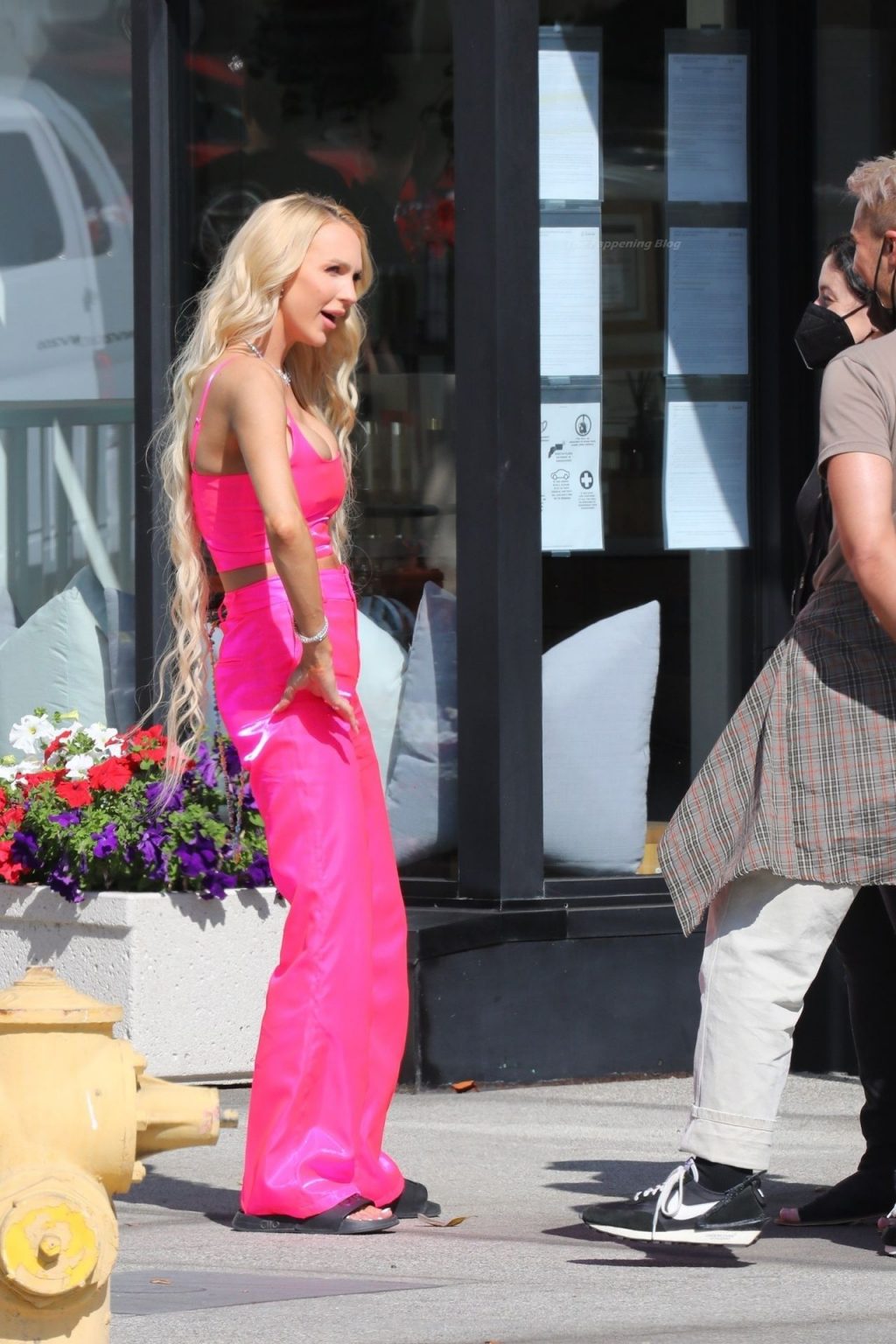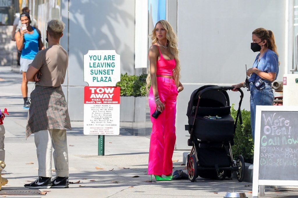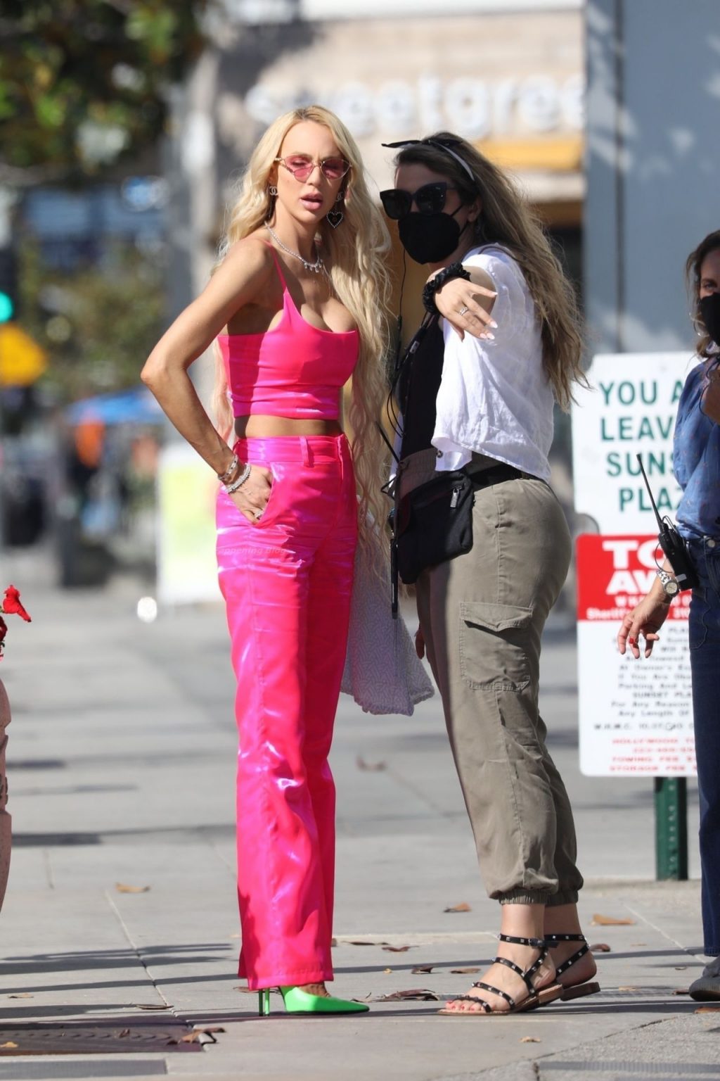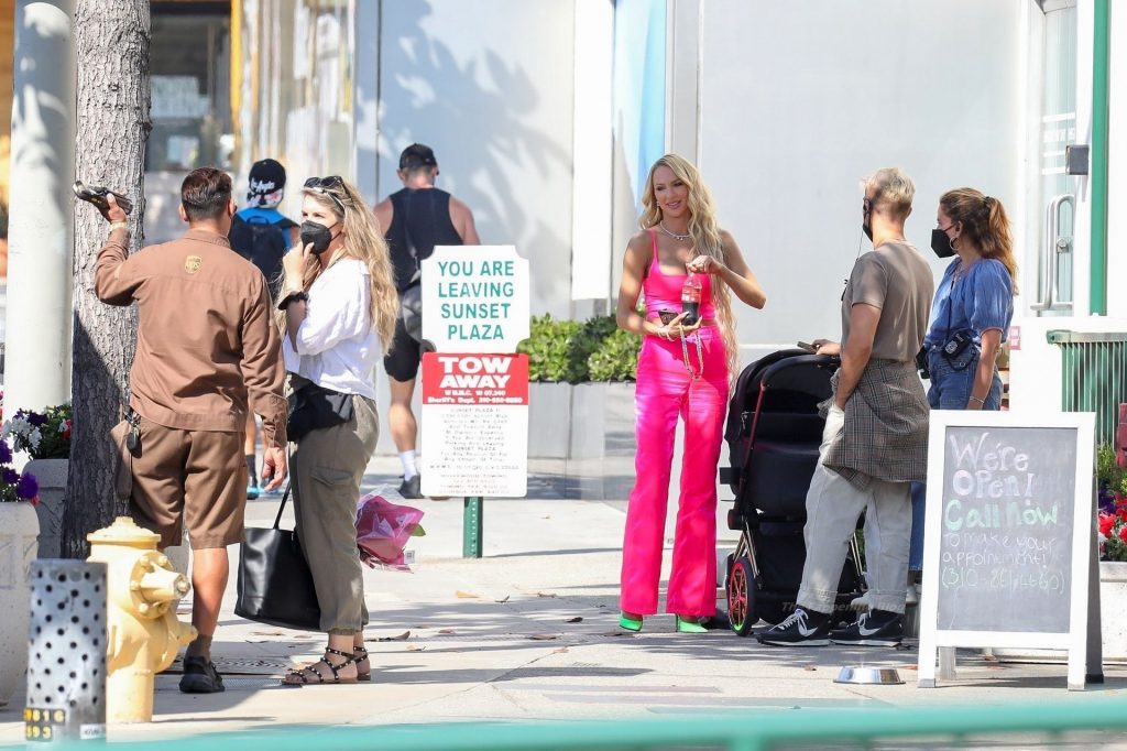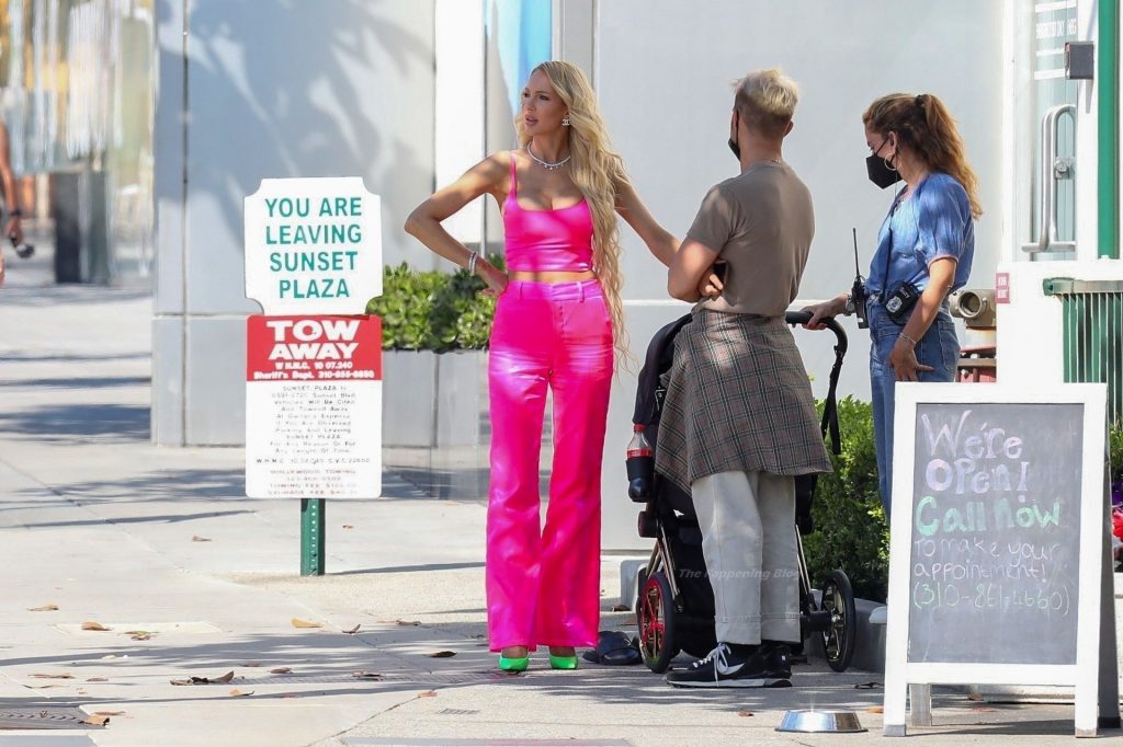 Кристин Куинн снимает сцену для своего телешоу «Selling Sunset» на Sunset Plaza в Вест-Голливуде, 03.06.2021.