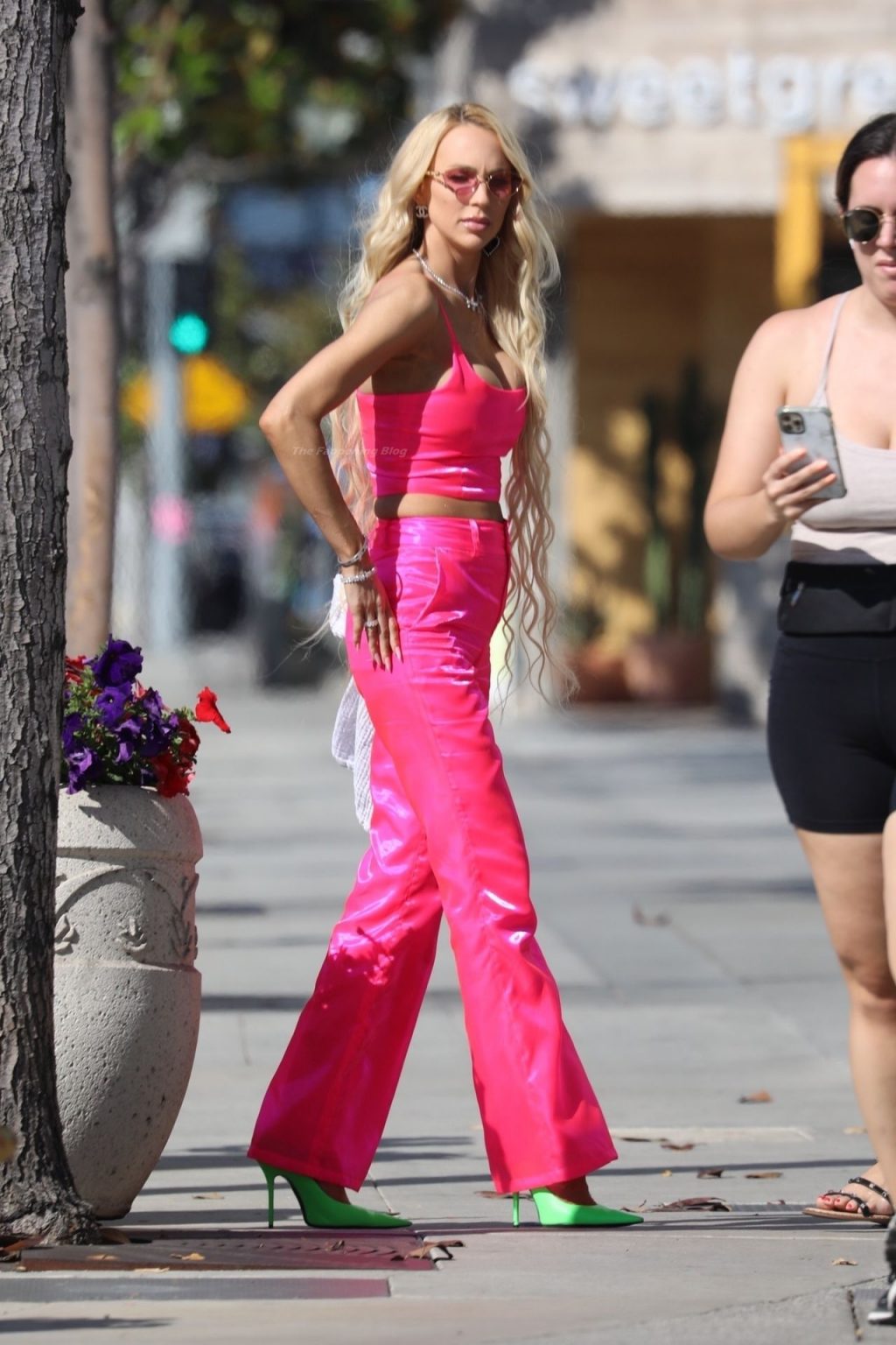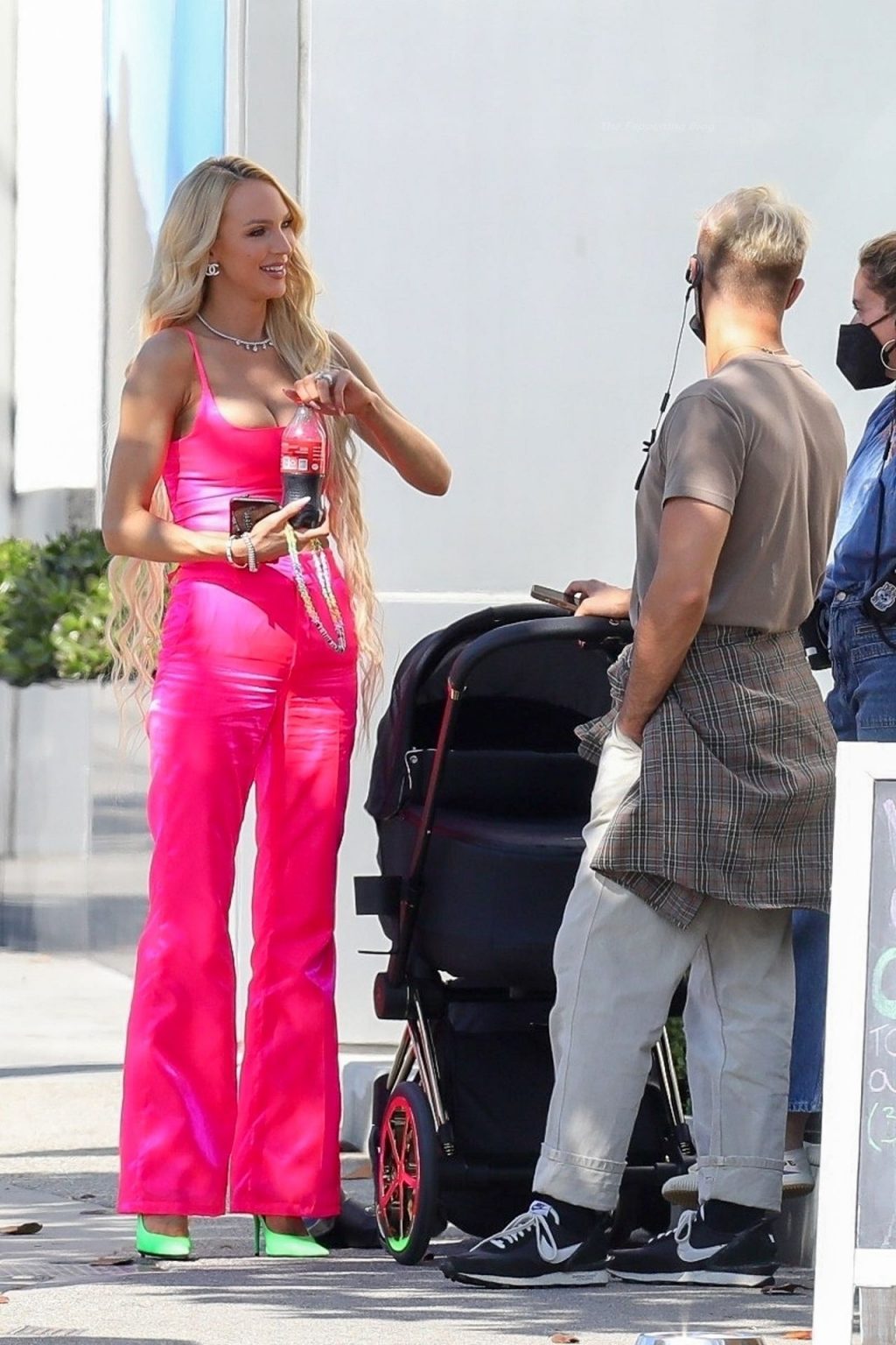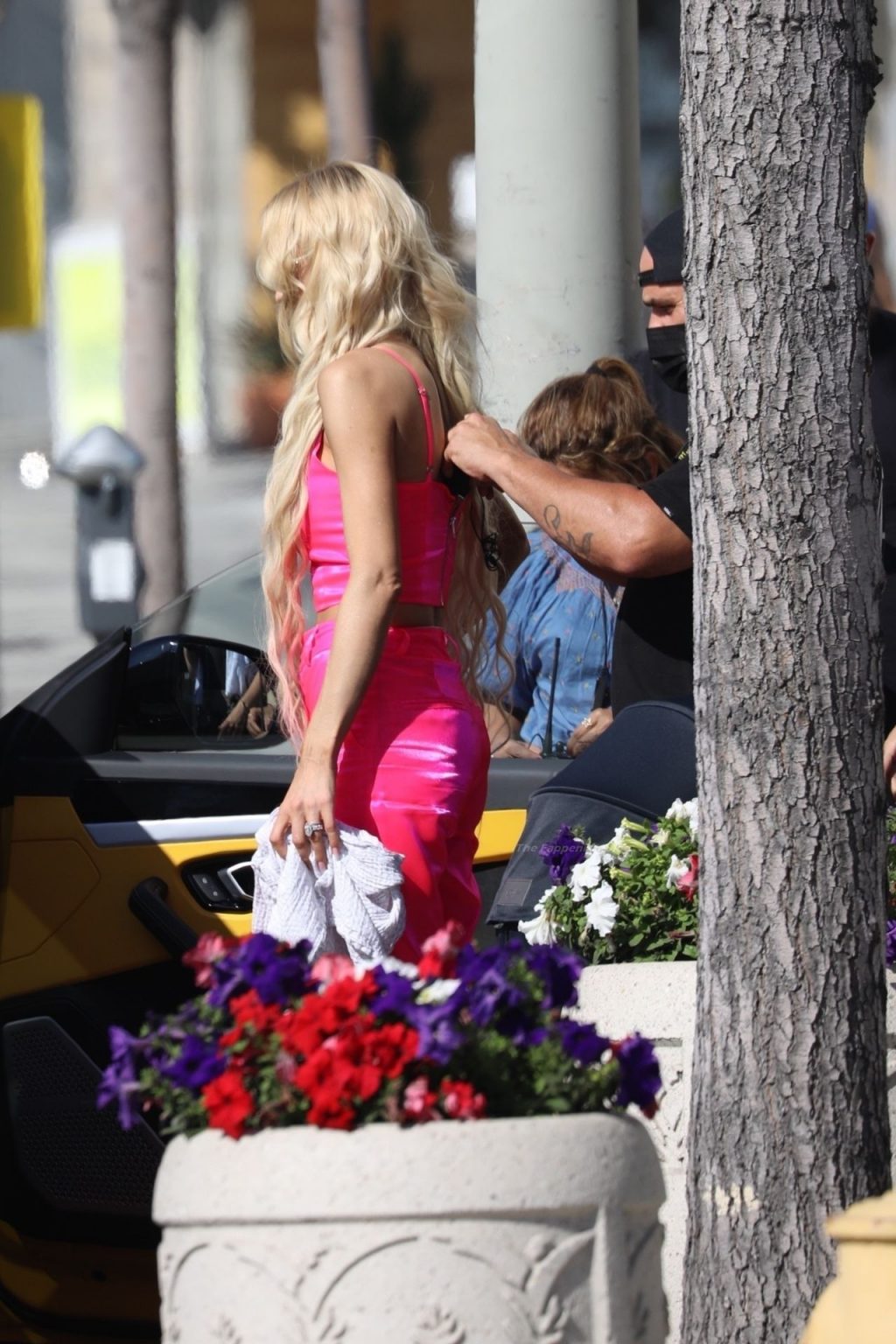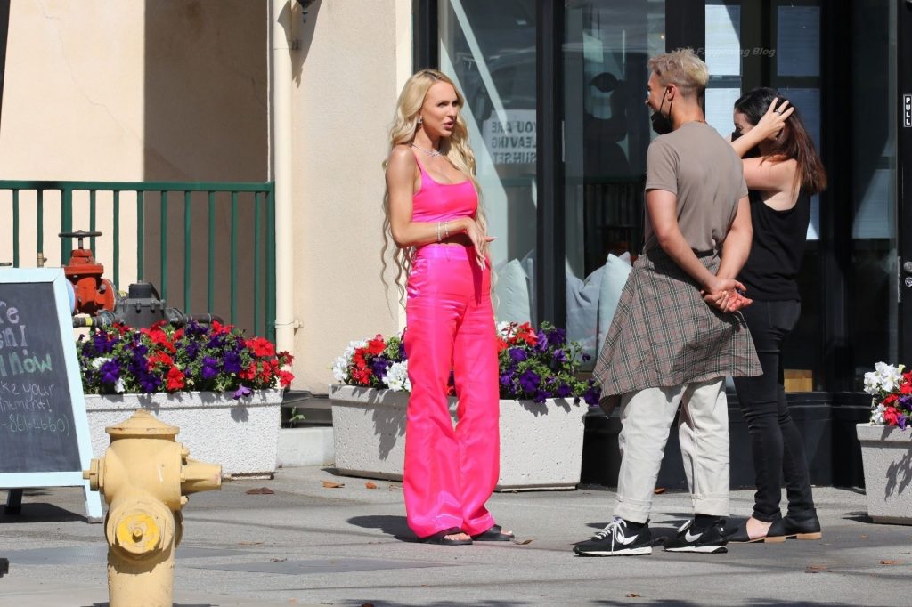 Кристин Куинн снимает сцену для своего телешоу «Selling Sunset» на Sunset Plaza в Вест-Голливуде, 03.06.2021.