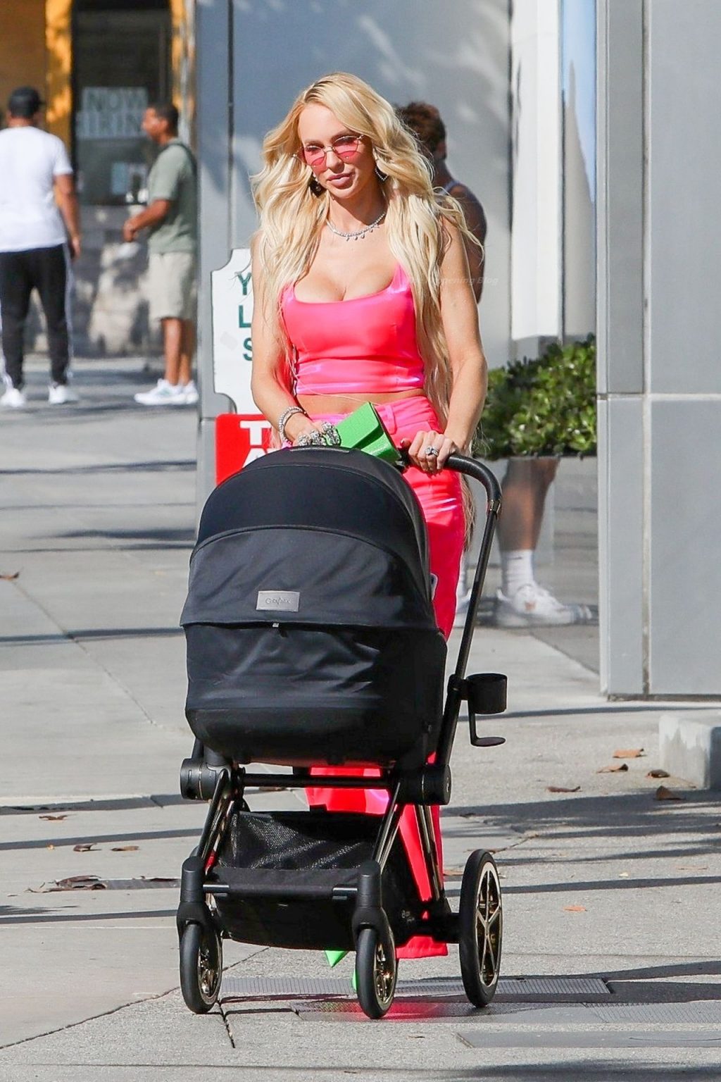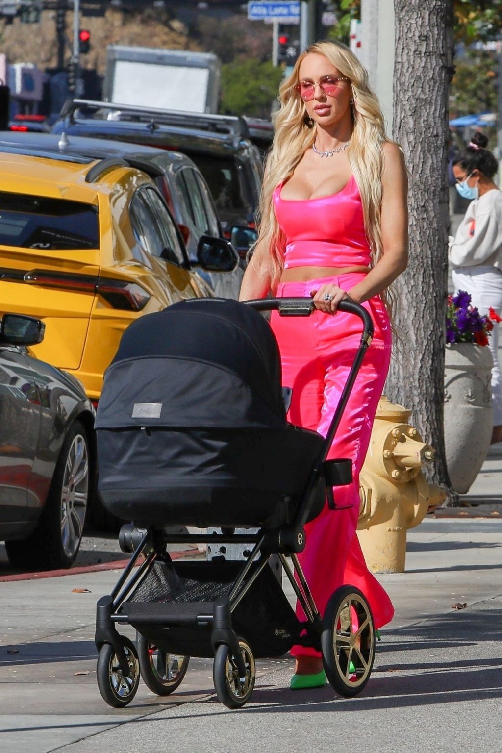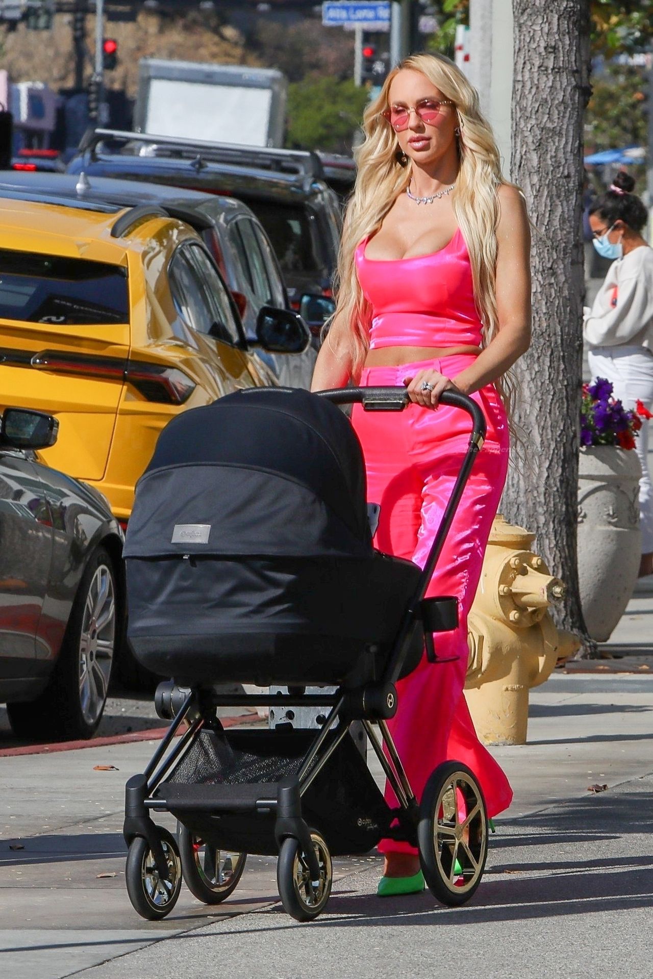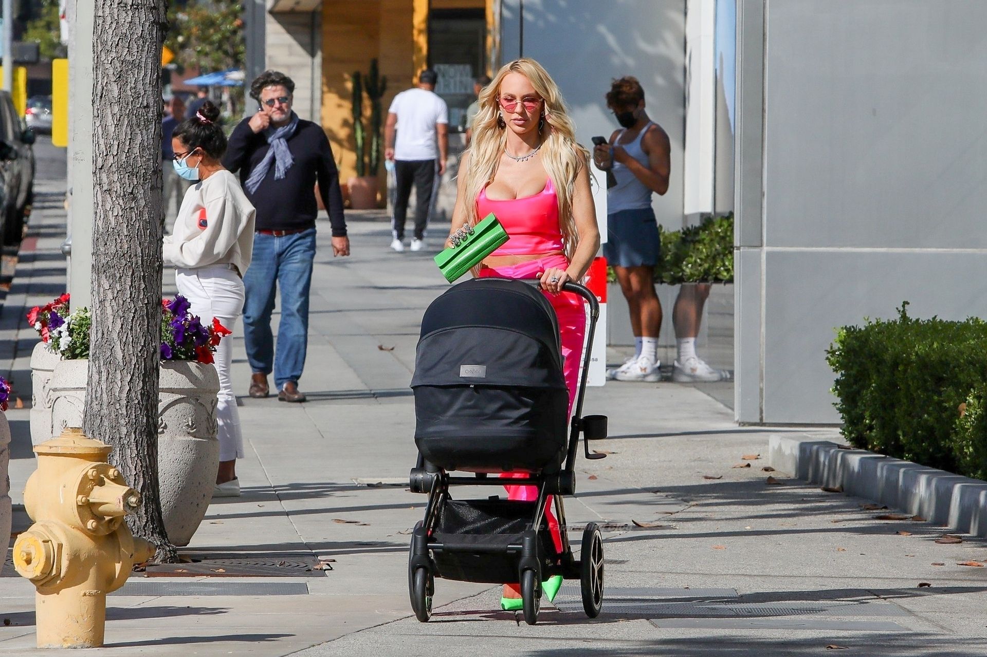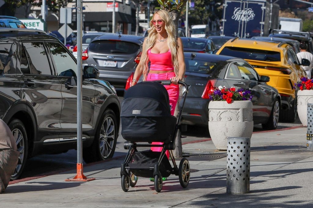 Кристин Куинн снимает сцену для своего телешоу «Selling Sunset» на Sunset Plaza в Вест-Голливуде, 03.06.2021.