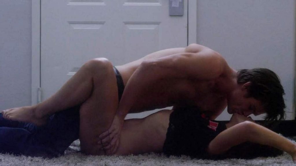 Смотрите слегка обнаженную сцену с Кейтлин Лихи из фильма “Afterburn/Aftershock” (2017). Кейтлин начинает дурачиться с парнем, и её рубашка приподнимается, обнажая чёрный бюстгальтер. Когда они оказываются на полу, она остаётся в одних трусиках, а парень срывает их. Затем он, кажется, занимается с ней сексом в джинсах.