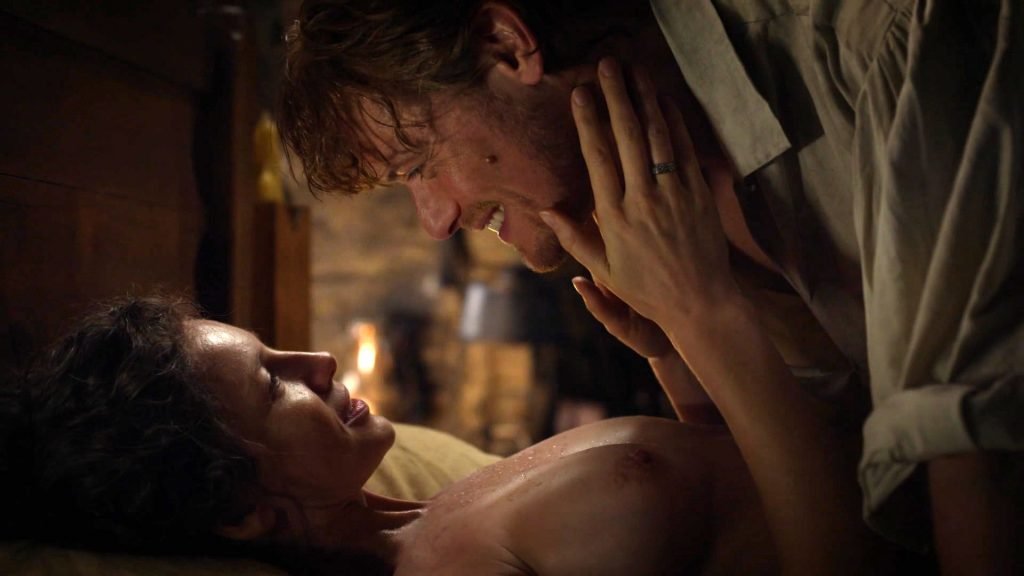 Мы быстро видим каждую грудь Кейтрионы, когда она в ванне, но когда её наконец переносят на кровать её любовник, она демонстрирует свою восхитительную грудь.