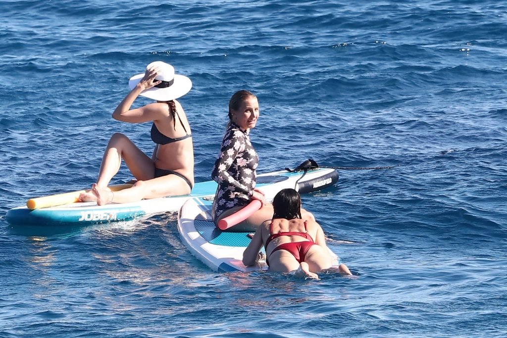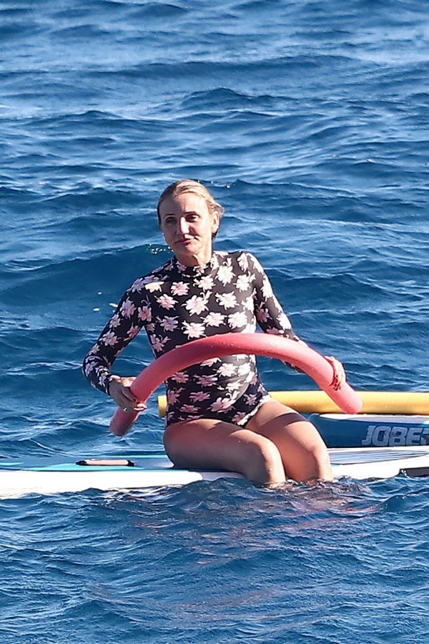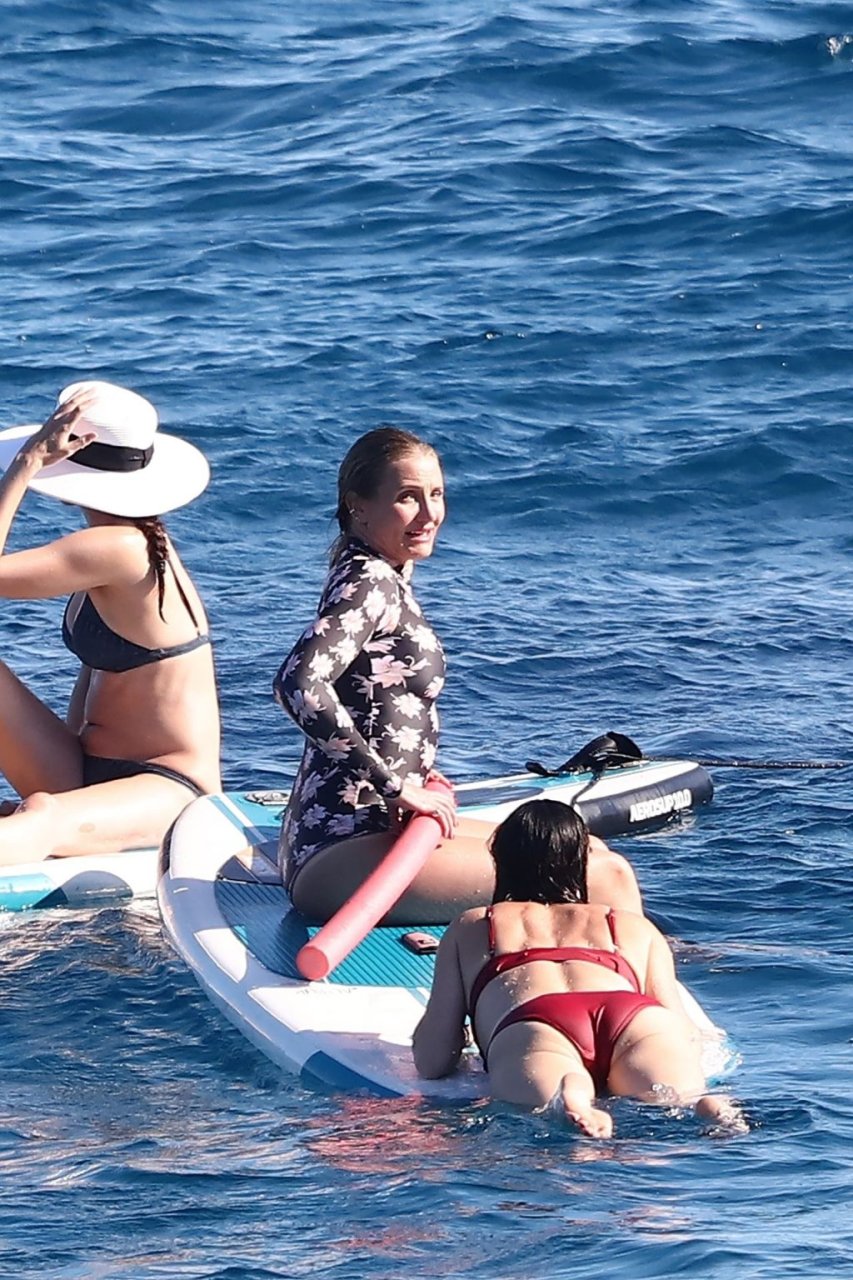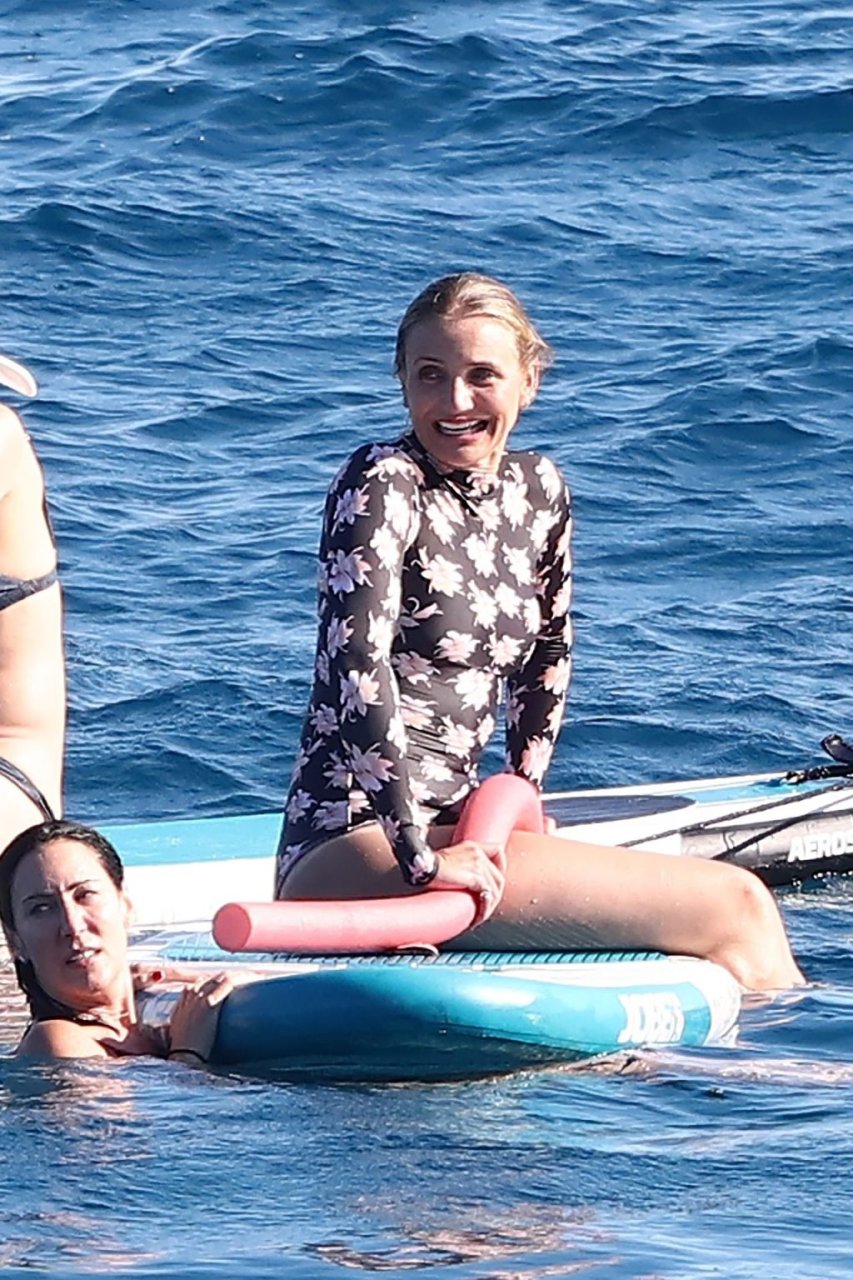 Камерон, которой в этом месяце исполняется 47 лет, не могла скрыть радость, когда её видели на моторизованной доске для серфинга вместе с Бенджи, а также смеющейся с друзьями на досках во время их дневной прогулки.