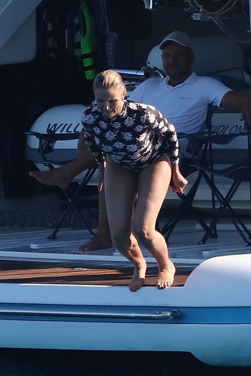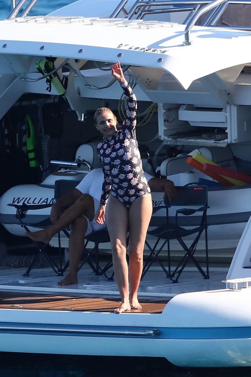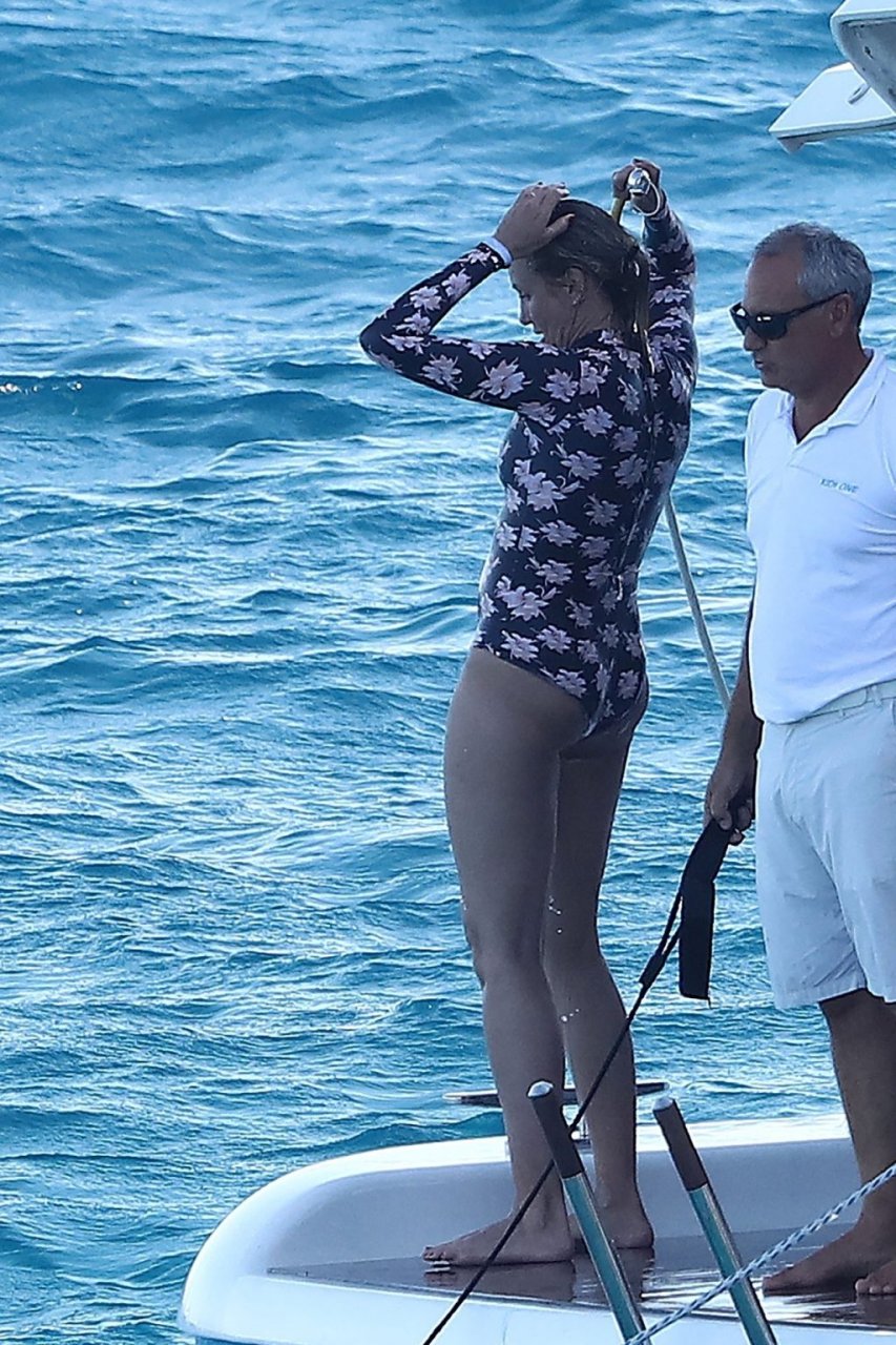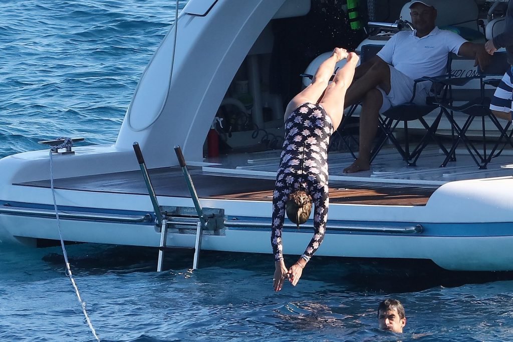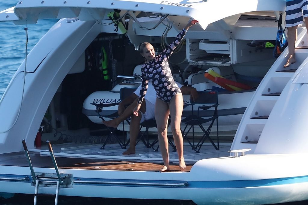Камерон Диас и её муж Бенджи Мэдден наслаждаются отпуском в Сен-Тропе, 08.08.2019. Звезда “Ангелов Чарли” была замечена, как ныряла в Средиземное море в цветочном цельном купальнике, который подчёркивал её фантастическую фигуру.