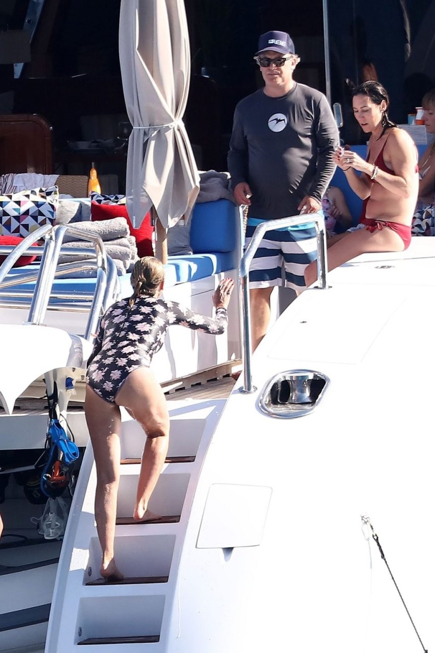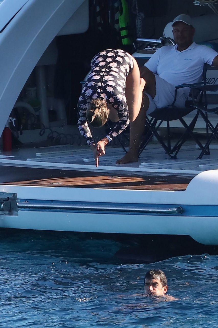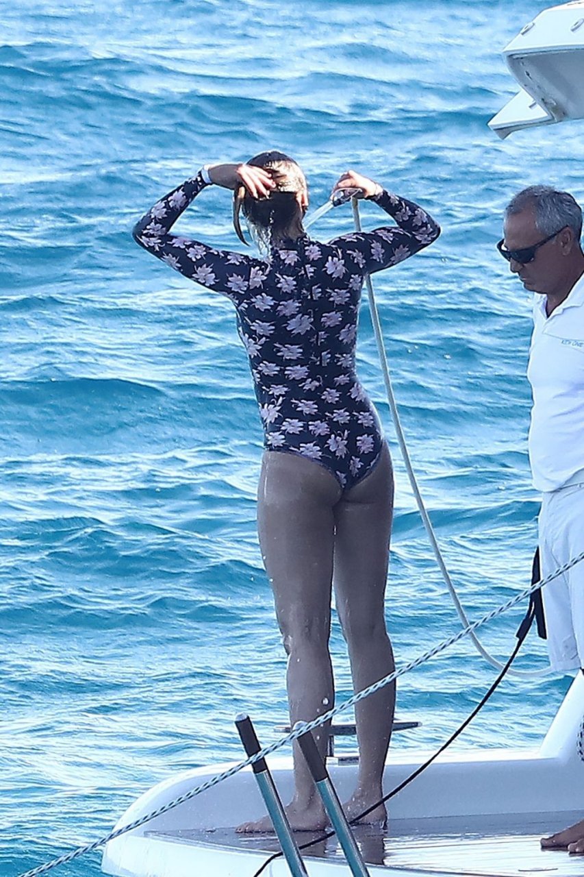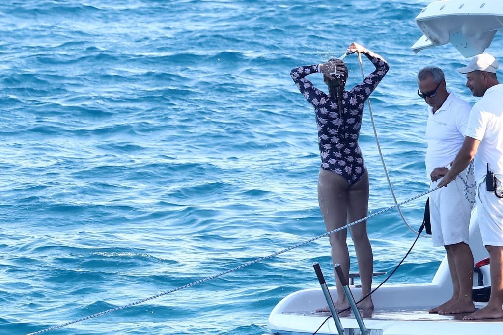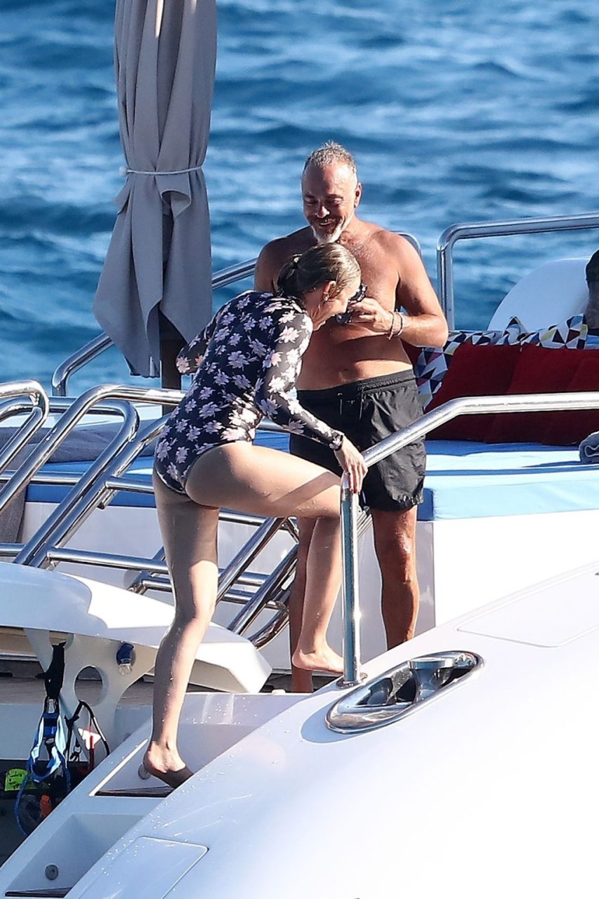 Камерон Диас и её муж Бенджи Мэдден наслаждаются отпуском в Сен-Тропе, 08.08.2019. Звезда “Ангелов Чарли” была замечена, как ныряла в Средиземное море в цветочном цельном купальнике, который подчёркивал её фантастическую фигуру.