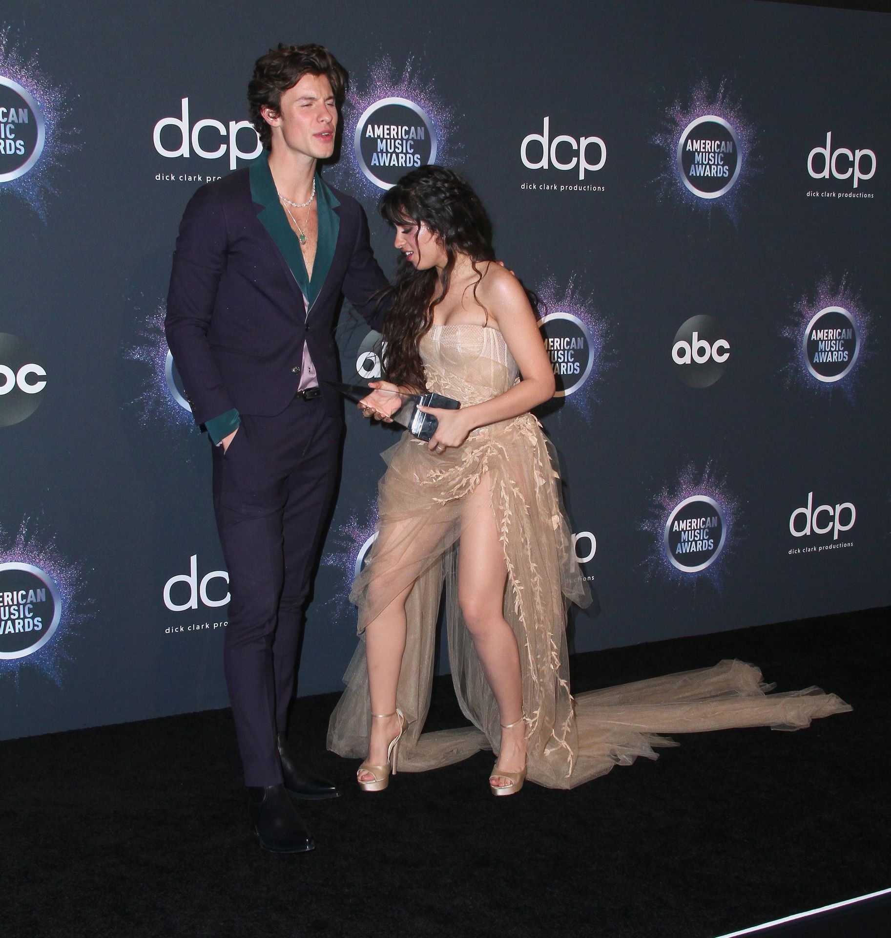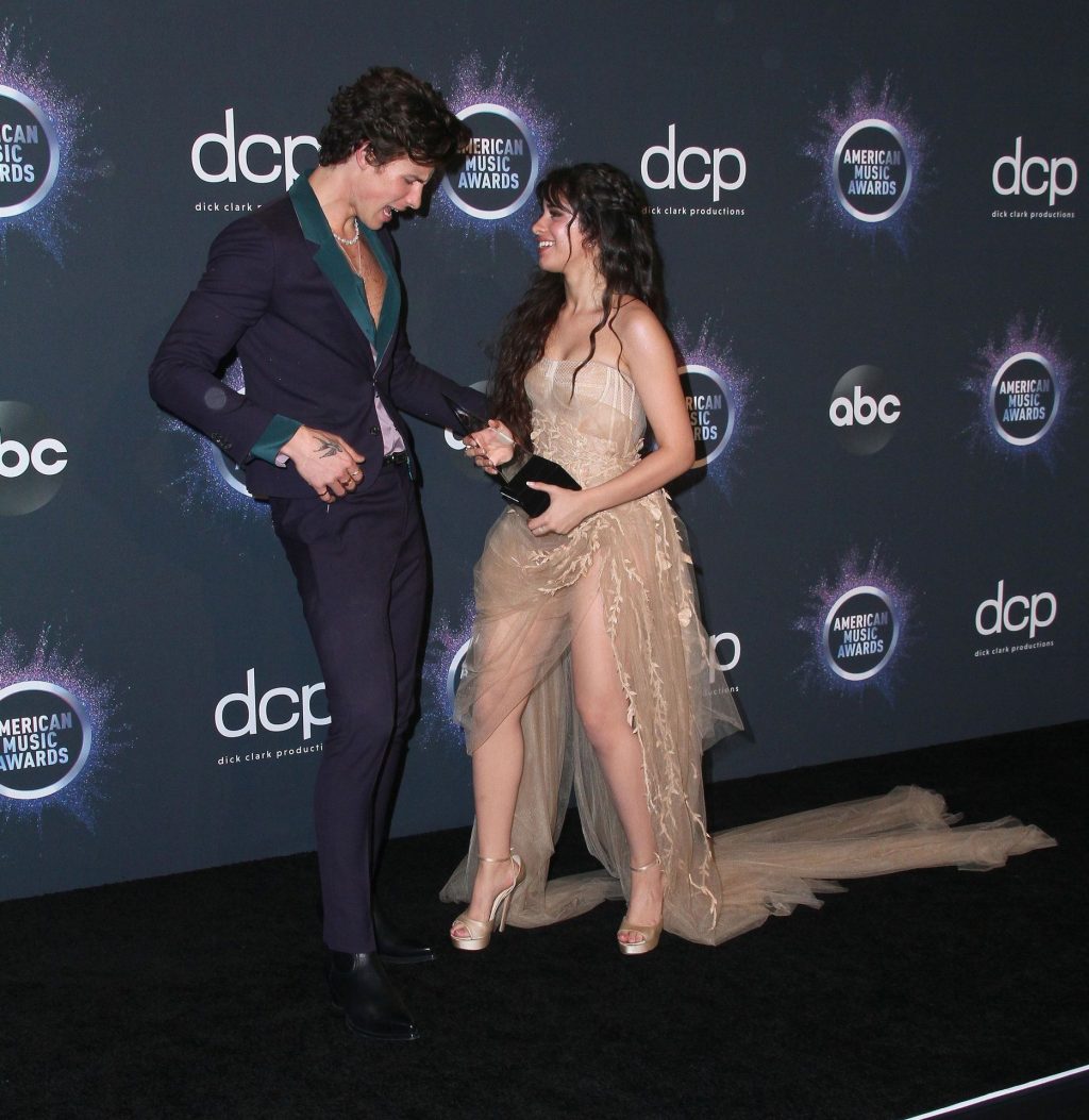 Камила Кабельо прибывает на церемонию American Music Awards 2019 в Microsoft Theater в Лос-Анджелесе, 24.11.2019. Певица выбрала платье нюдового цвета для мероприятия, демонстрируя свои сексуальные ноги на красной дорожке, фотографируясь одна и с Шоном Мендесом.