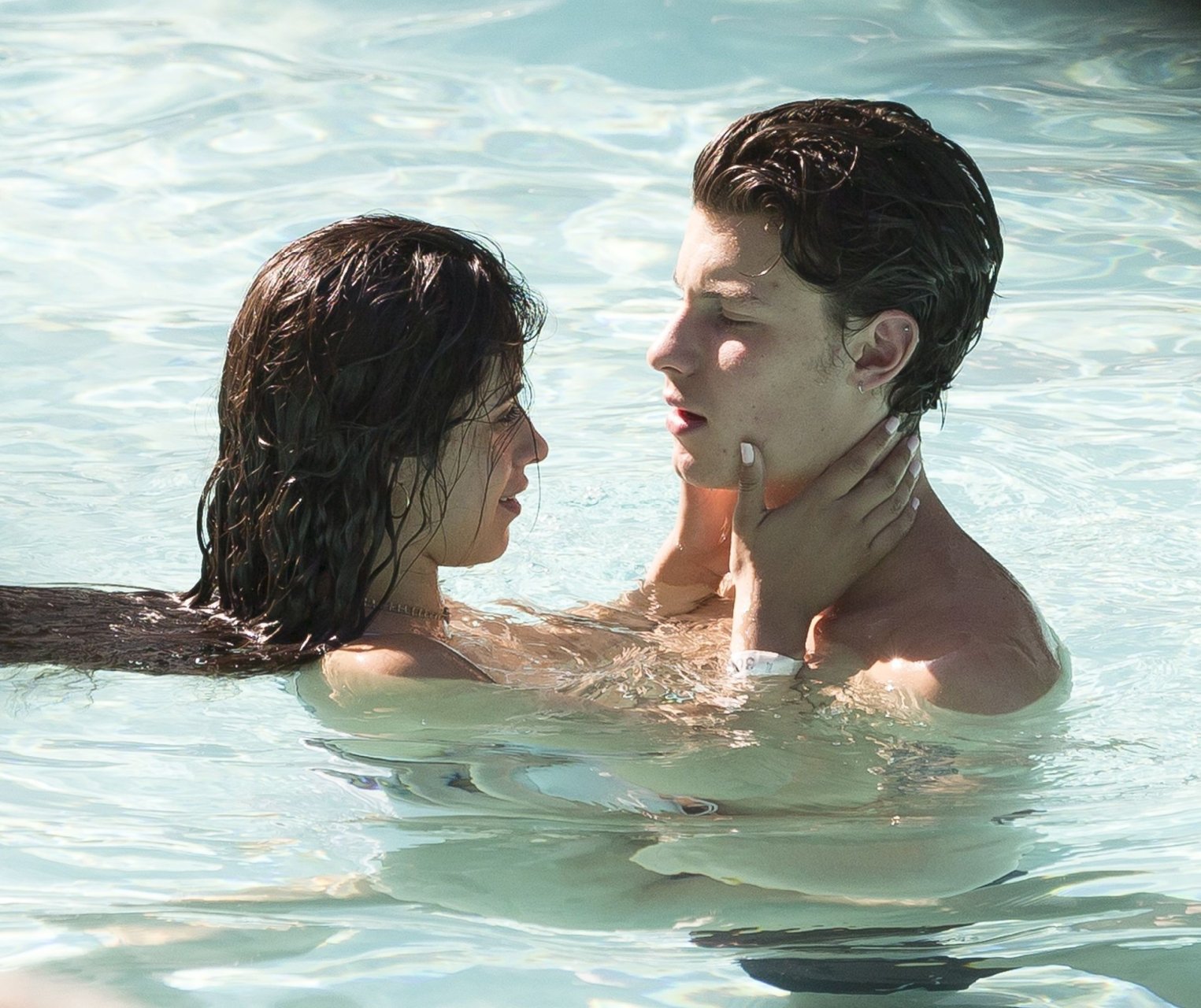Певцы Шон Мендес и Камила Кабельо снова были замечены вместе, проявляя большую близость в воде в Майами, 29.07.2019.