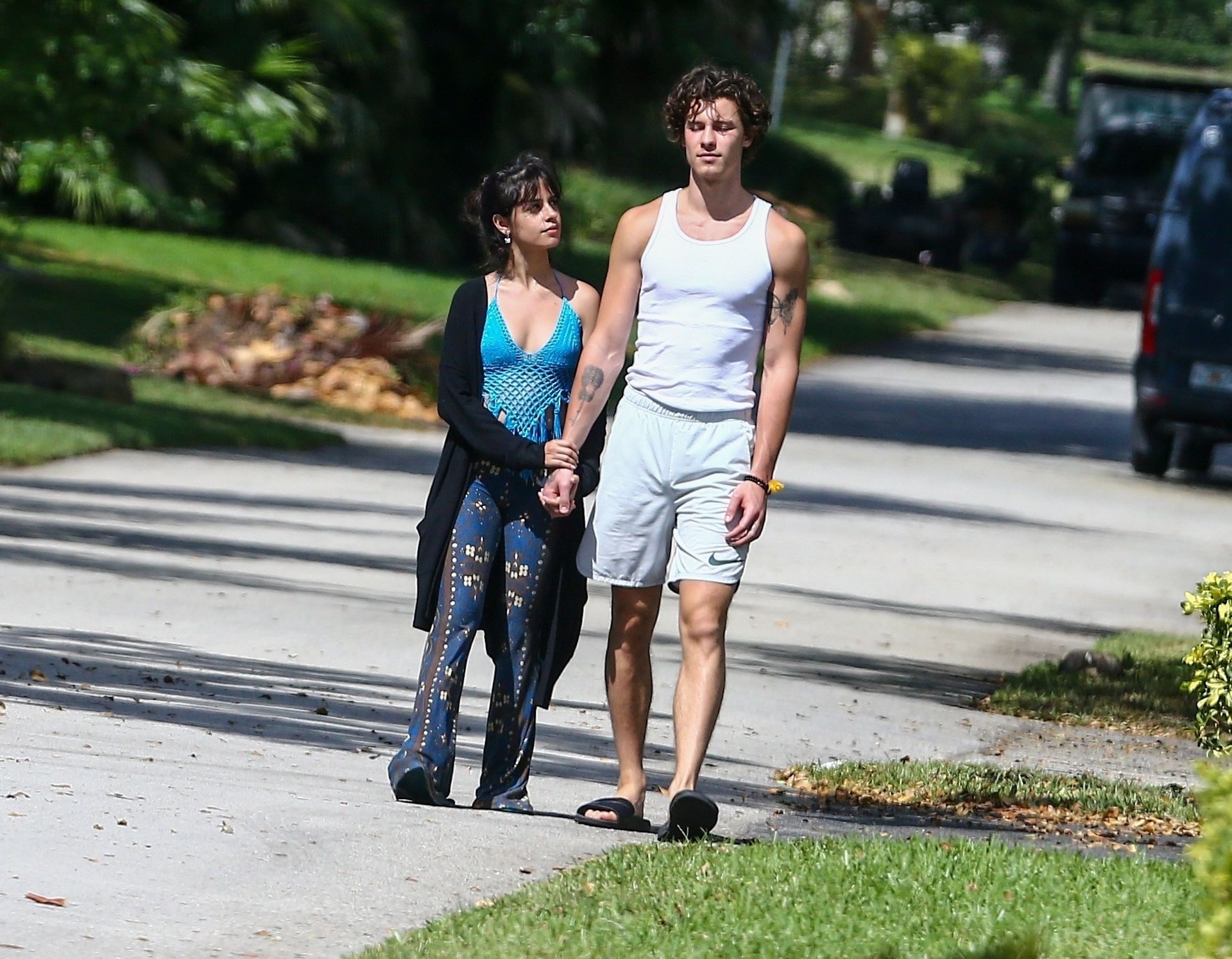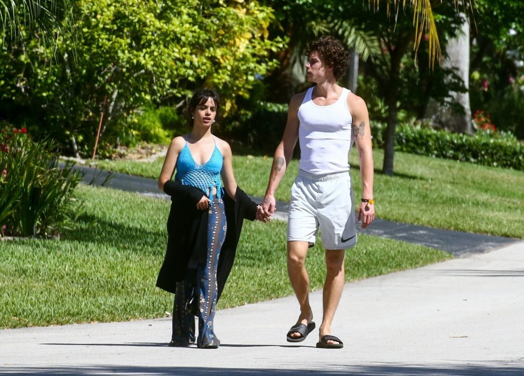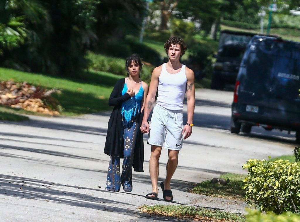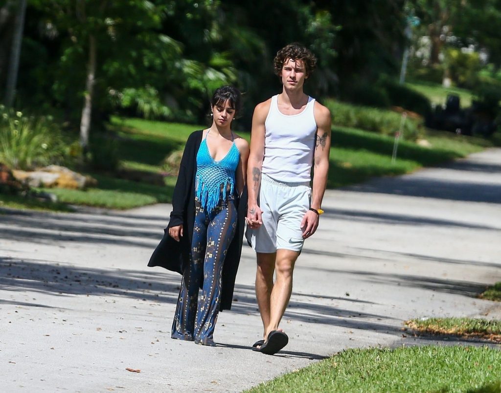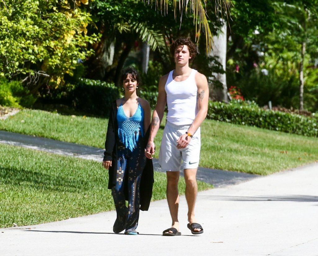 Камила Кабельо и её парень Шон Мендес выползают из кровати и идут на утреннюю прогулку, держась за руки – Корал Гейблс, 31.03.2020. Эта горячая пара сейчас ещё более неразлучна, поскольку по всей стране введены приказы о самоизоляции.