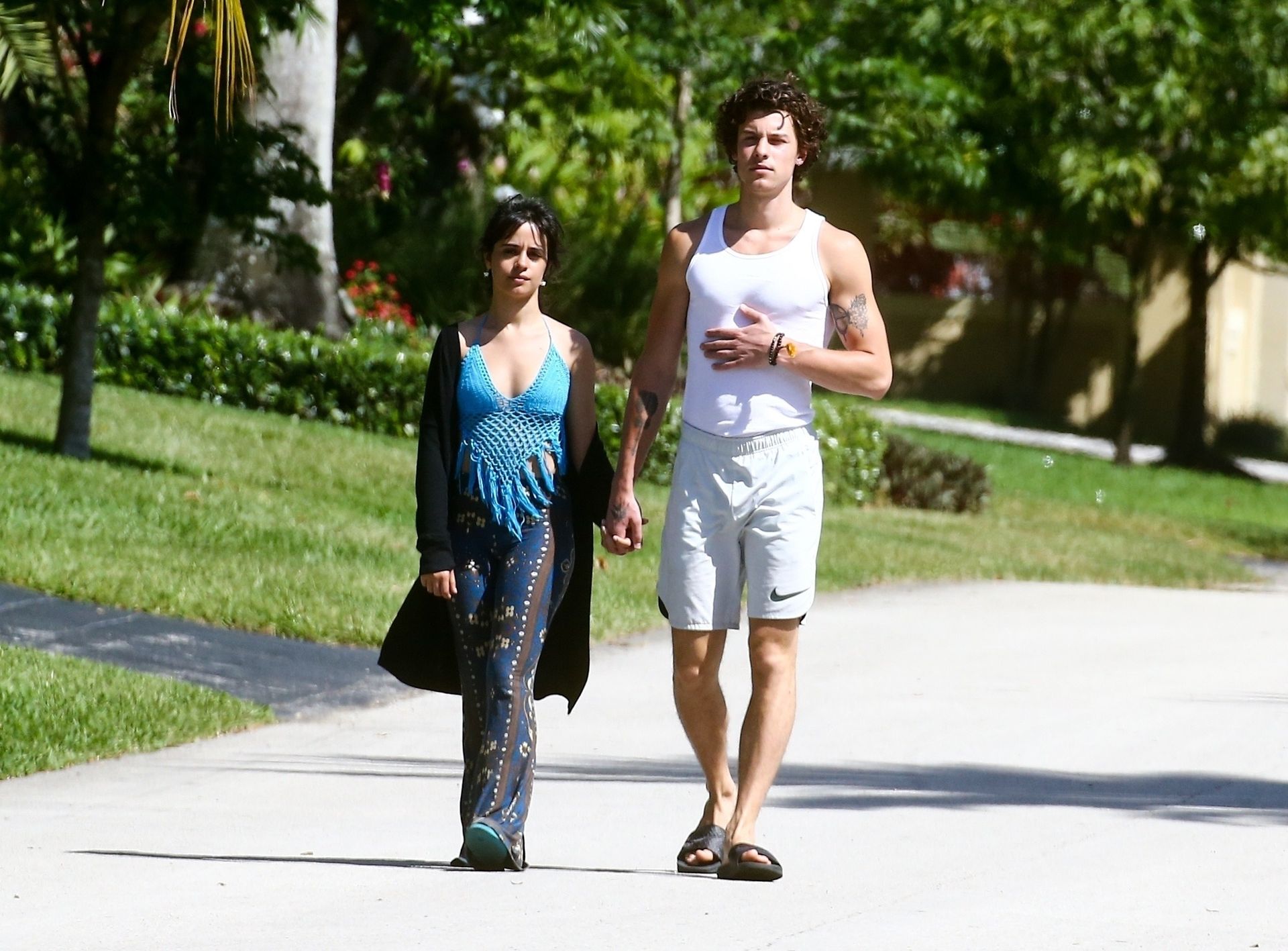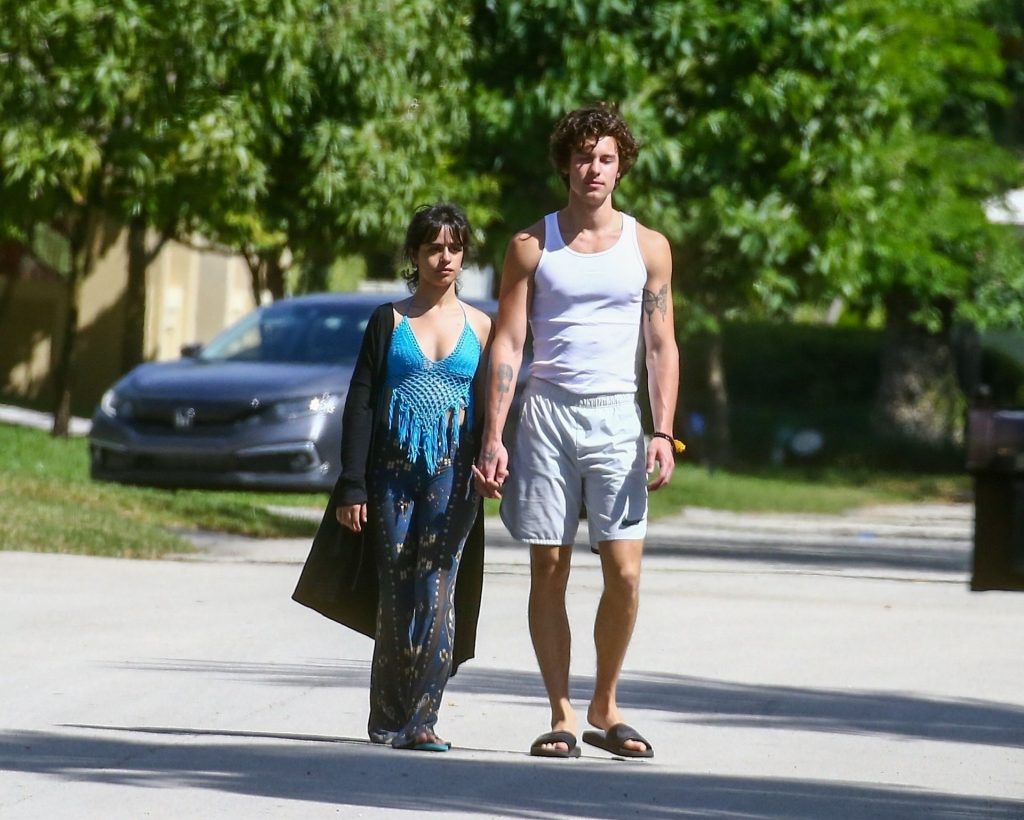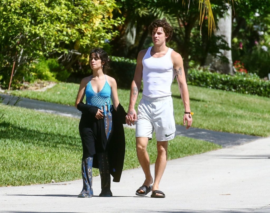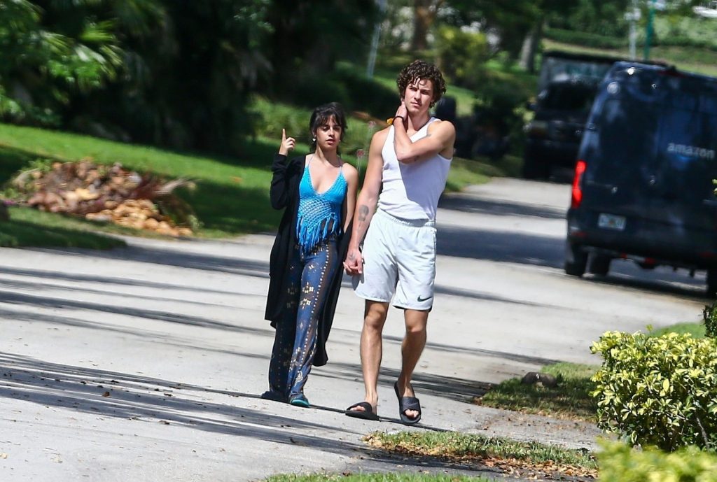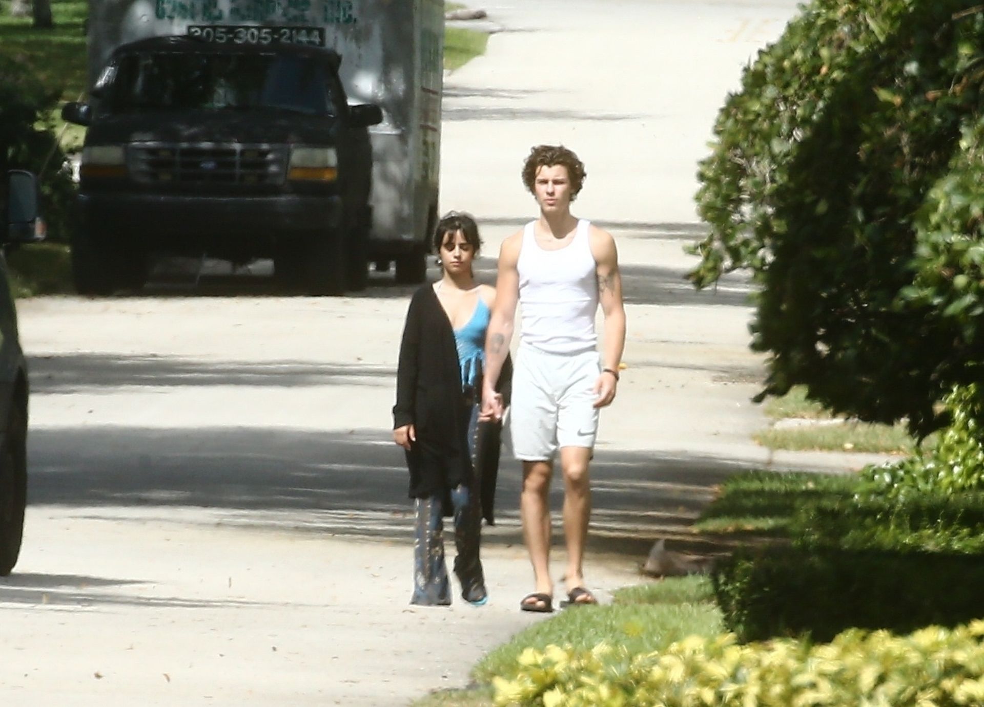Камила Кабельо и её парень Шон Мендес выползают из кровати и идут на утреннюю прогулку, держась за руки – Корал Гейблс, 31.03.2020. Эта горячая пара сейчас ещё более неразлучна, поскольку по всей стране введены приказы о самоизоляции.