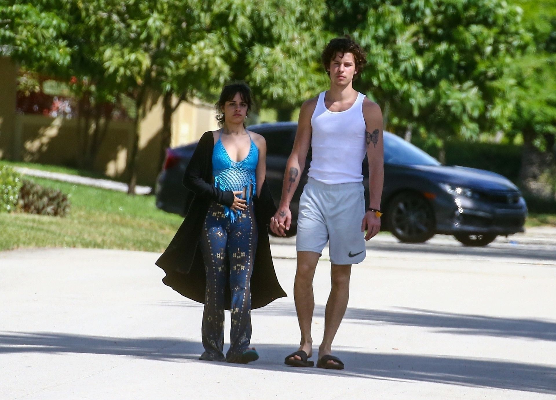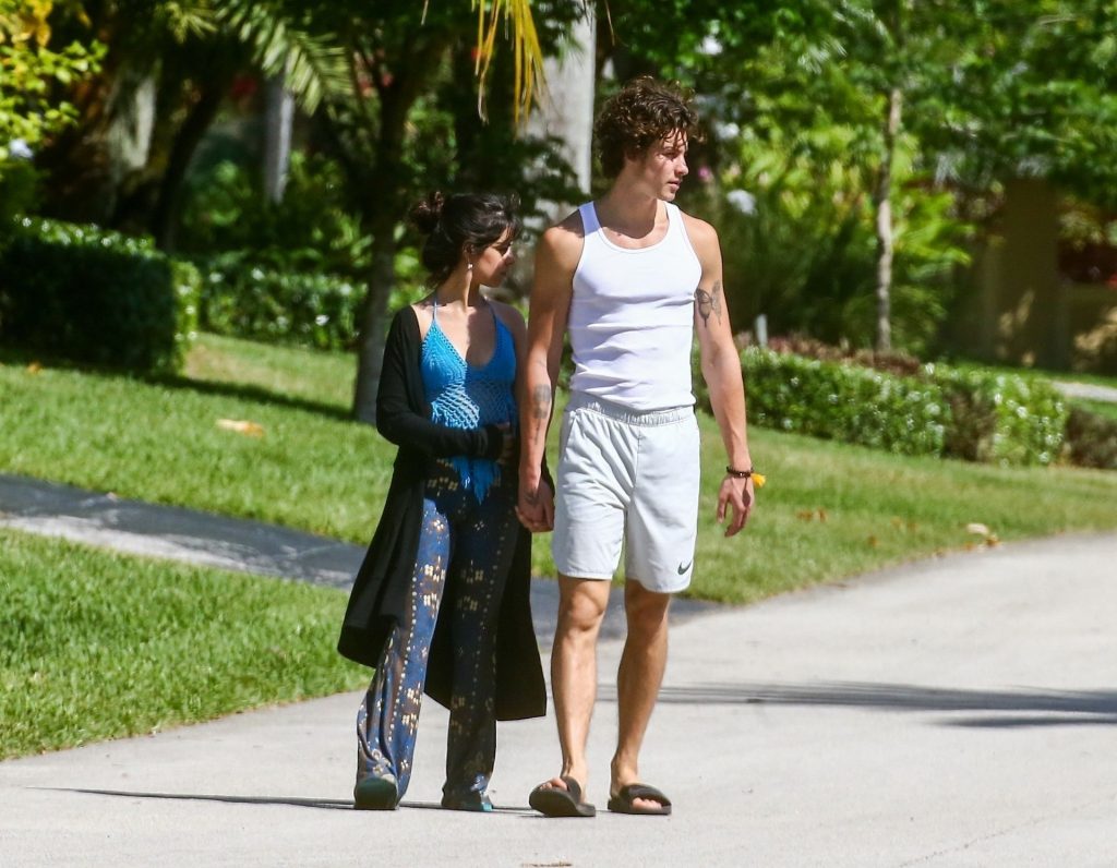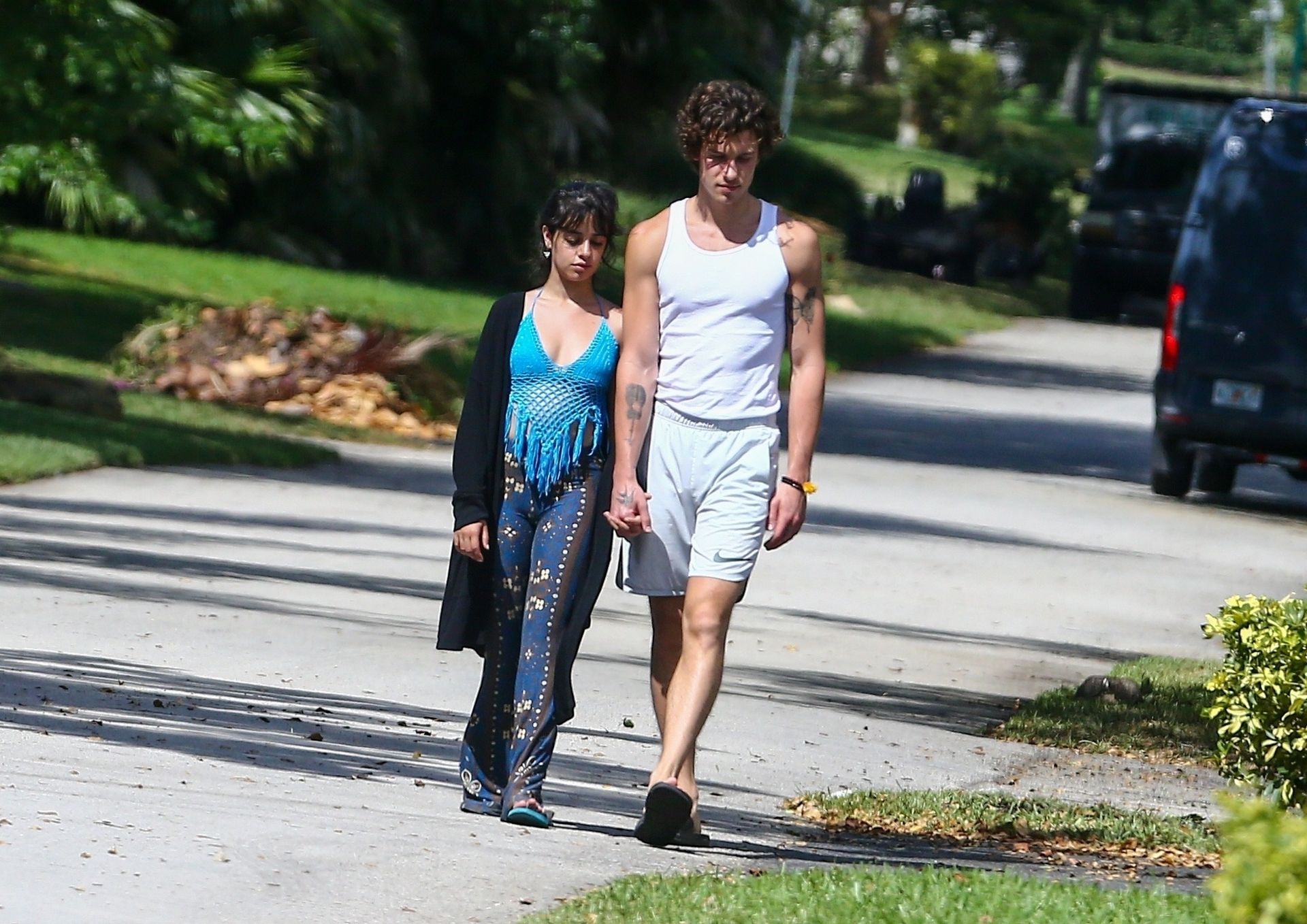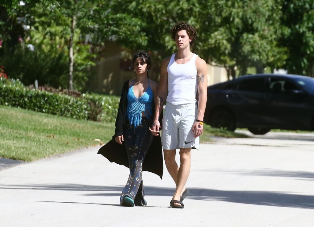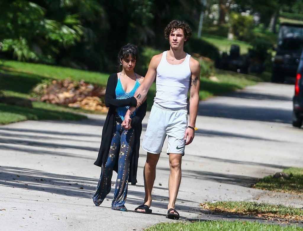 Камила Кабельо и её парень Шон Мендес выползают из кровати и идут на утреннюю прогулку, держась за руки – Корал Гейблс, 31.03.2020. Эта горячая пара сейчас ещё более неразлучна, поскольку по всей стране введены приказы о самоизоляции.