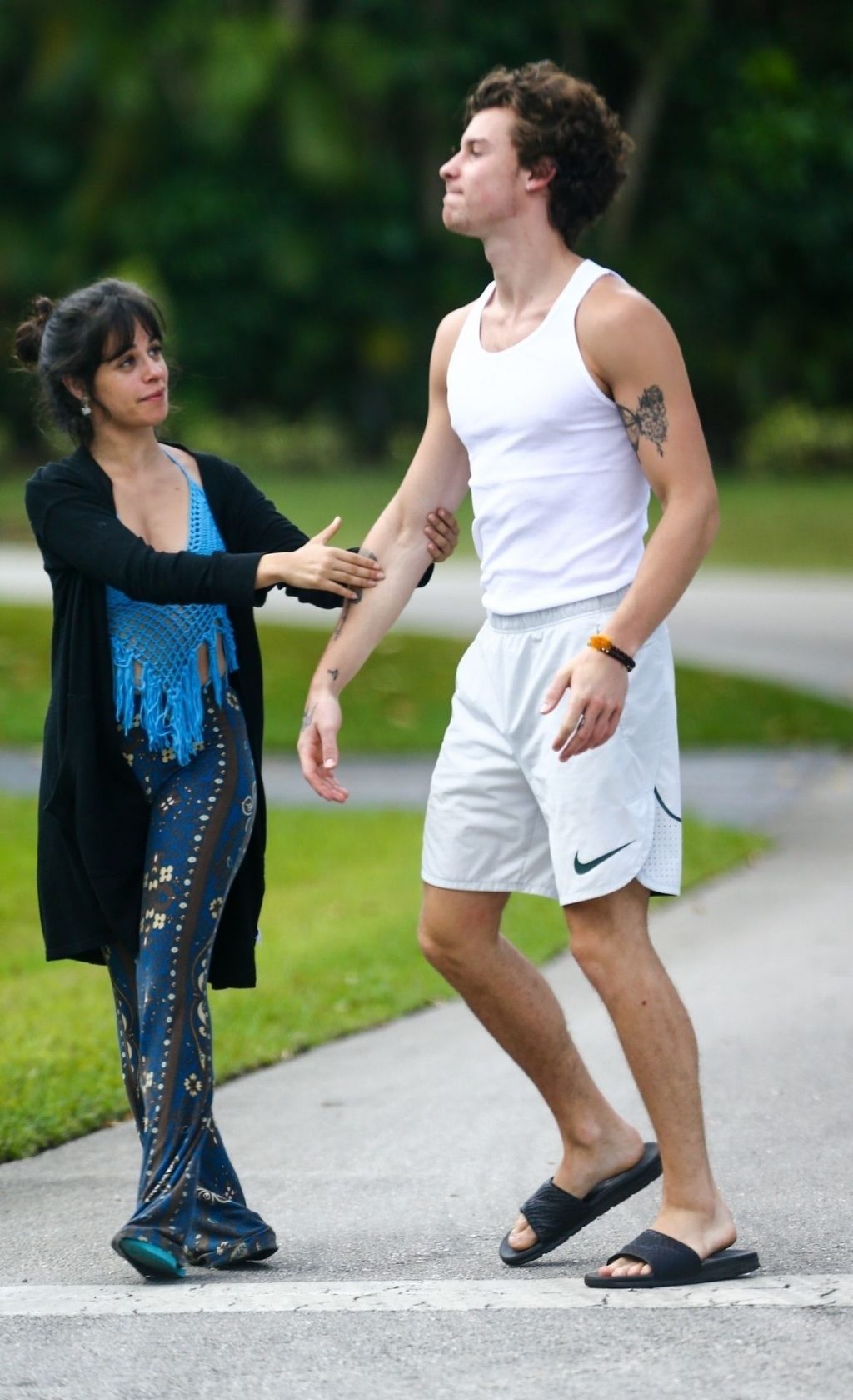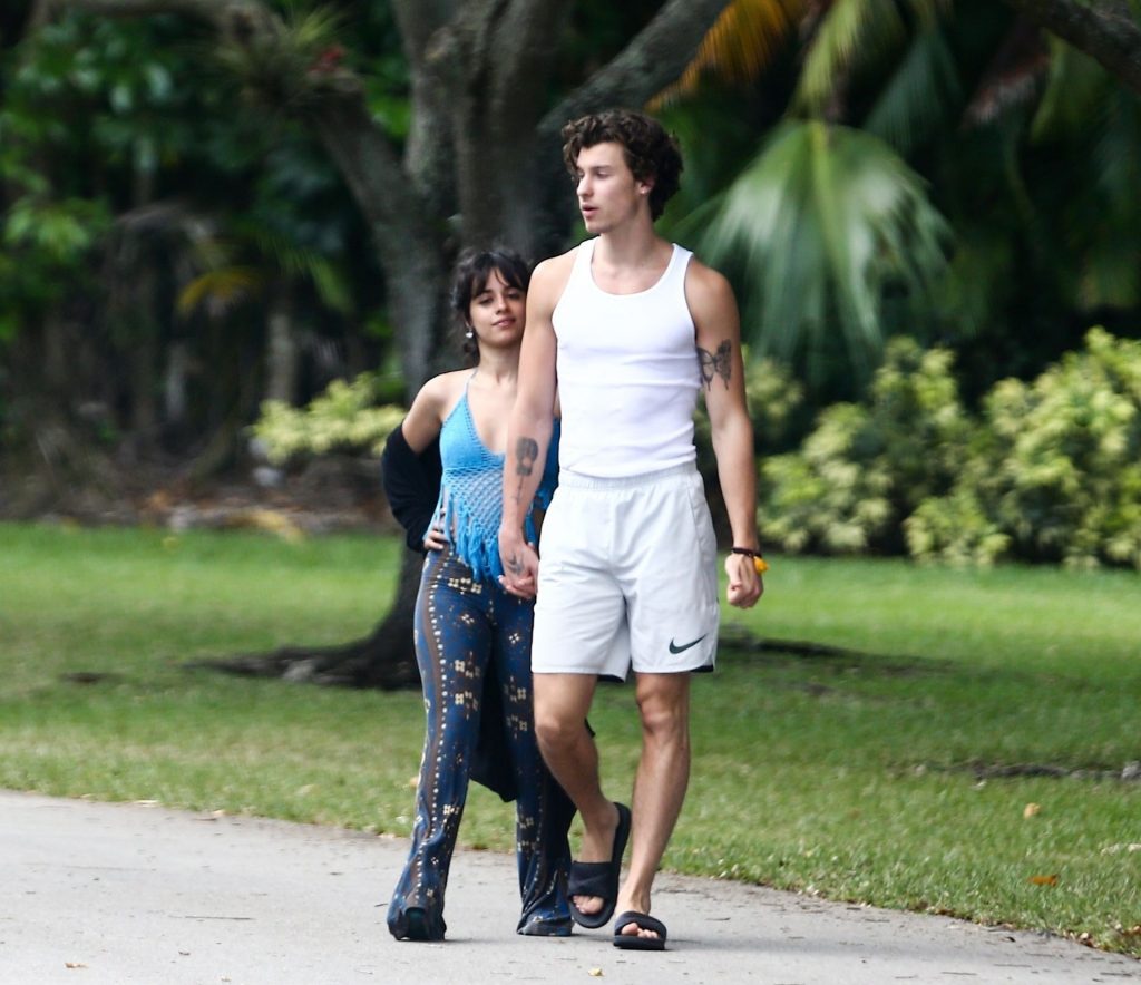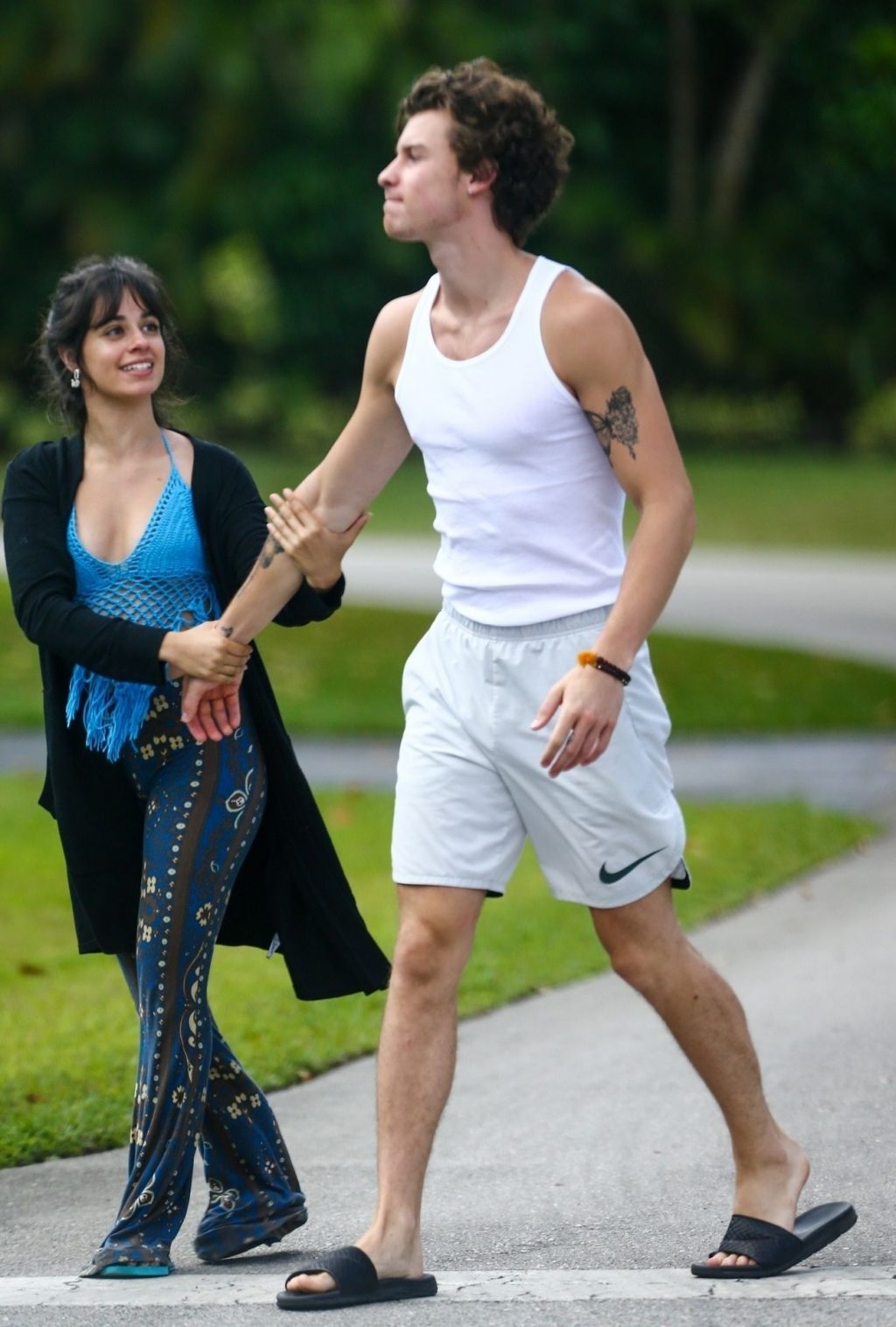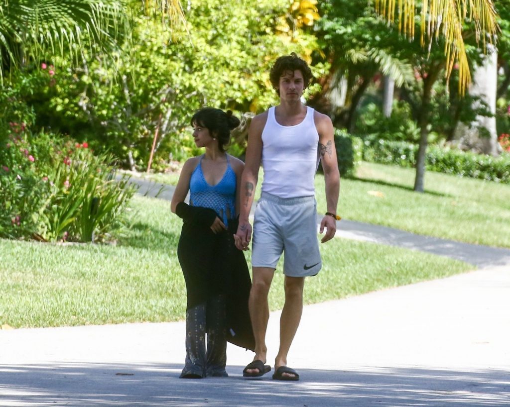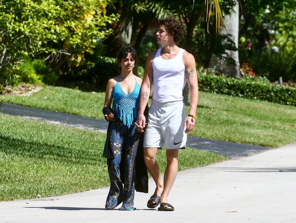 Камила Кабельо и её парень Шон Мендес выползают из кровати и идут на утреннюю прогулку, держась за руки – Корал Гейблс, 31.03.2020. Эта горячая пара сейчас ещё более неразлучна, поскольку по всей стране введены приказы о самоизоляции.