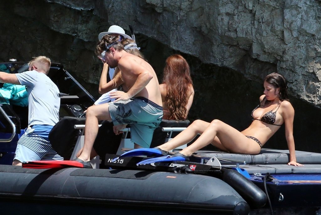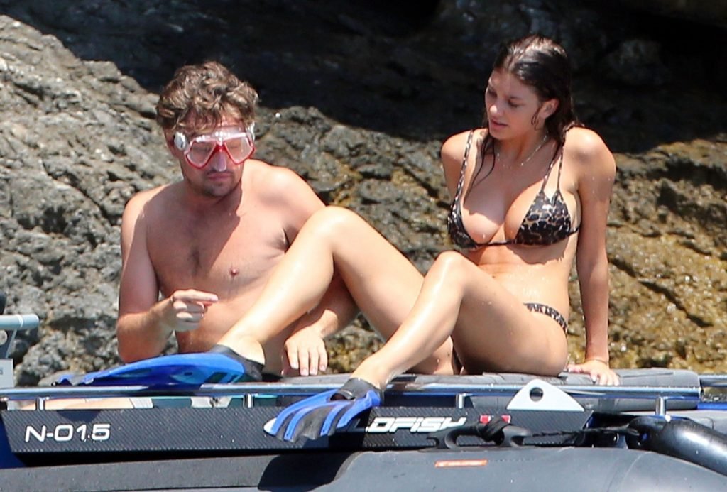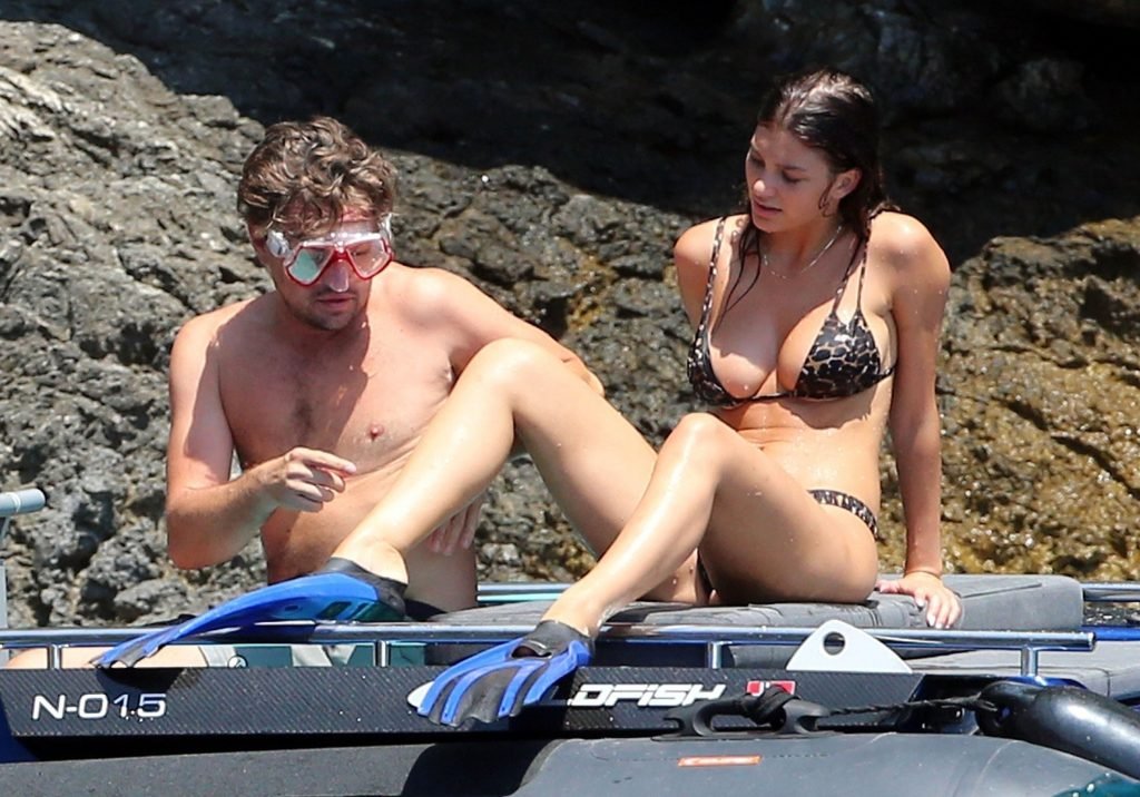 Голливудский актер Леонардо ДиКаприо и аргентинская модель, его девушка Камила Морроне (21), были замечены на отдыхе в Нерано, 08.05.2018.
