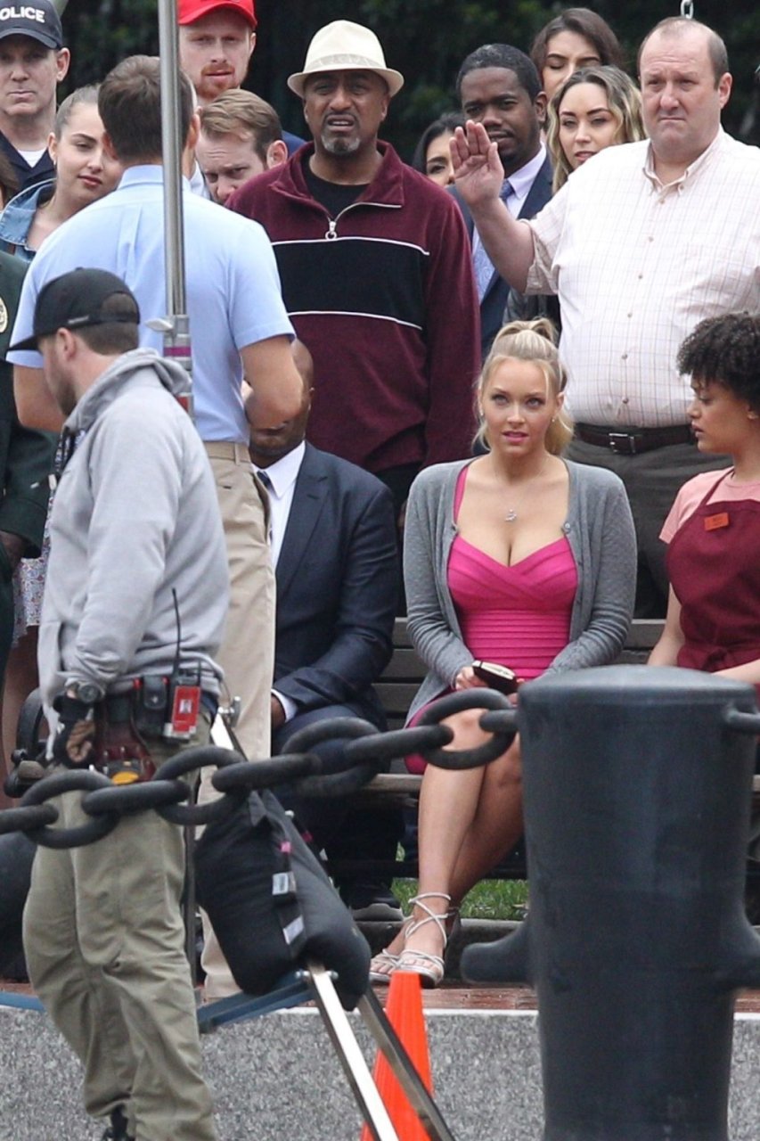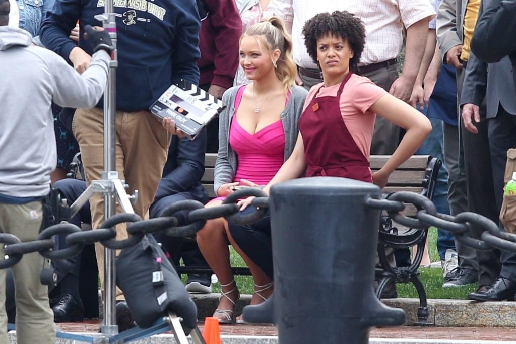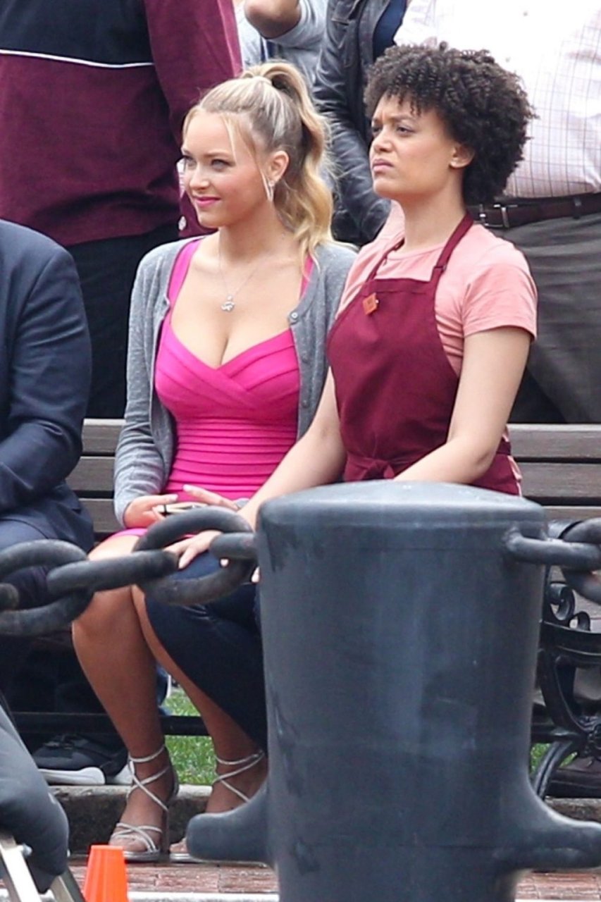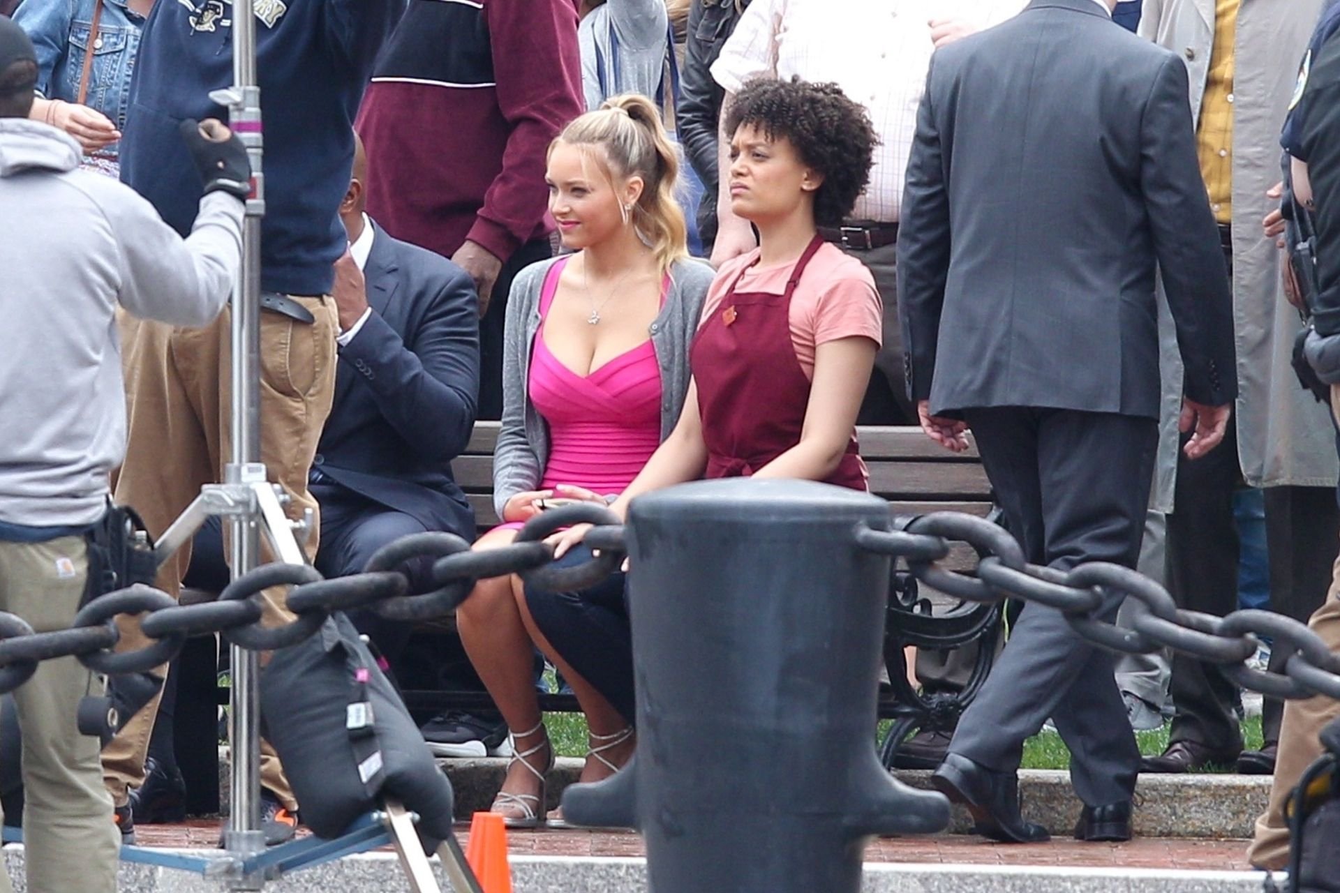 Спортсменка и девушка Роба Гронковски, Камилла Костек, продемонстрировала эффектный образ на съемках фильма “Свободный парень” с Райаном Рейнольдсом в Бостоне, 31.05.2019.