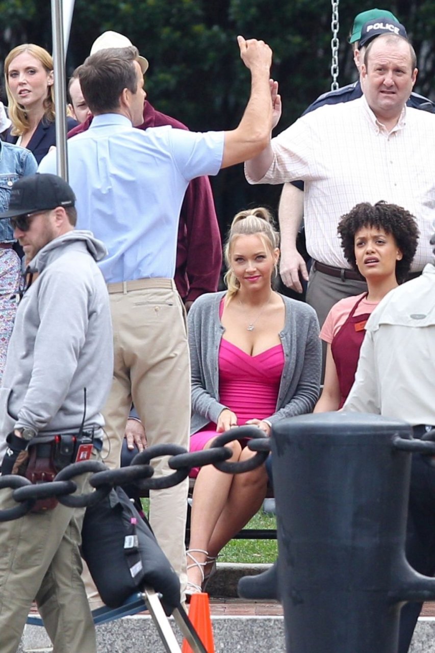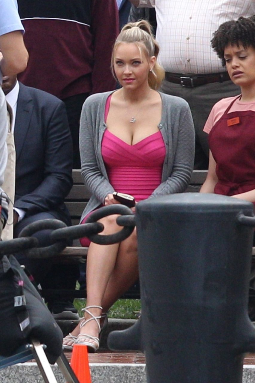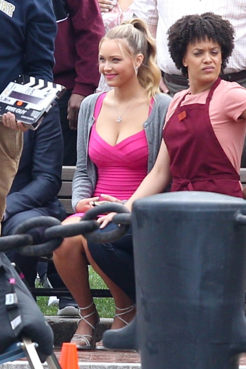 Спортсменка и девушка Роба Гронковски, Камилла Костек, продемонстрировала эффектный образ на съемках фильма “Свободный парень” с Райаном Рейнольдсом в Бостоне, 31.05.2019.