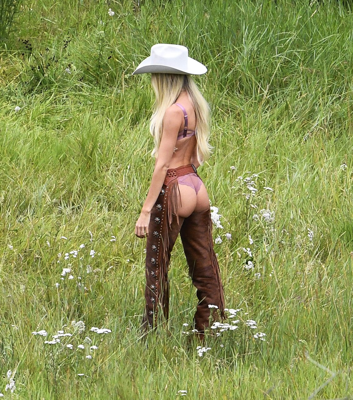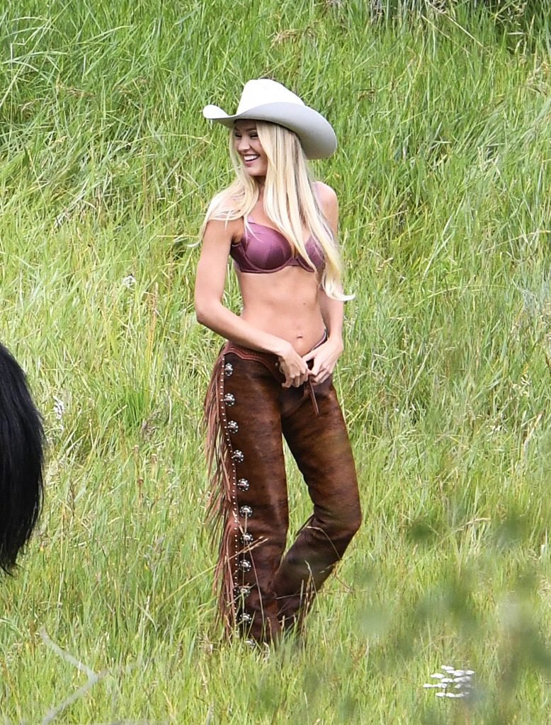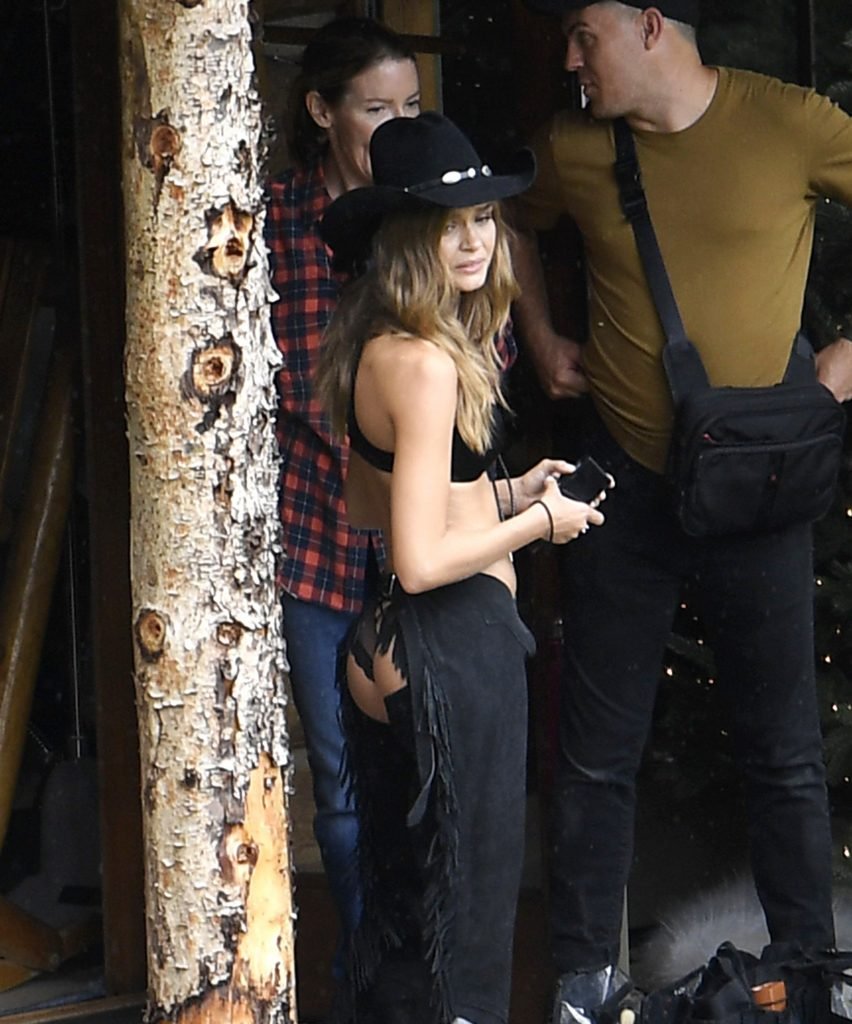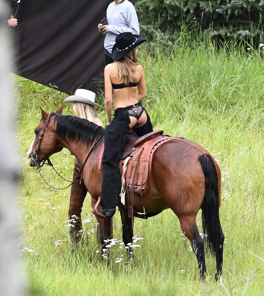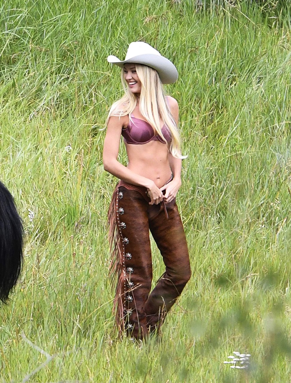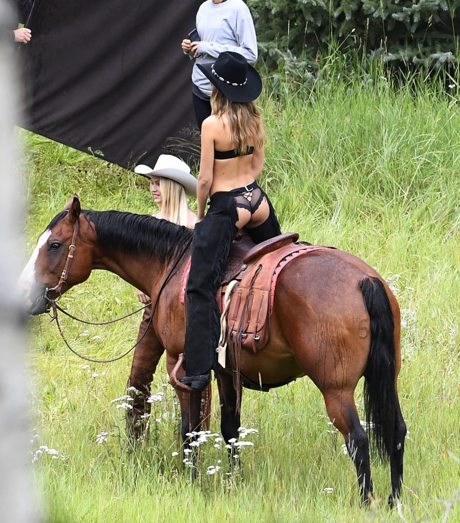 Супермодели Кэндис Свейнпол и Джозефин Скривер были замечены в сексуальных ковбойских нарядах во время съемок предстоящего праздничного каталога Victoria’s Secret в Аспене, 15.08.2017.
