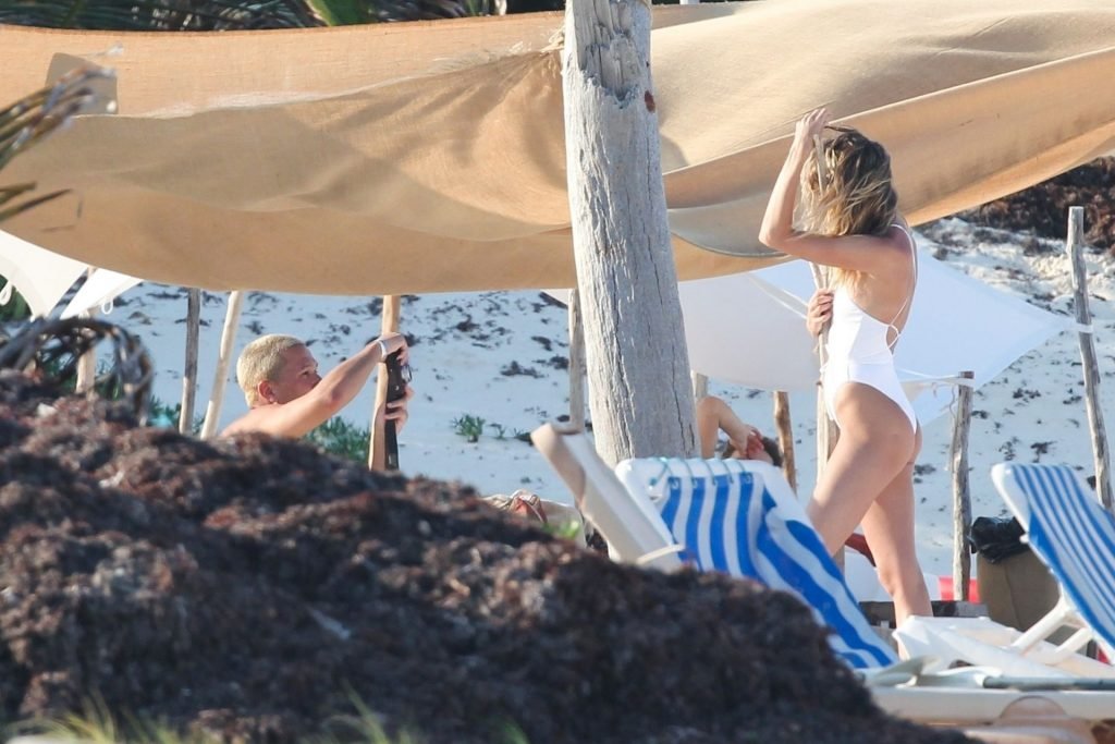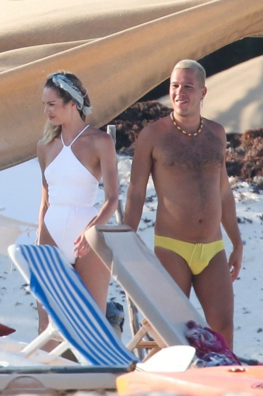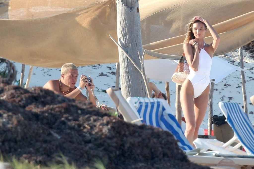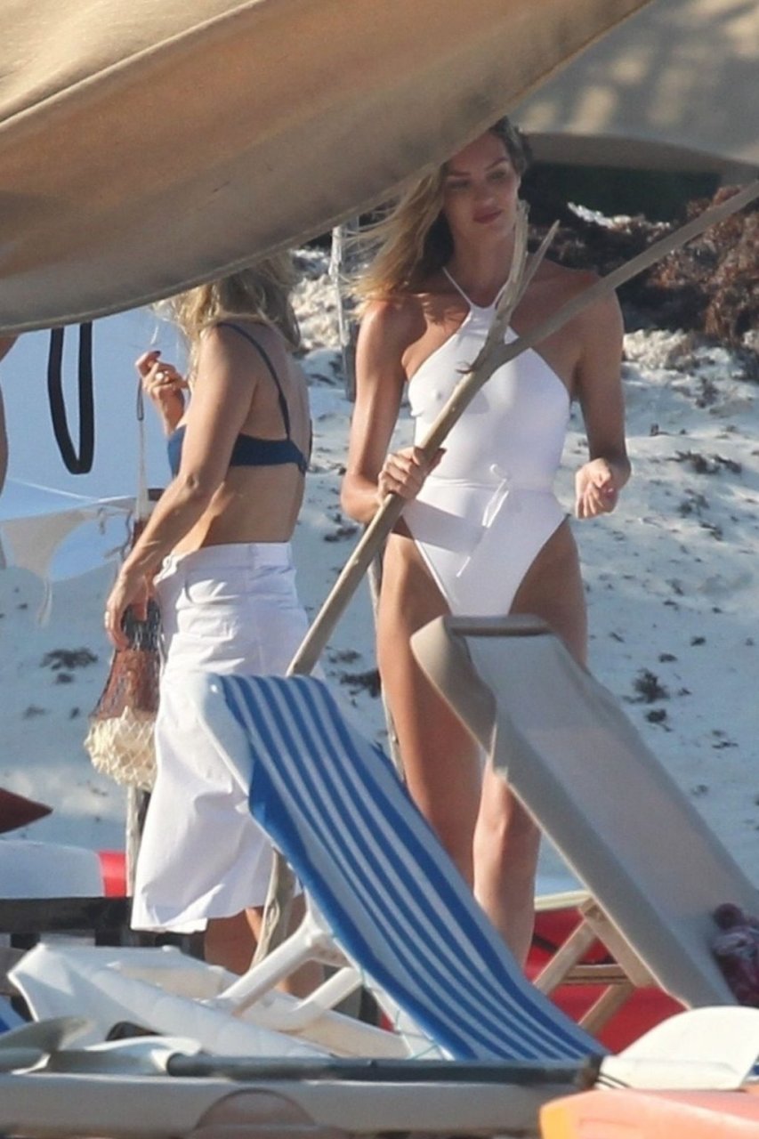 Супермодель Кэндис Свейнпол в белом купальнике демонстрирует свою сексуальную попу на фотосессии в Тулуме, 28.03.2019.