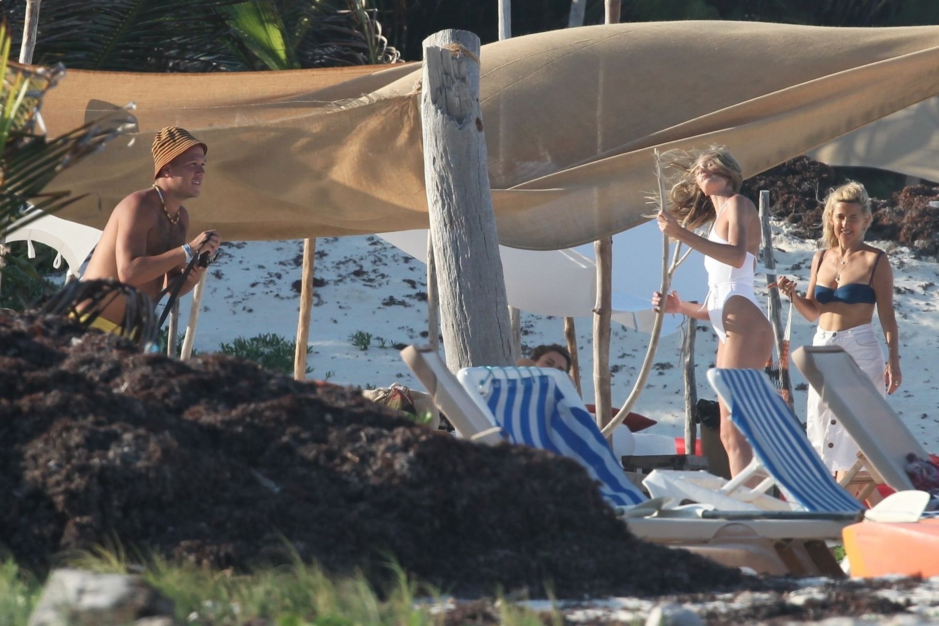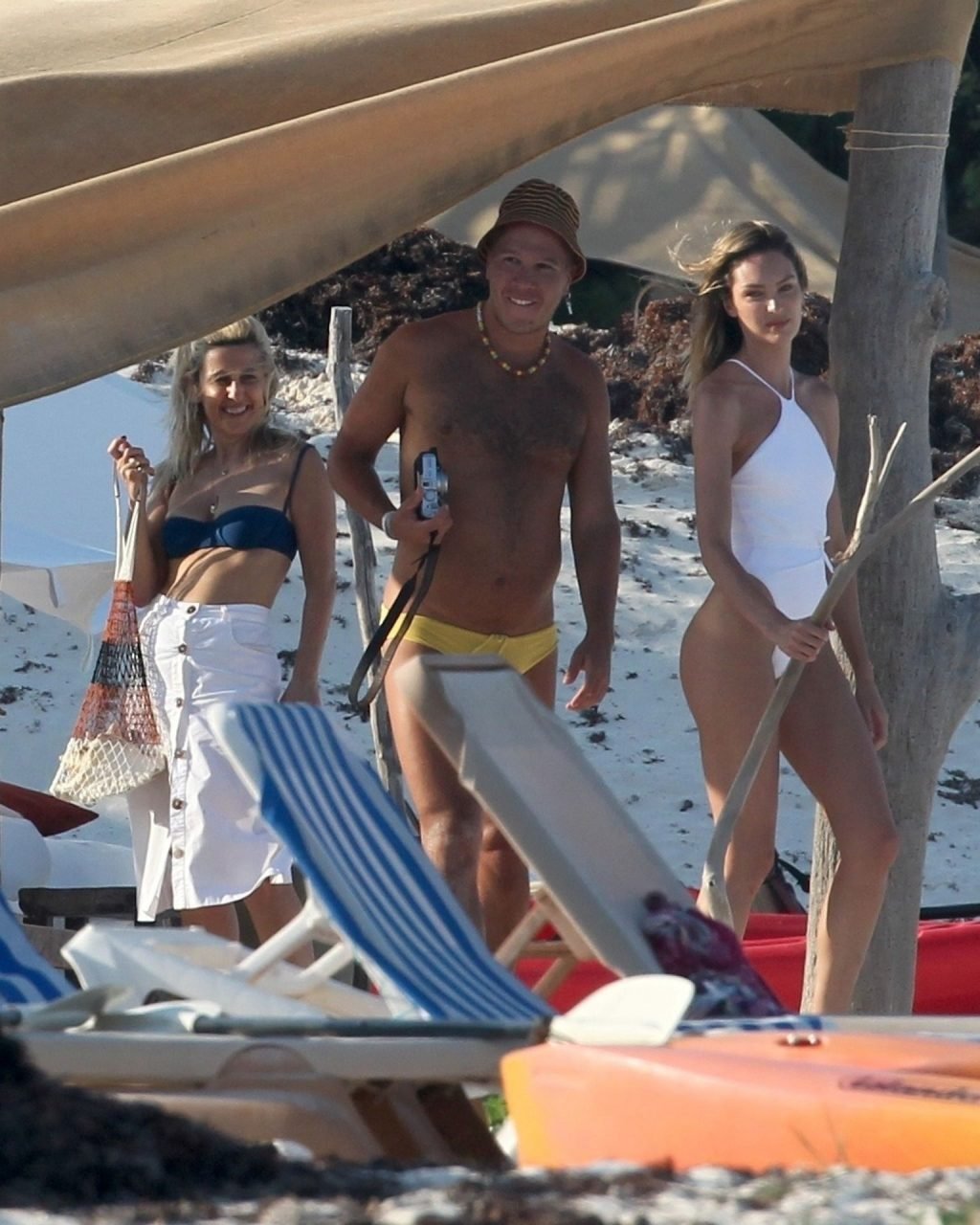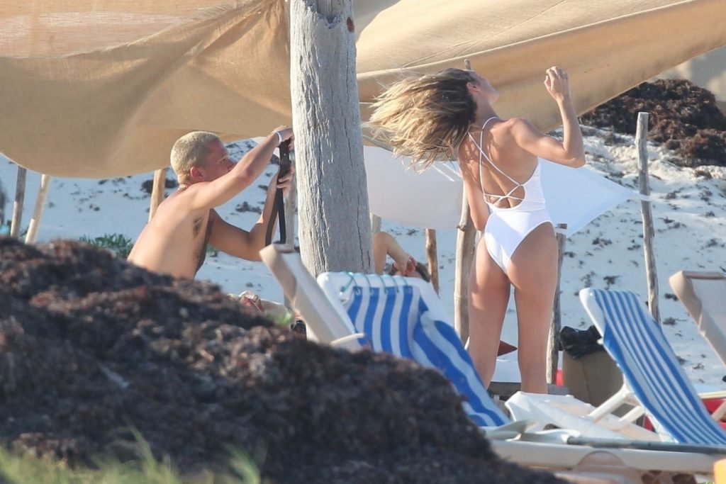 Супермодель Кэндис Свейнпол в белом купальнике демонстрирует свою сексуальную попу на фотосессии в Тулуме, 28.03.2019.