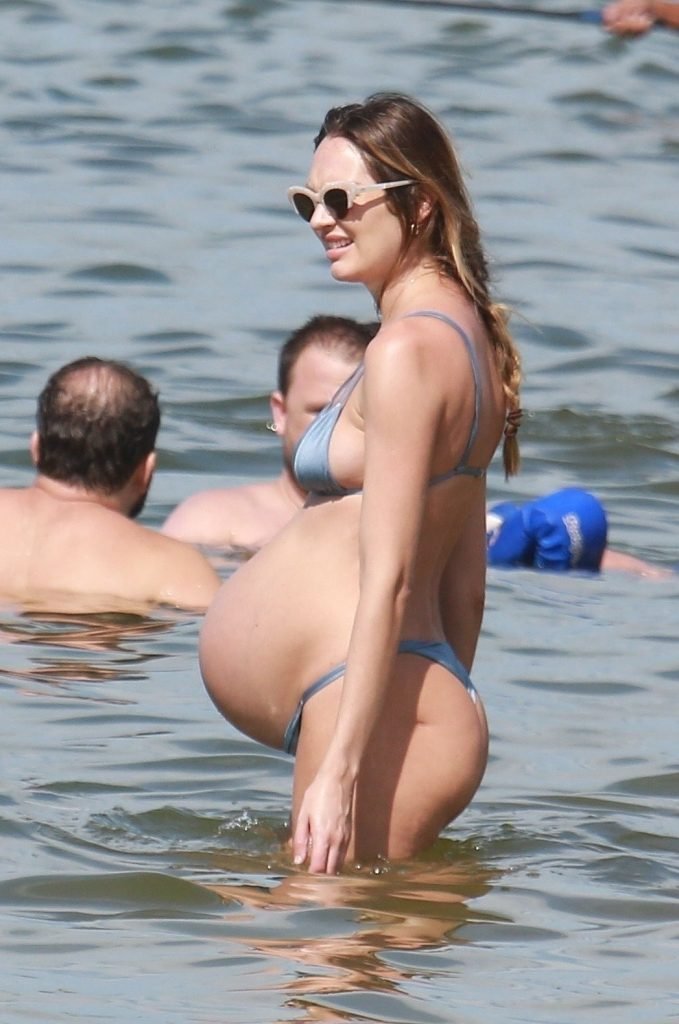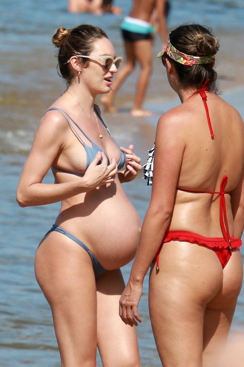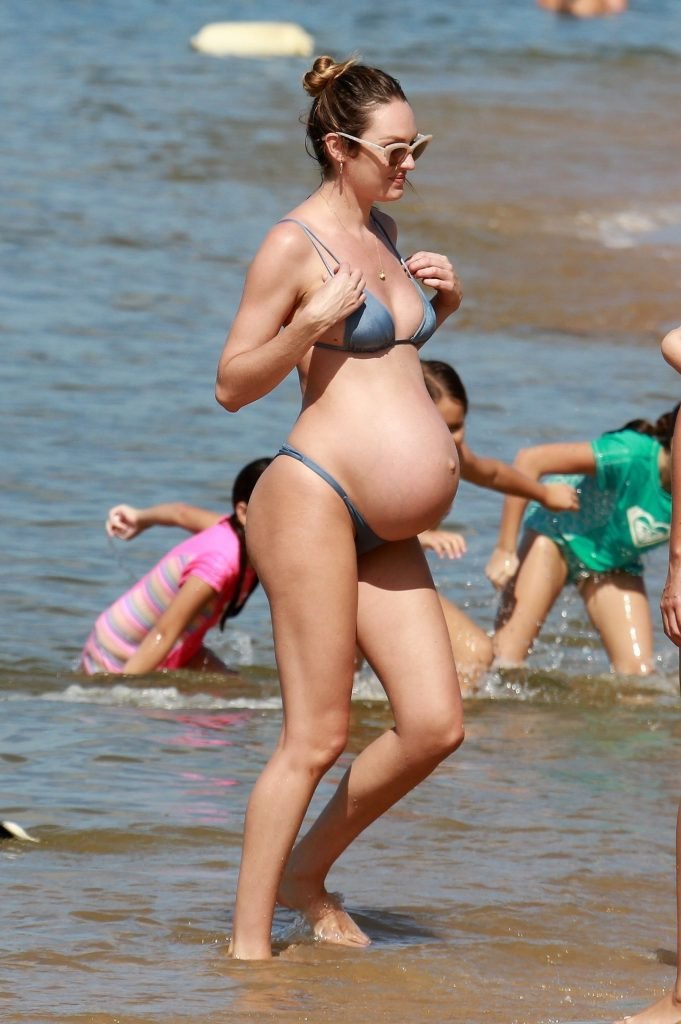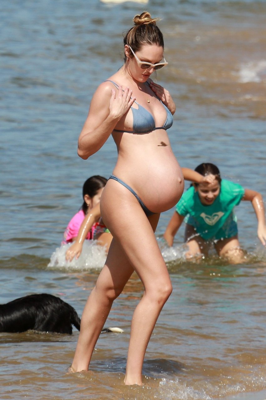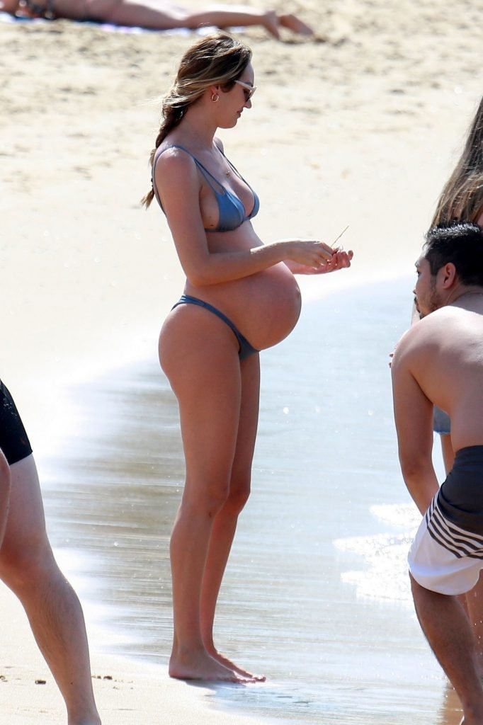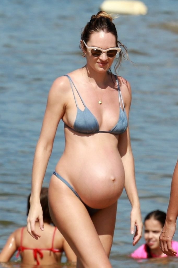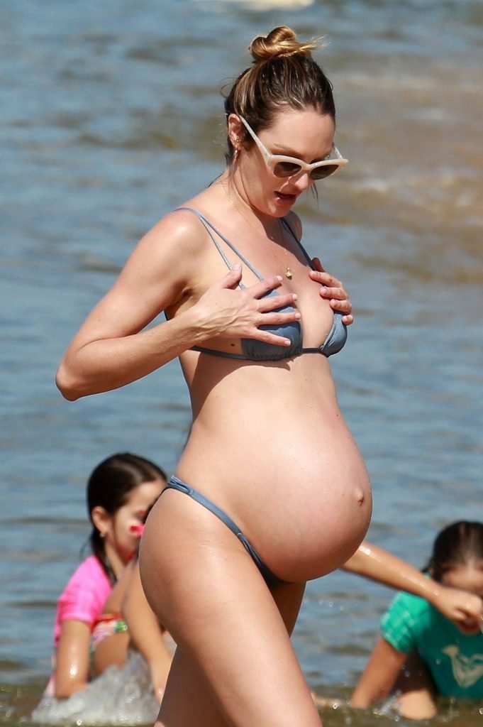 Кэндис Свейнпол выглядит так, будто готова вот-вот родить, наслаждаясь днем на пляже с семьей, включая сына Анакан и партнера Германа Николли, 06.05.2018. 29-летняя ангел Victoria’s Secret с гордостью демонстрировала свой большой живот в красно-белом купальнике в горошек, поглаживая живот, отдыхая и общаясь с друзьями.