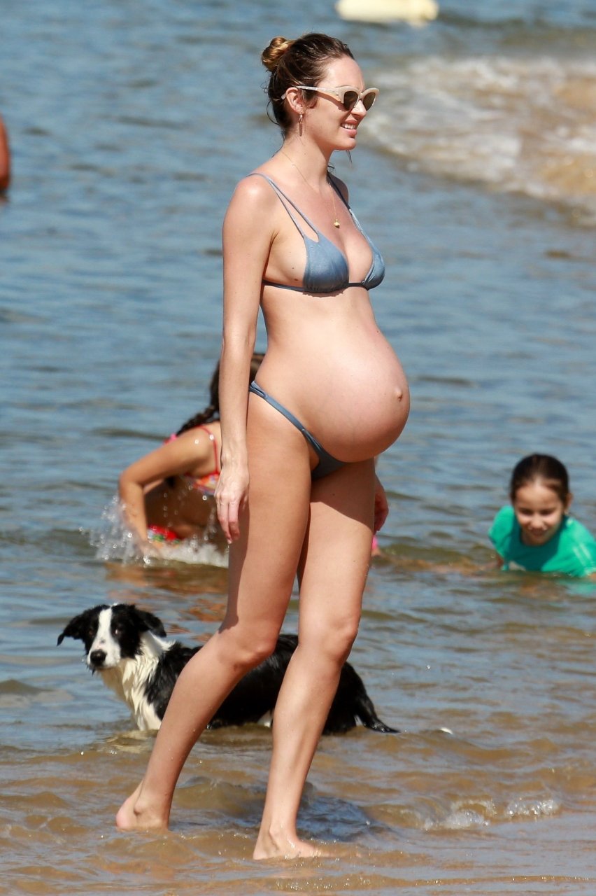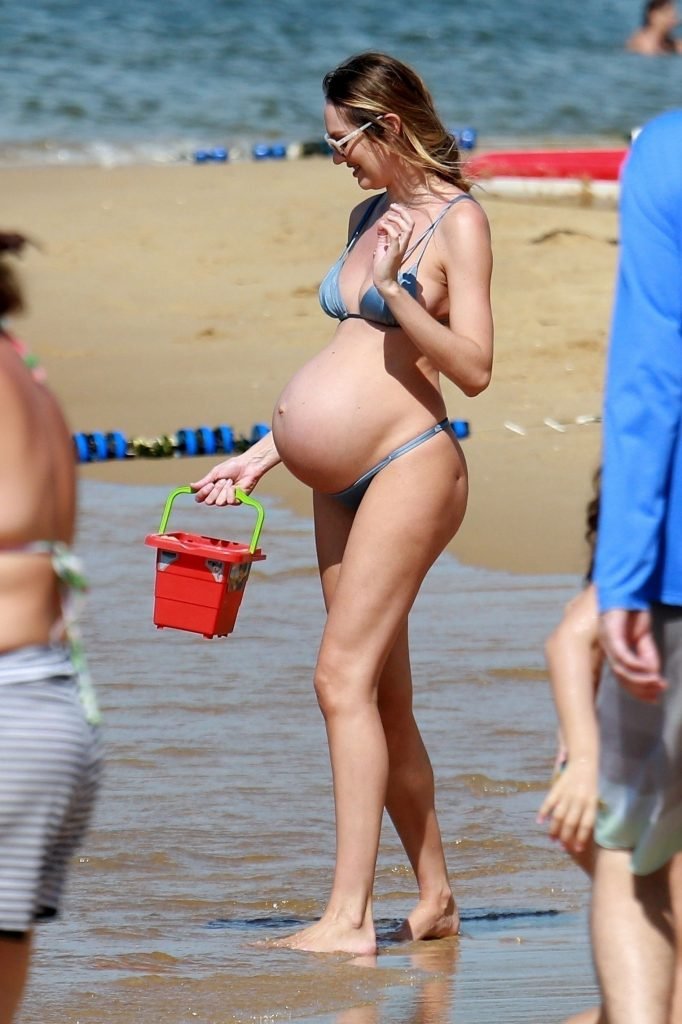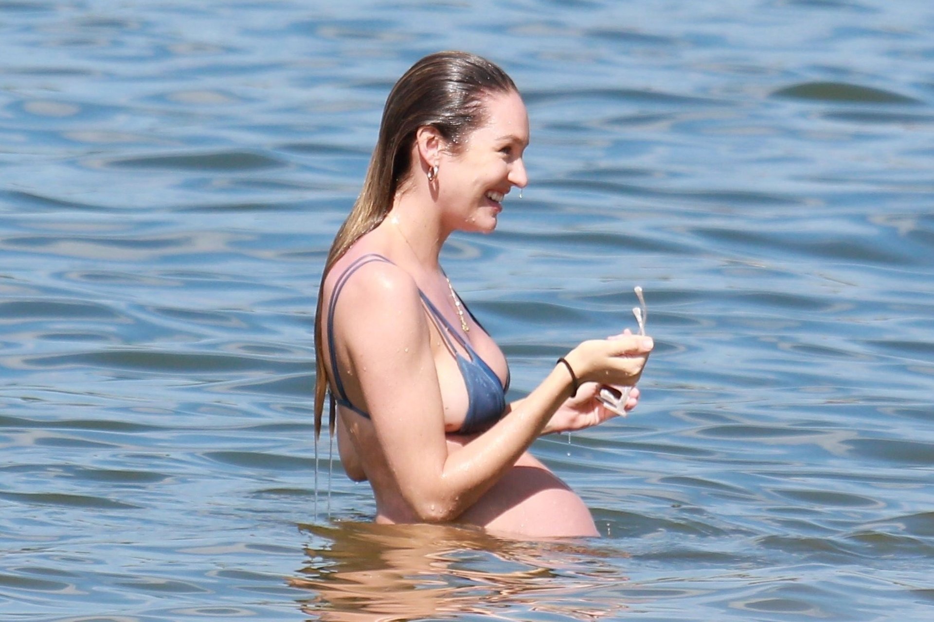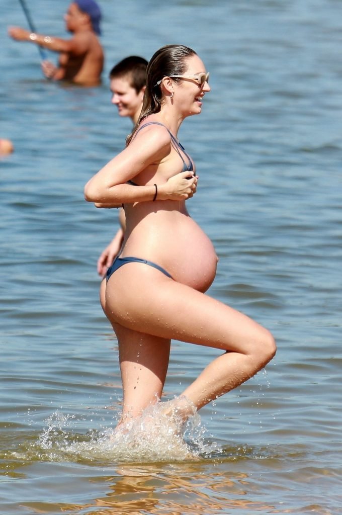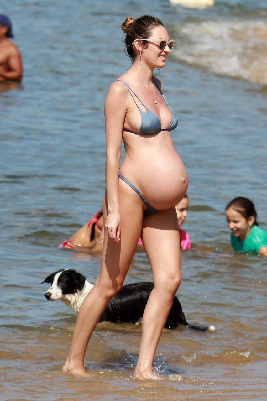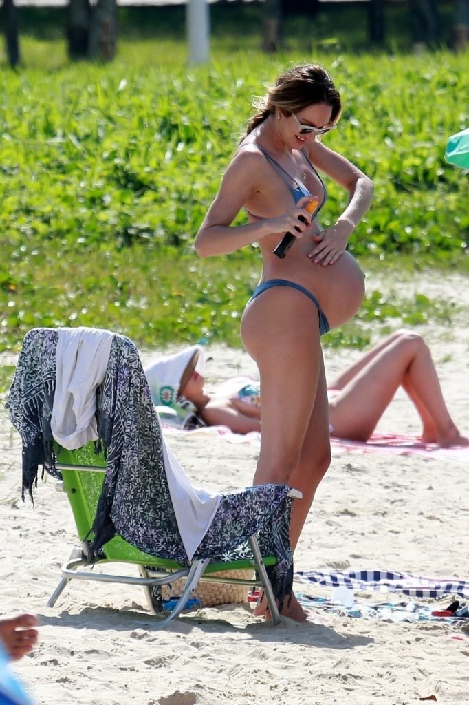 Кэндис Свейнпол выглядит так, будто готова вот-вот родить, наслаждаясь днем на пляже с семьей, включая сына Анакан и партнера Германа Николли, 06.05.2018. 29-летняя ангел Victoria’s Secret с гордостью демонстрировала свой большой живот в красно-белом купальнике в горошек, поглаживая живот, отдыхая и общаясь с друзьями.