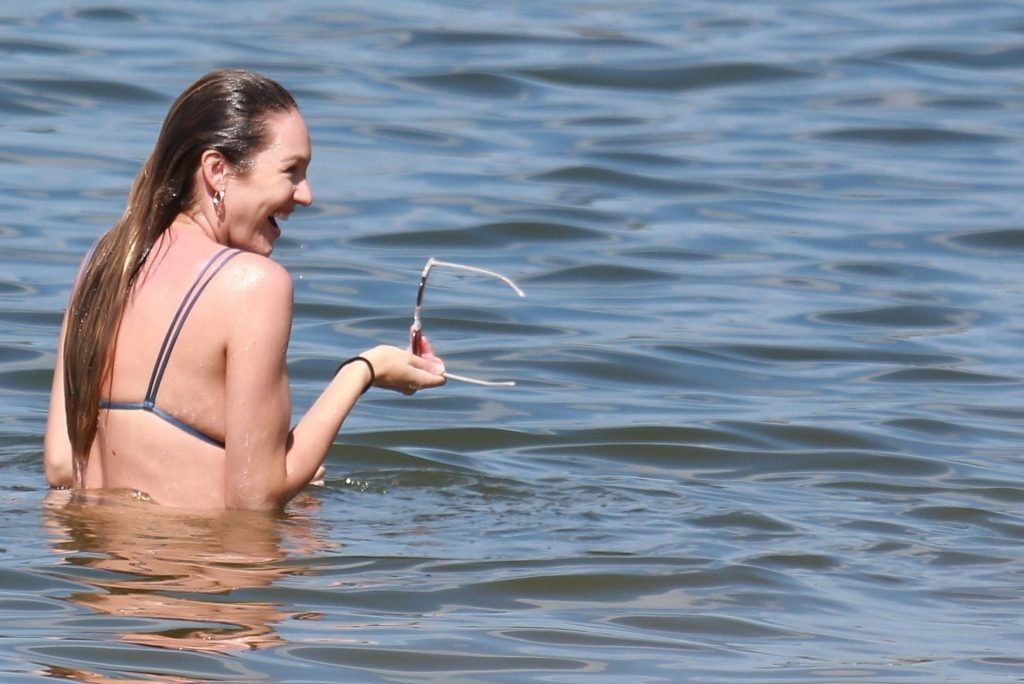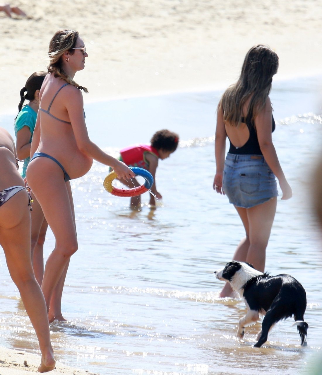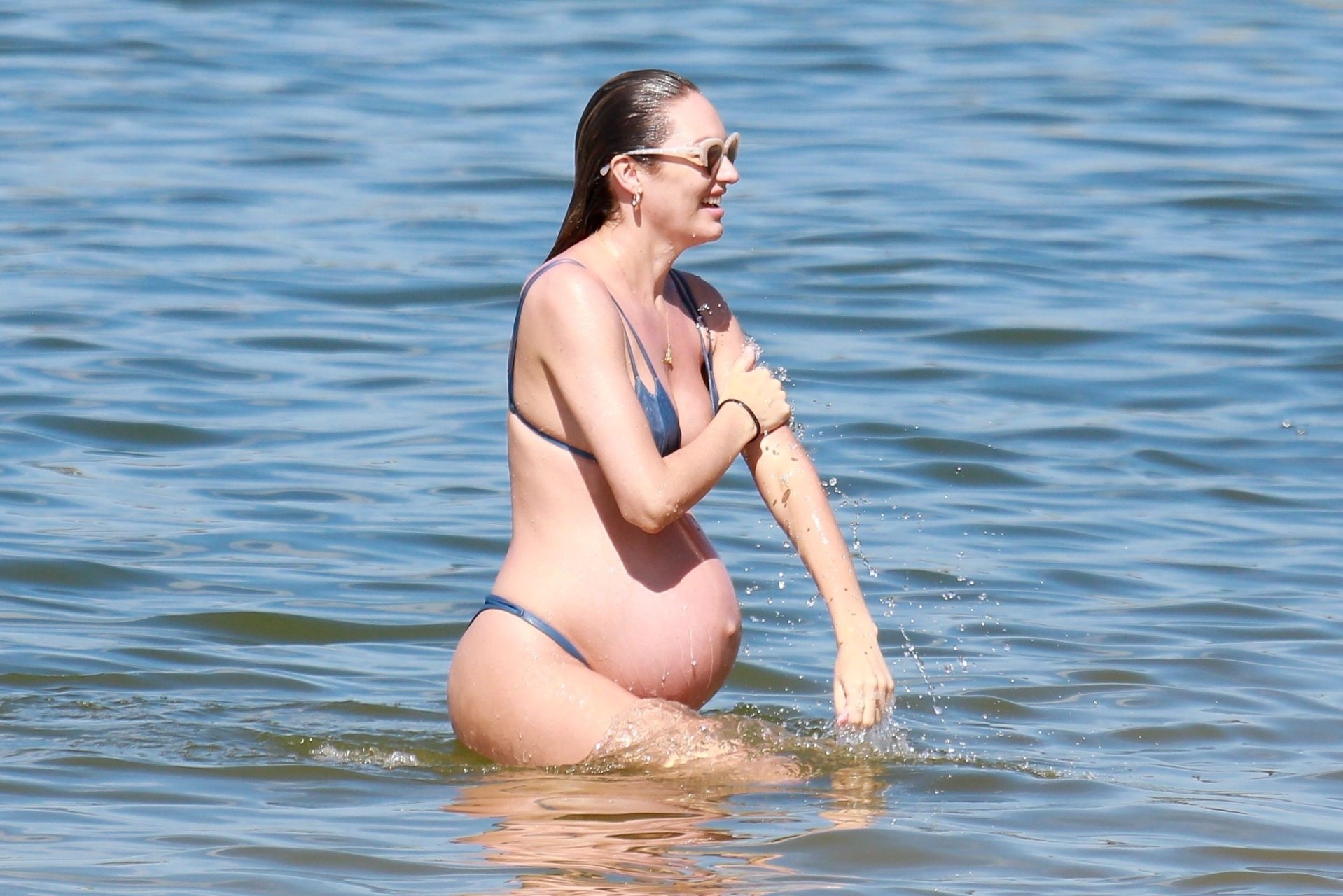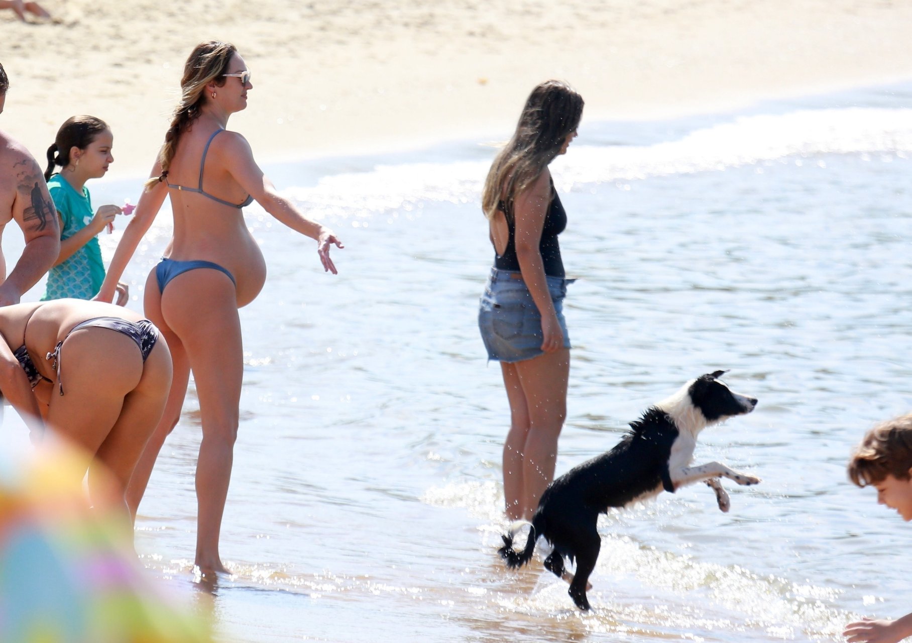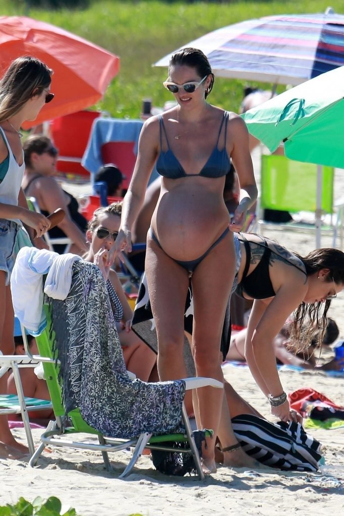 Кэндис Свейнпол выглядит так, будто готова вот-вот родить, наслаждаясь днем на пляже с семьей, включая сына Анакан и партнера Германа Николли, 06.05.2018. 29-летняя ангел Victoria’s Secret с гордостью демонстрировала свой большой живот в красно-белом купальнике в горошек, поглаживая живот, отдыхая и общаясь с друзьями.